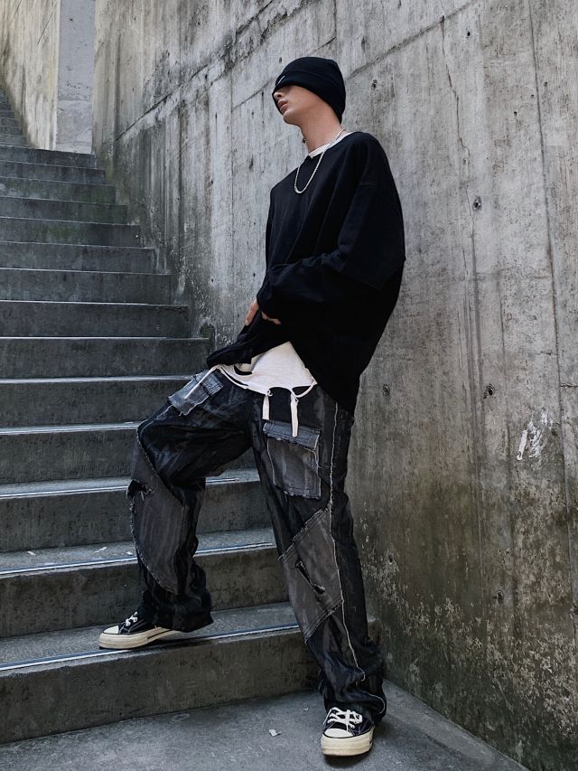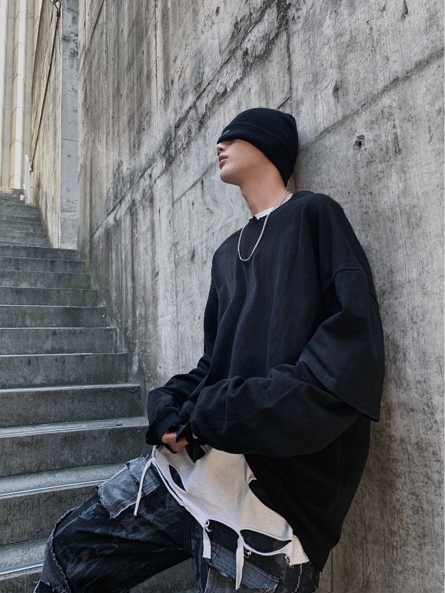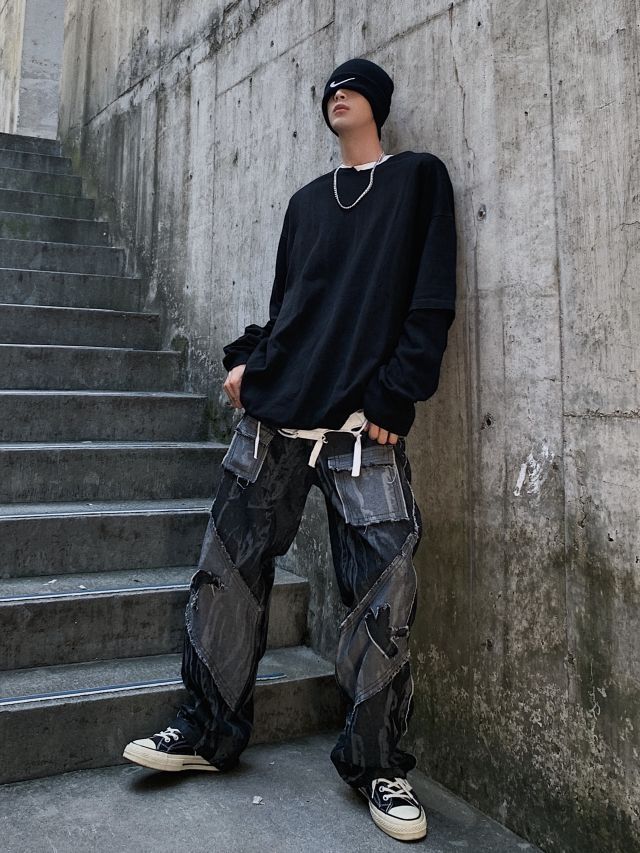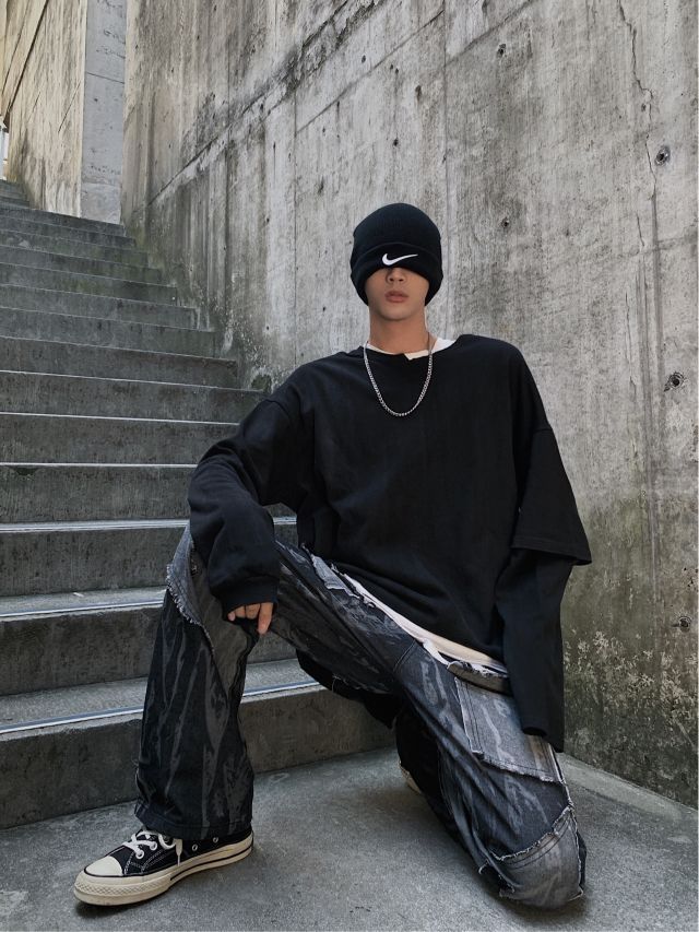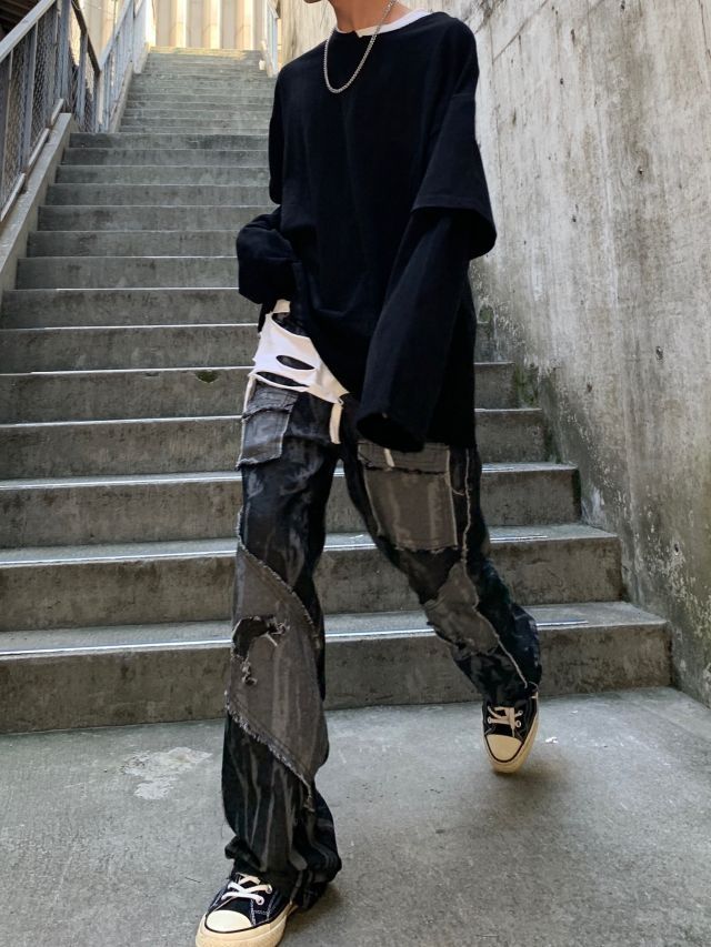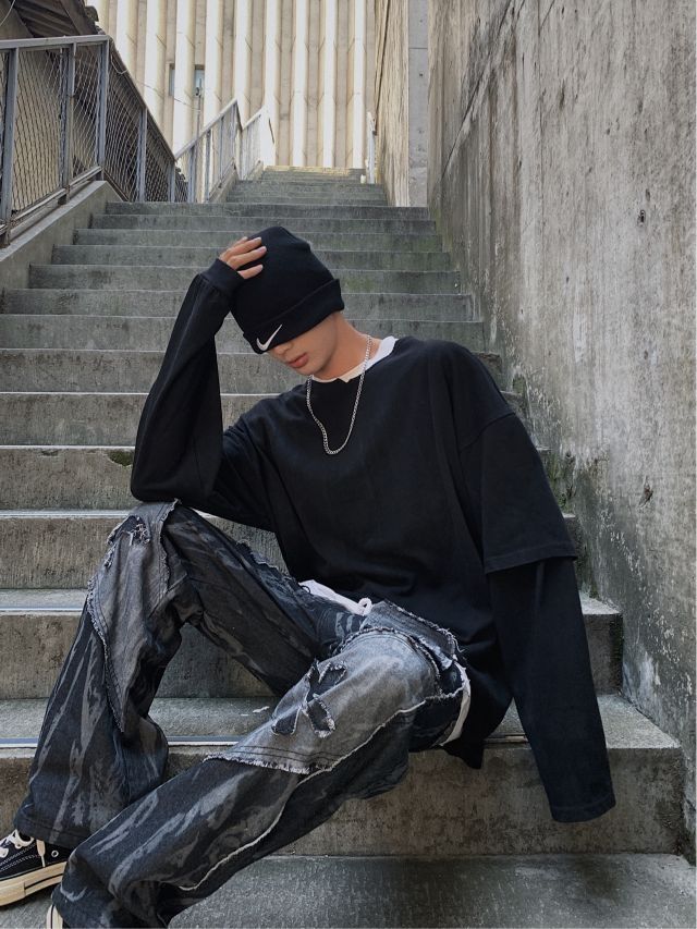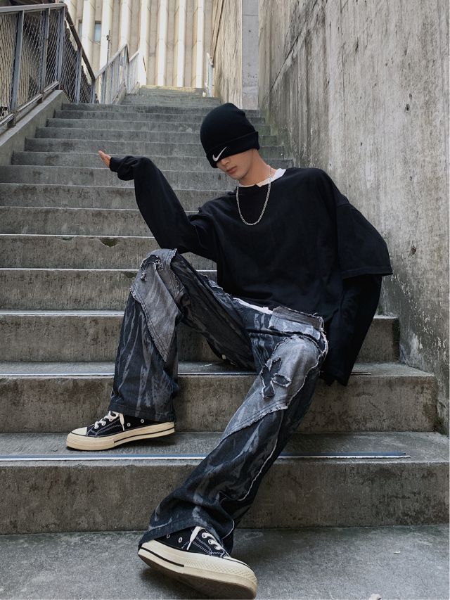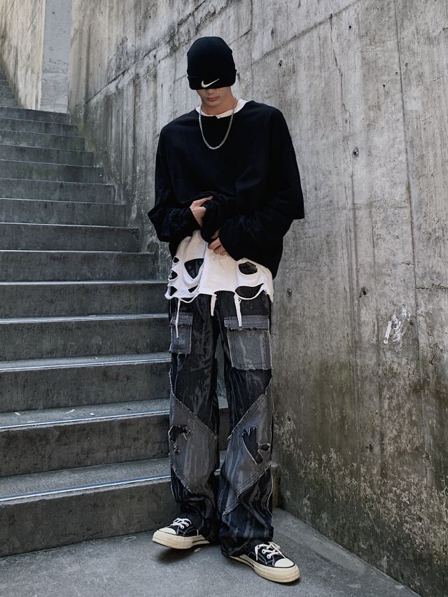 ⚫️上衣:秋季假两件t恤男长袖潮牌嘻哈kanye宽松做旧薄oversize扎染卫衣潮 ⚪️上衣打底:INSstudios.20ss韩国ins复古高街多破洞撕毁背心嘻哈无袖T恤男女 ⚫️裤子:Korea studios.韩国自制复古潮流高街小众手工擦色乞丐毛边牛仔裤 ⚫️项链:欧美古巴链条项链hiphop男女潮流ins嘻哈夸张钛钢不掉色高街粗款 ⚪️鞋子:converse1970s黑 ⚫️帽子:ni...