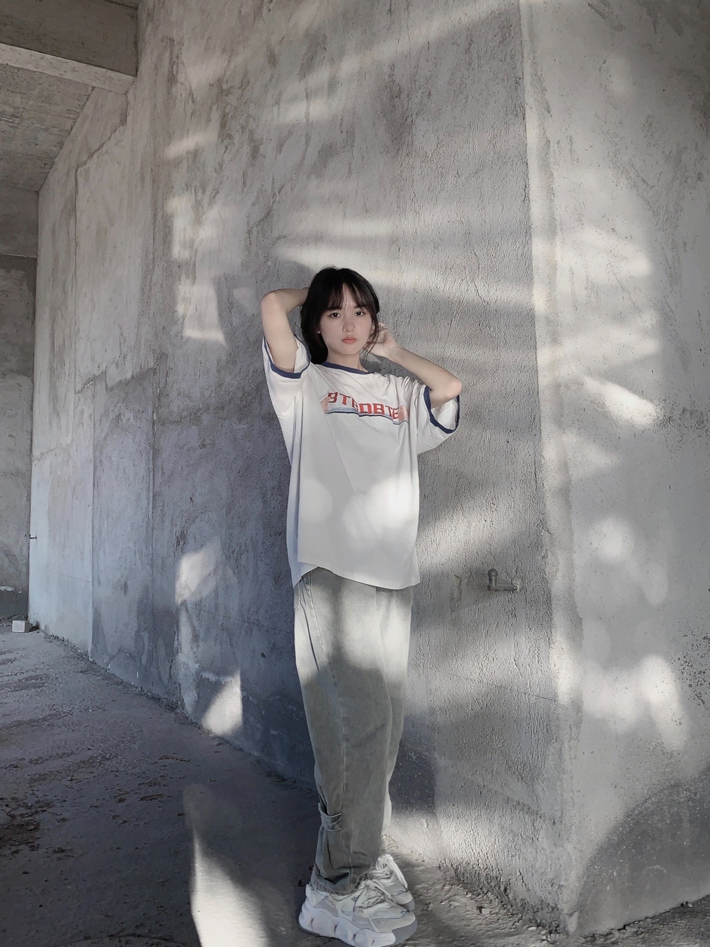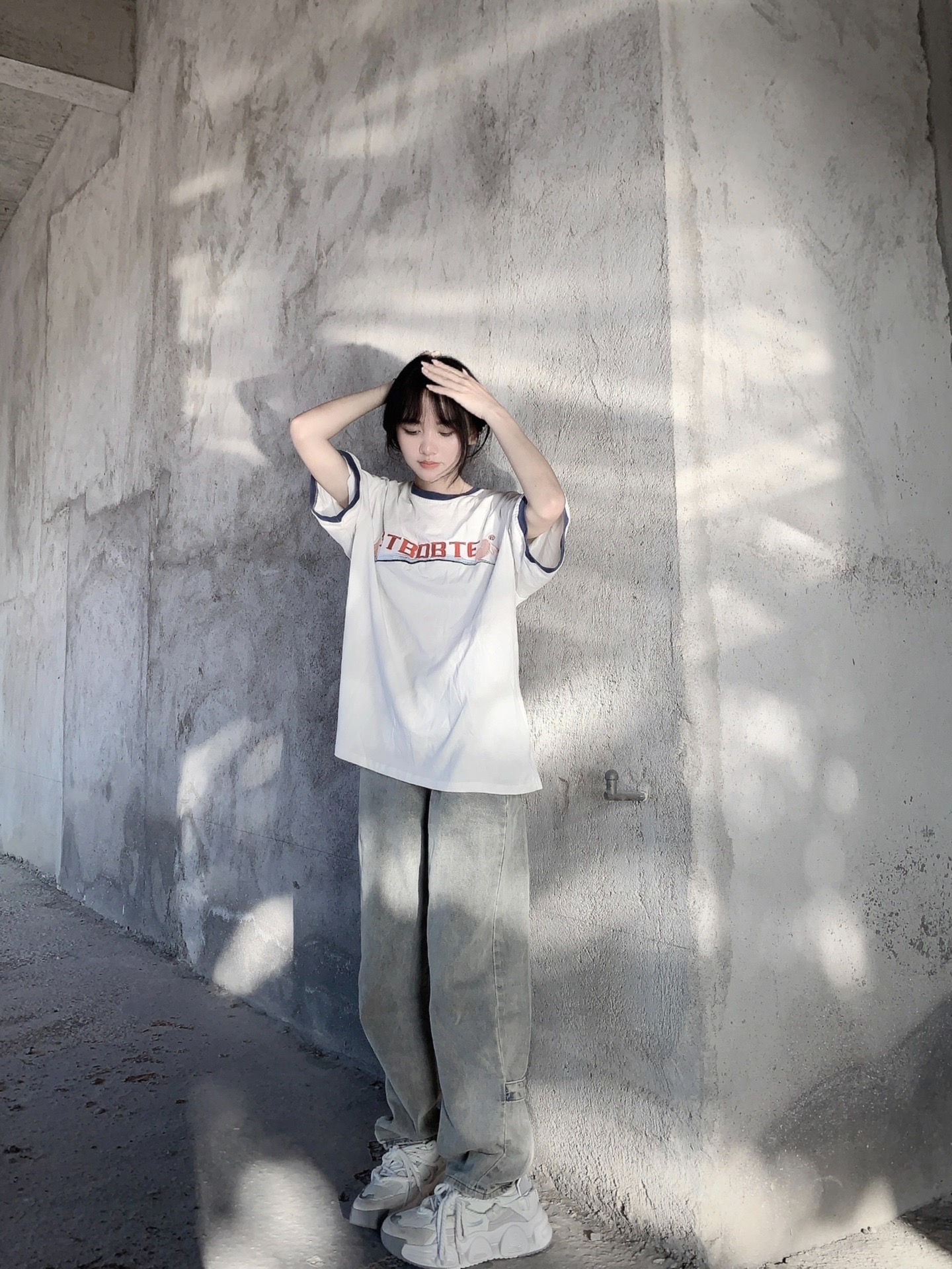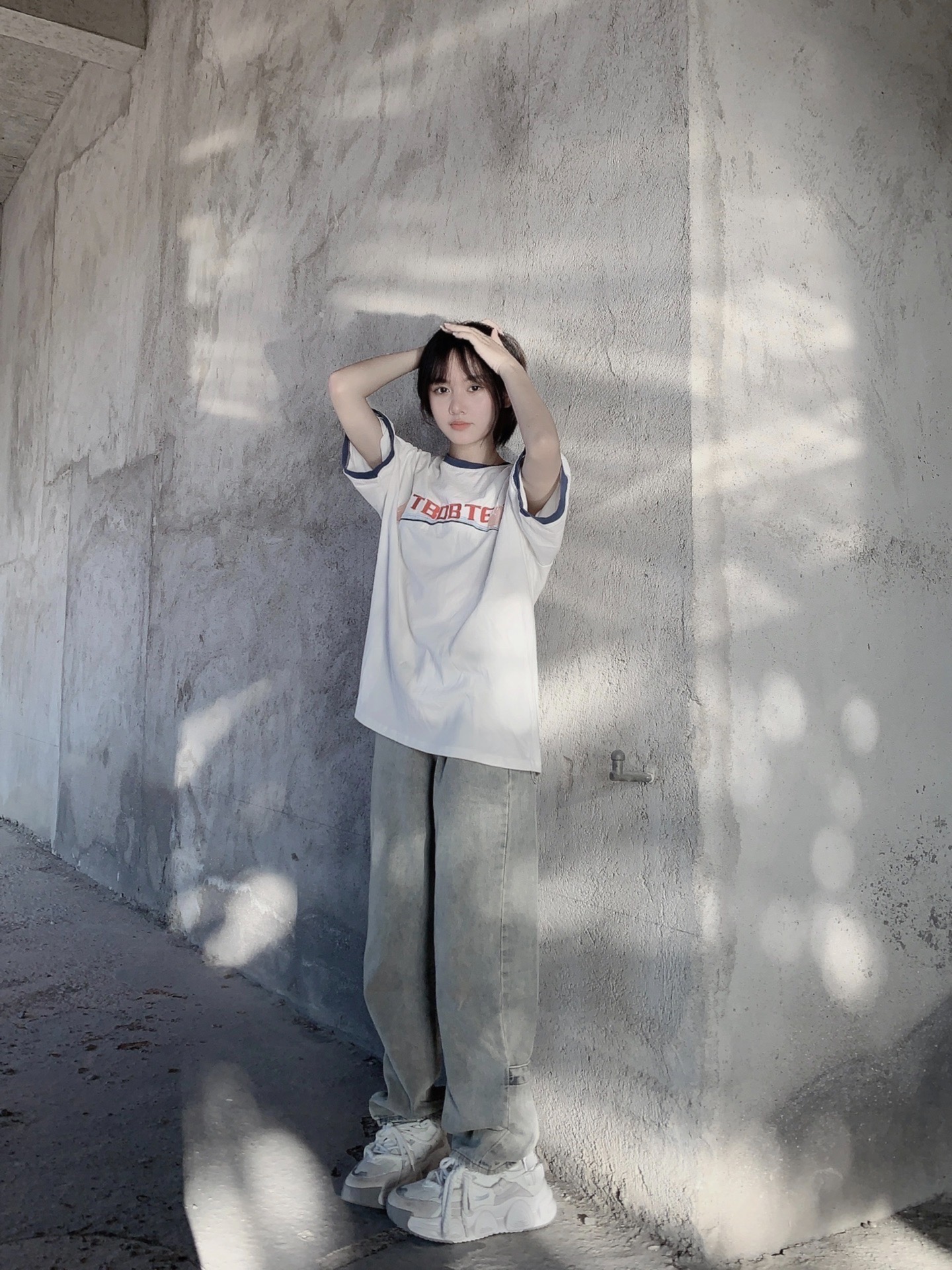拼色T恤搭配直筒裤视觉的显高! 搭配白色老爹鞋太绝了叭 #夏日休闲风OOTD #酷飒女孩夏日穿搭 #T恤穿搭 #我的多巴胺穿搭