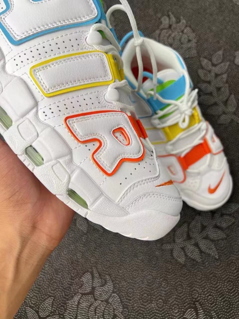 Nike Air More Uptempo 大Air 皮蓬中帮复古籃球鞋 白彩色 五彩斑斓的皮蓬 糖果色 实物超级好看 夏天必入的一款 送女友必须可以!