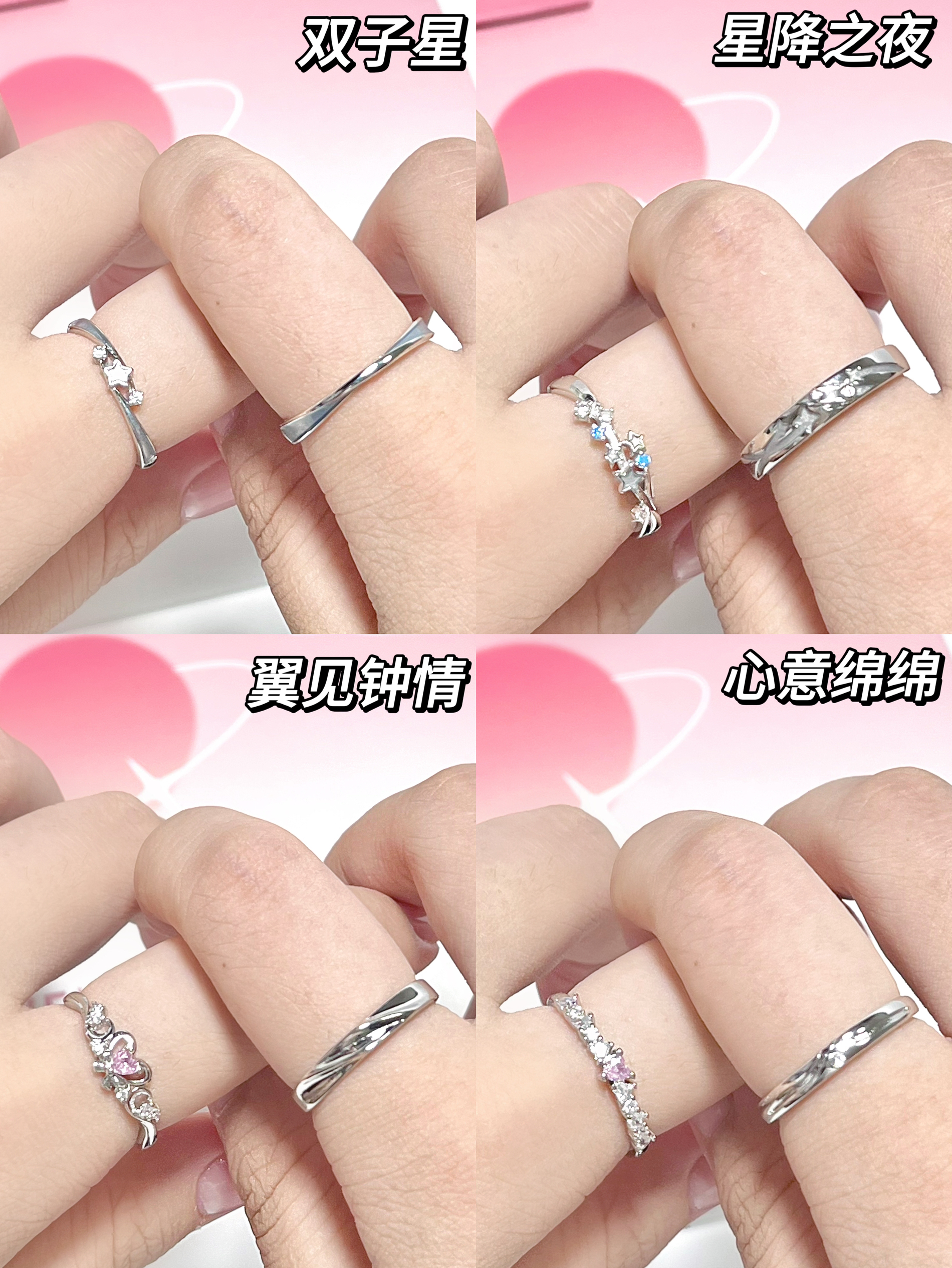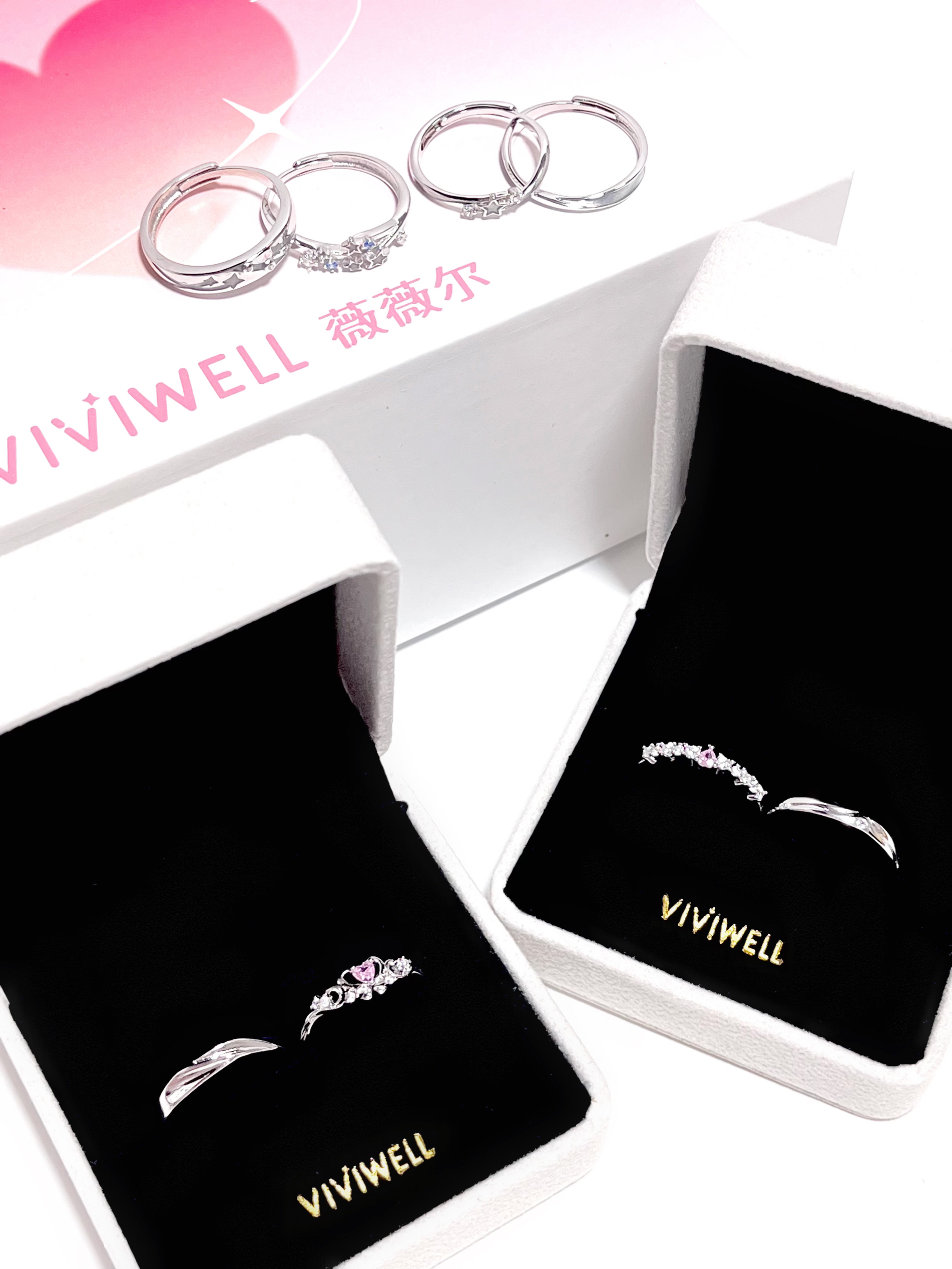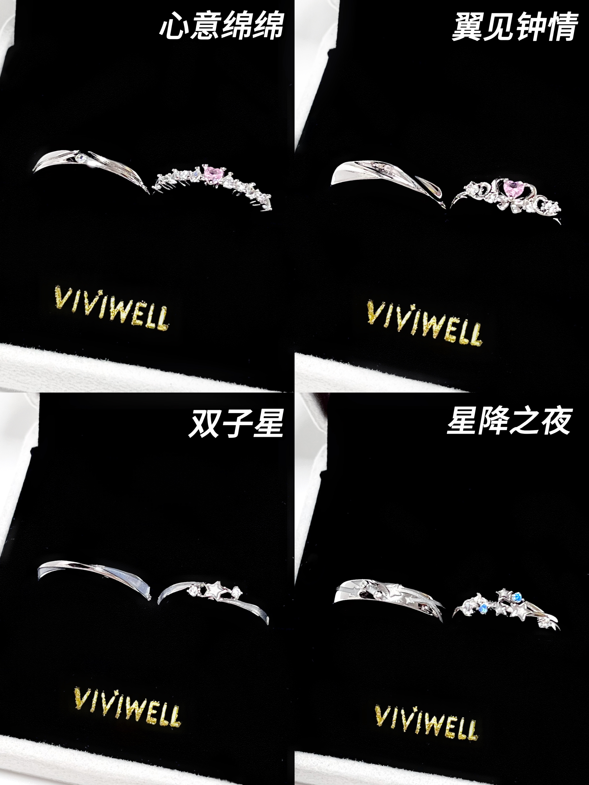 还有比七夕收到了好几款情侣对戒更加幸福的事情嘛! 男友送的VIVIWELL这几对情侣对戒全都戳到我心尖了~ 颜值实在是泰高啦,我收到后真的是一眼心动的程度 两对粉粉嫩嫩的浪漫甜美感的,粉色的钻少女心爆棚~ 还有两对是夜光的哦,星星的元素照光会变蓝好特别! 设计都hin精致时尚,开口设计不用担心尺寸不合适啦 收到充满了浪漫仪式感的七夕礼物,真滴非常的开心!