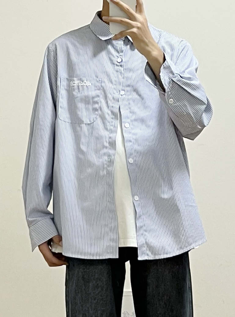 本篇笔记关联了【赵圆瑗同款】404MOB 复古刺绣条纹ins长袖衬衫 男女同款 BB00787CJ 蓝等商品,为用户提供真实的使用体验和购买参考。