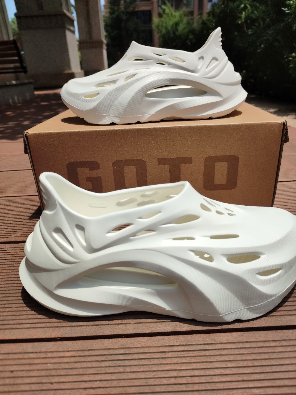 最近入手了一双#GOTO 家的白色洞洞拖鞋,体验感挺不错的👍🏻。GOTO凉鞋 以海豚🐬为灵感打造的拖鞋,外观就有点酷似海豚哈。鞋身材料一体打造,不开胶无异味,超多洞洞更加的透气清凉,鞋垫是可拆卸的镶嵌式鞋垫,更加有助于清洗。 这双洞洞鞋,不仅颜值巨高而且增高,脚感不是那种软软的脚感,很有触感,感觉挺不错,鞋底菱形纹路,更加的防滑耐磨。 敲重点:1.白色的洞洞鞋不怎么耐脏哦❗️2.拖鞋偏小我买的正常...