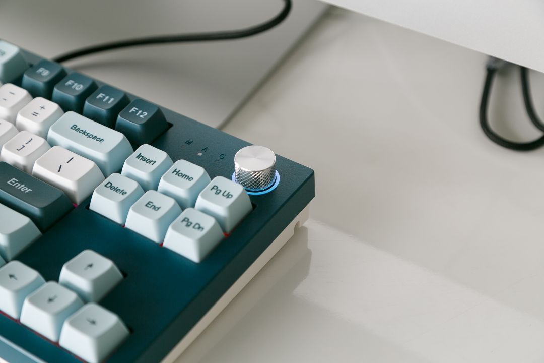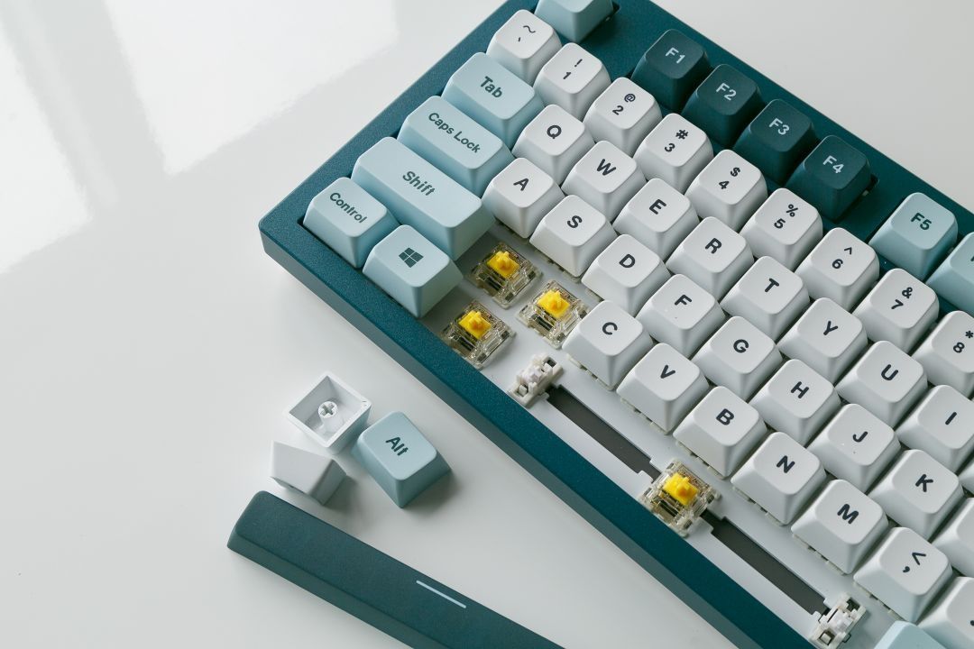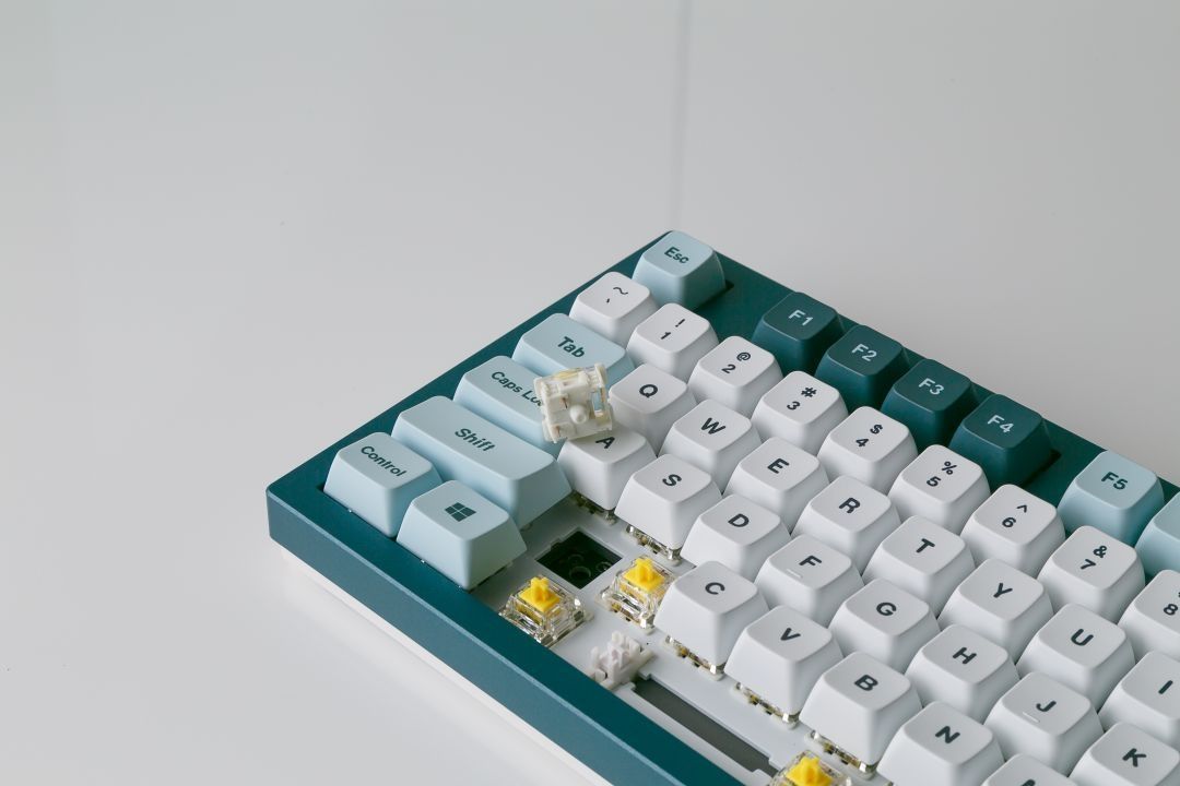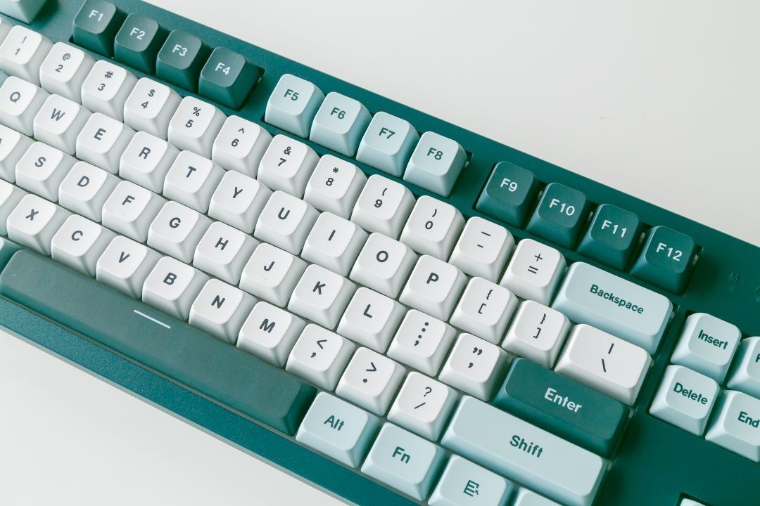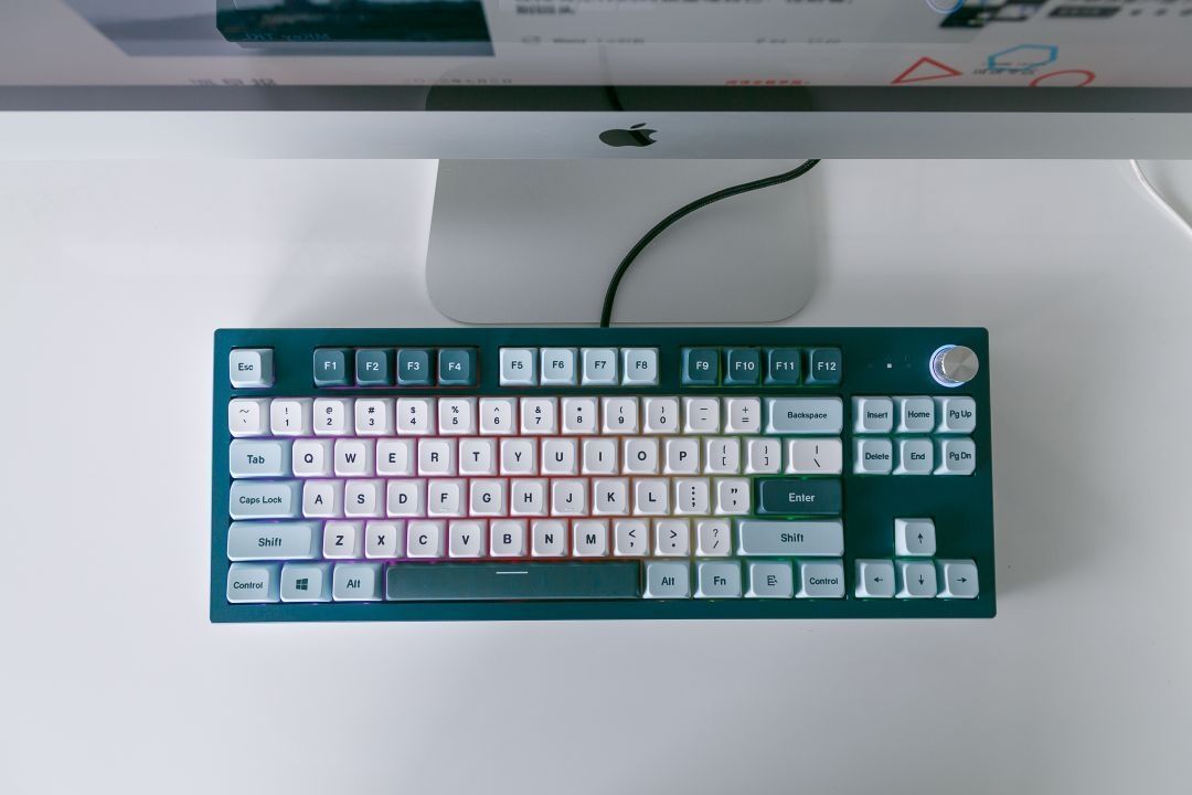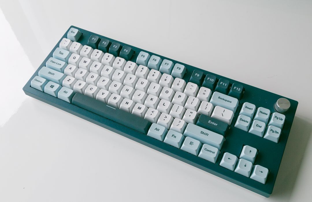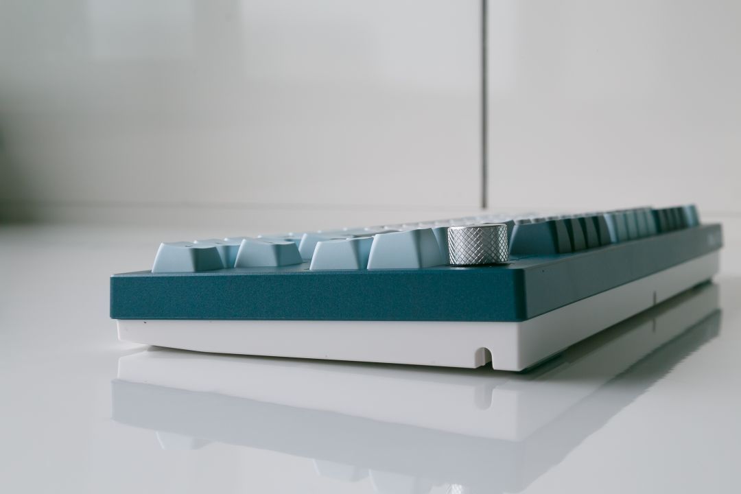 配色方面,这款MKey键盘采用蓝绿色为基调,主键区域为白色,功能按键为深浅不同的蓝色搭配,整体键盘配色很耐看,也很与众不同,跟游戏中的一些古老城堡很相似!