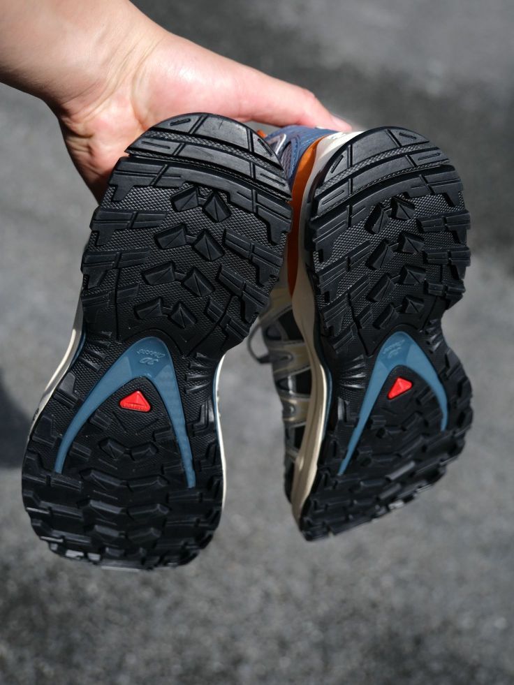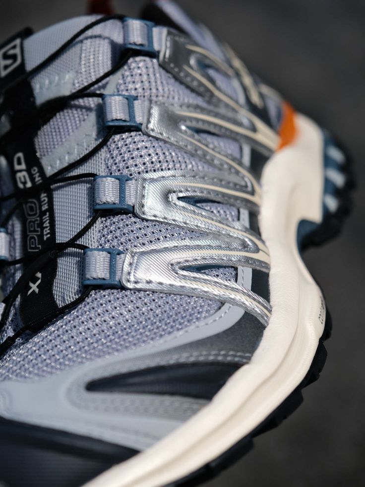 不得不说萨的配色一直挺厉害的 就是那种一眼突兀越看越喜欢 特别是很多撞色的搭配 还有黑色和亮色的搭配 很多都违背了网上流行的配色规则 甚至不太符合大众的审美 但是看久了就会很喜欢很耐看 这点还真是值得借鉴的 这双xa pro 3d的蓝甚至都不知道怎么描述 反正沙场灰肯定是不贴切的 低调内敛黛蓝中又有些张扬的紫 再配上后跟一抹耀眼的橙色 彰显其户外的身份 脚感上会比xt6好穿一些 鞋楦相对来说宽一点...