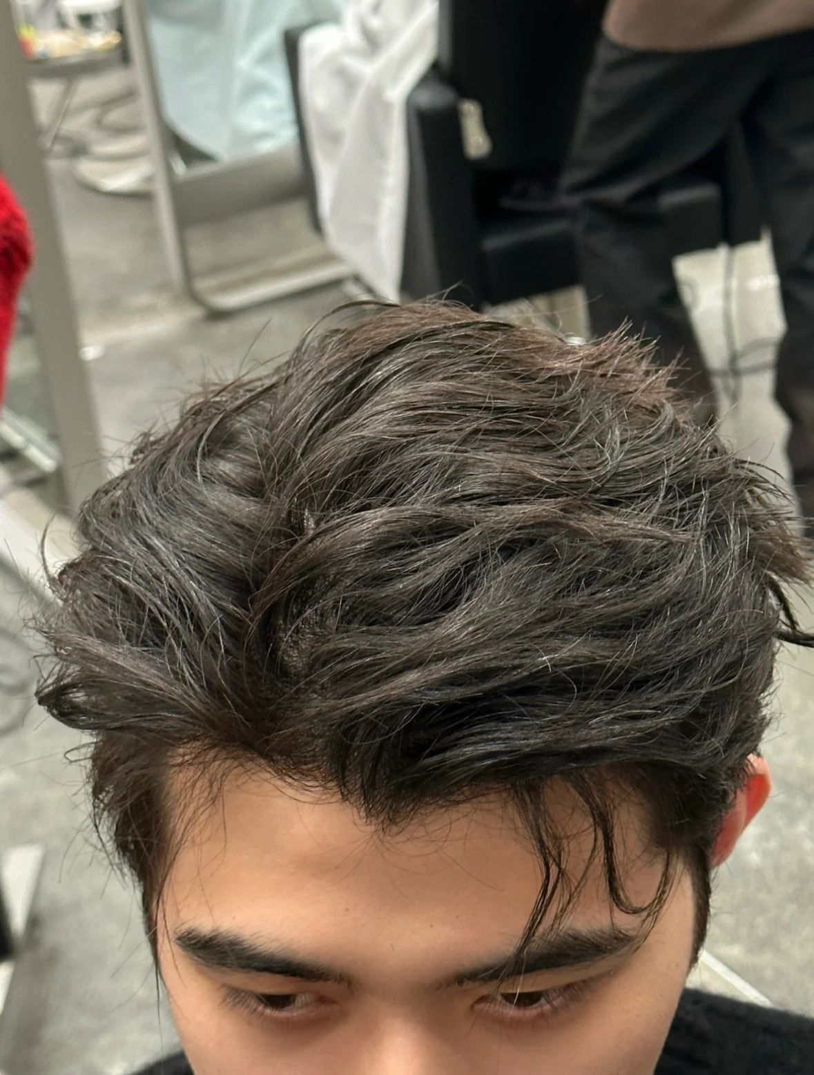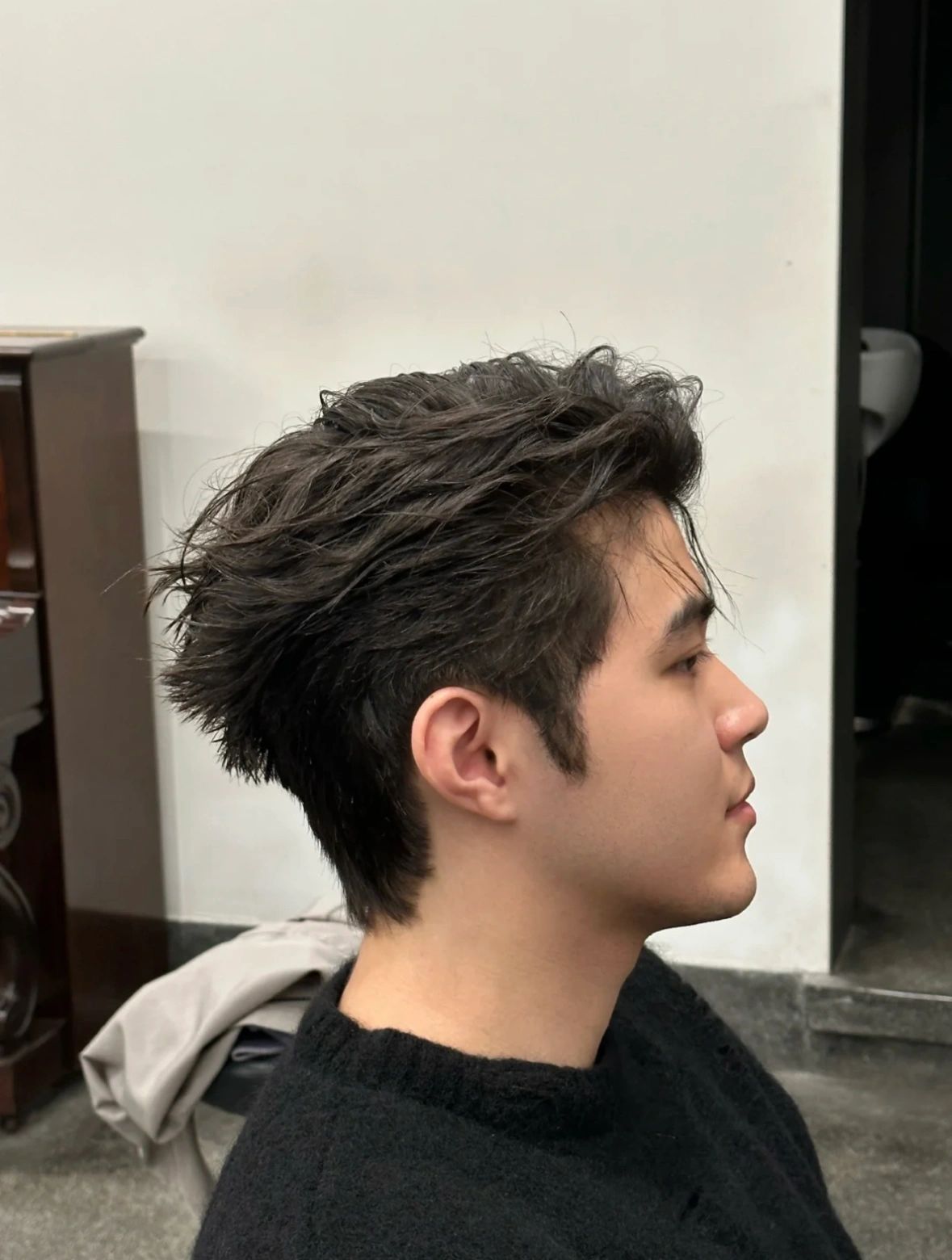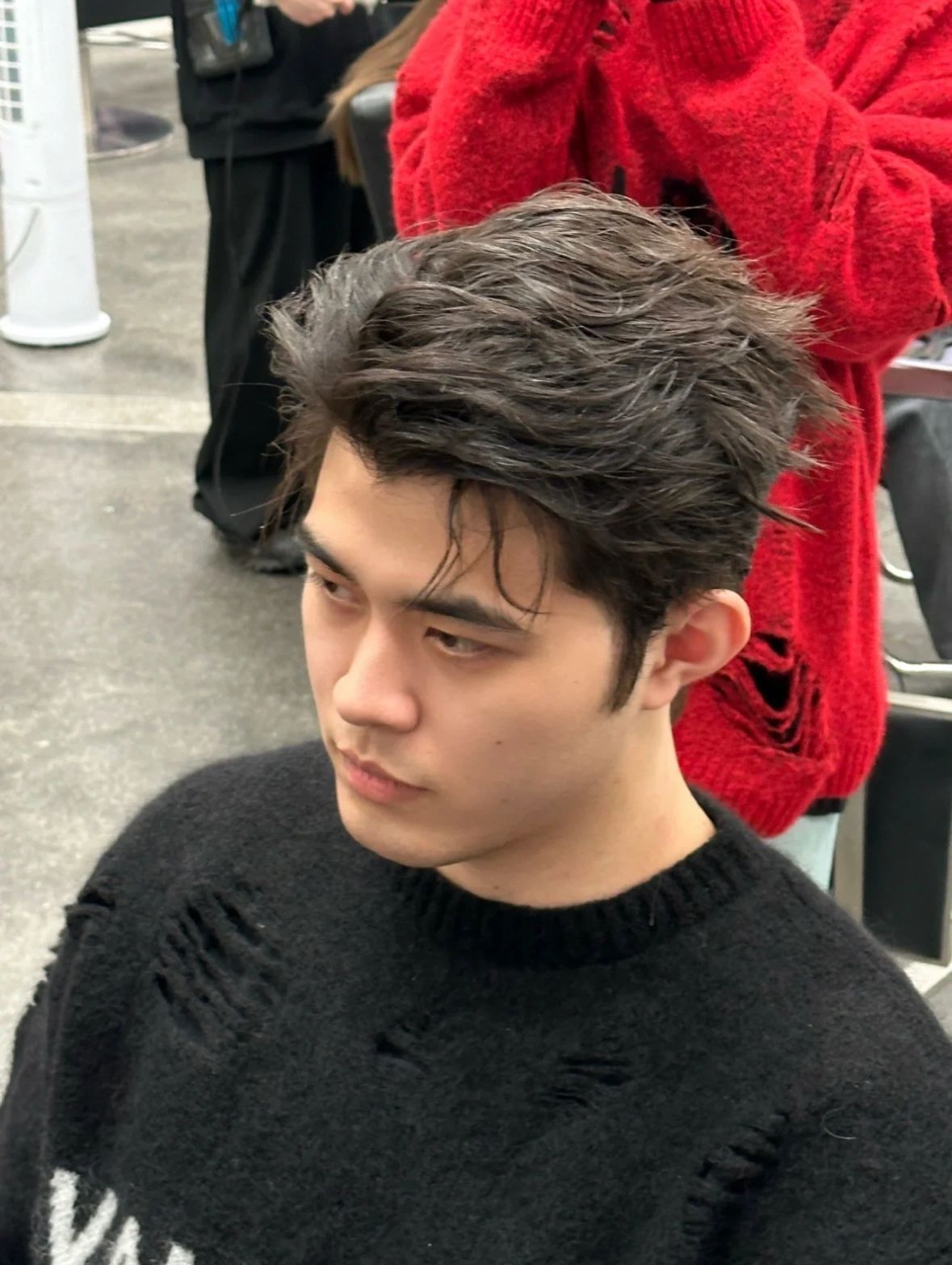 💥圆脸的男生看过来了!欢迎大家在评论区留言提建议, 面部骨相除非医疗手段无法改变,颅骨已定,头骨大、颧骨突出的救星来啦 凌乱侧背纹理!头发粗硬做蝴蝶烫 细软做束状纹理 -- ·侧区保留不剃短 ·过于翘得建议服帖烫 衔接上部保持自然 ·打理造型品需要自然吹干分好分线 用手朝着流向自然梳出纹理即可 ·想要更精致只需要取少量发梢做翘就可以 简单打理,不需要太多手法,圆脸男生的福音 兄弟们...