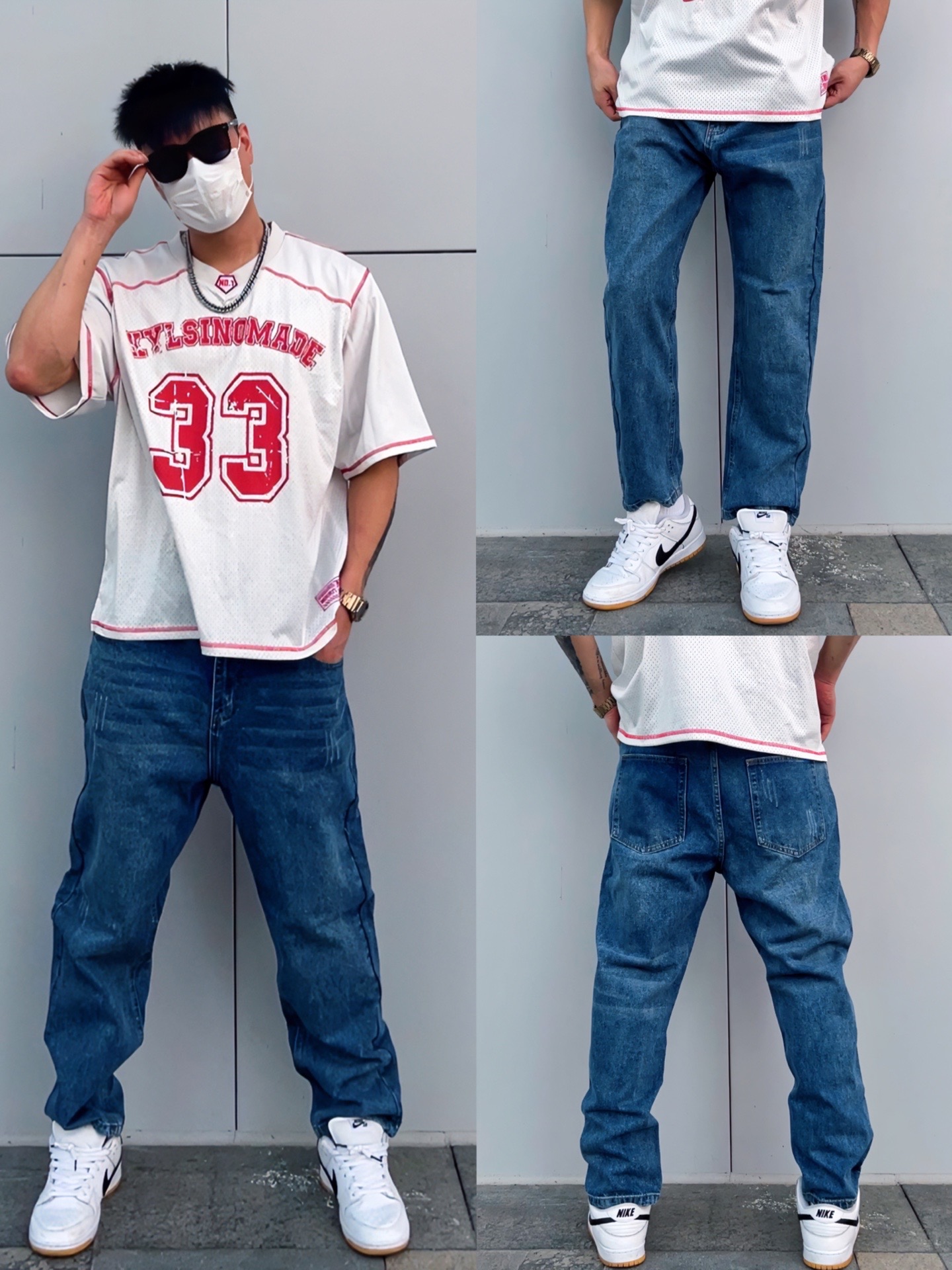 每天都穿运动装 都浪费了190的模特身材 偶尔穿一下牛仔裤 还是比较痞帅的! 今天上身的是一条来自 #马克华菲/FAIRWHALE 纯色水洗春夏薄款直筒牛仔裤 这款裤子 首先我最喜欢这个牛仔蓝 基础色 其次就是喜欢这个微锥版型 上身 微微宽松 没有束缚感 然后喜欢这个棉82.9% 聚酯纤维8.6% 氨纶8.5%的面料成分 上身亲肤透气 同时 保持了裤子上身的挺括堆叠感 显的更有层次 更美观...