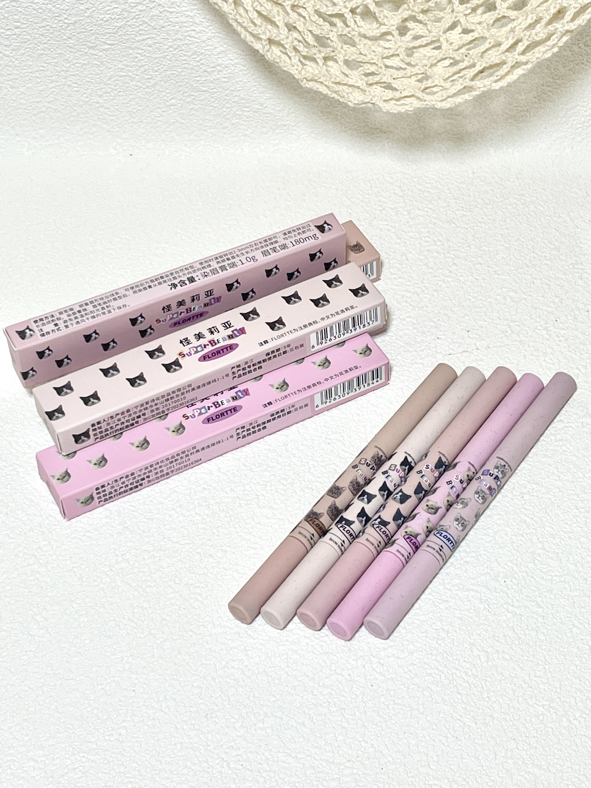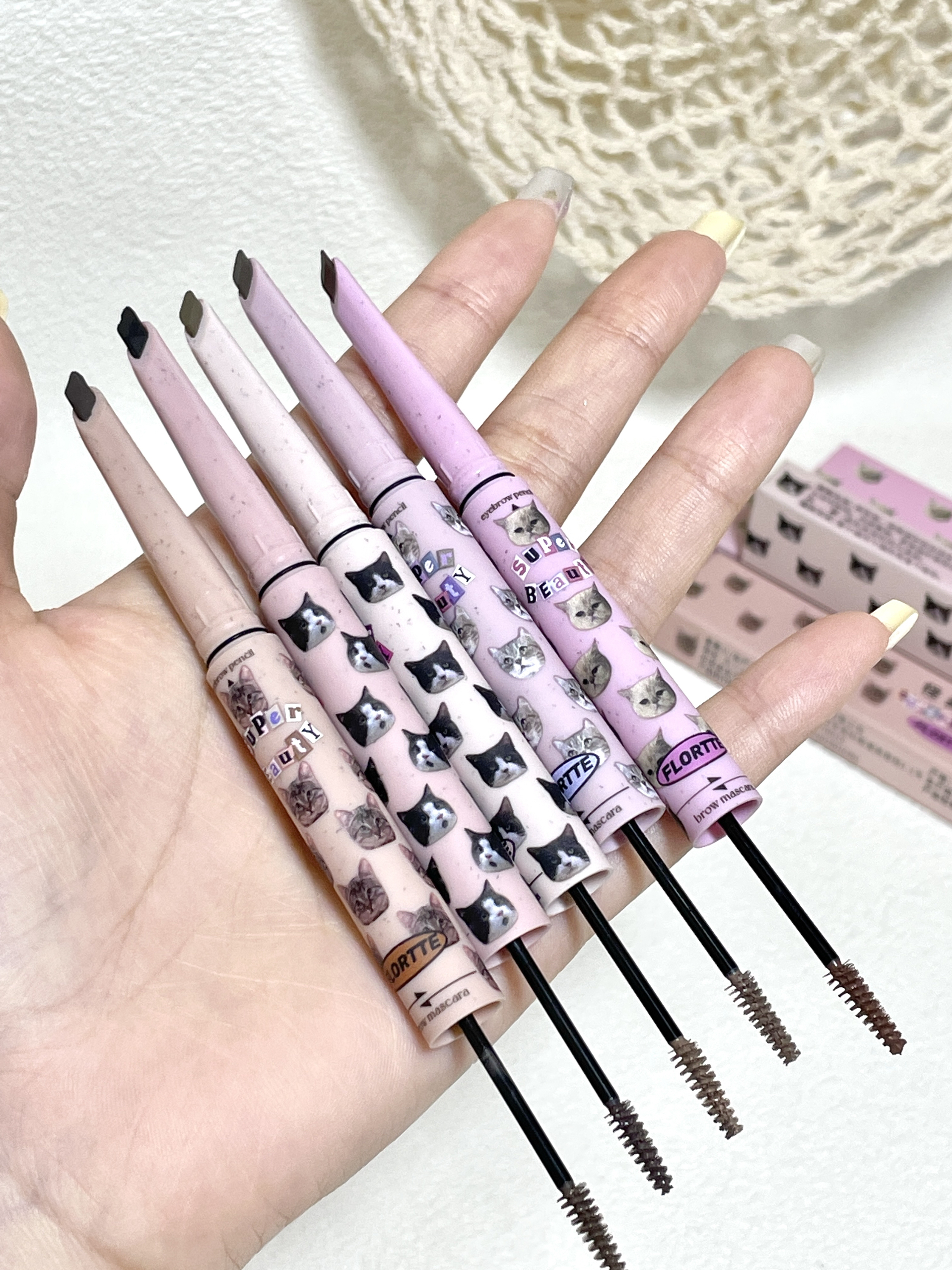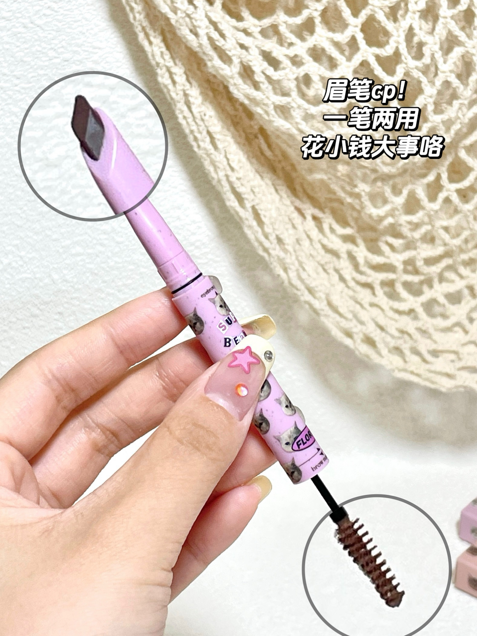 花洛莉亚双头眉笔太会给我省钱了!🥹 咱就说一根的价格打两根的工谁不爱啊 还是猫猫图案真的太可爱了吧! 每一根的名字不管是和猫猫🐈 还是和眉笔的颜色都好贴切呜呜 染眉膏的毛流感非常奈斯 眉笔是砍刀的设计绝绝子 画出来真的根根分明!! 5种颜色都比较自然不会太夸张 新手小白一定不要错过!