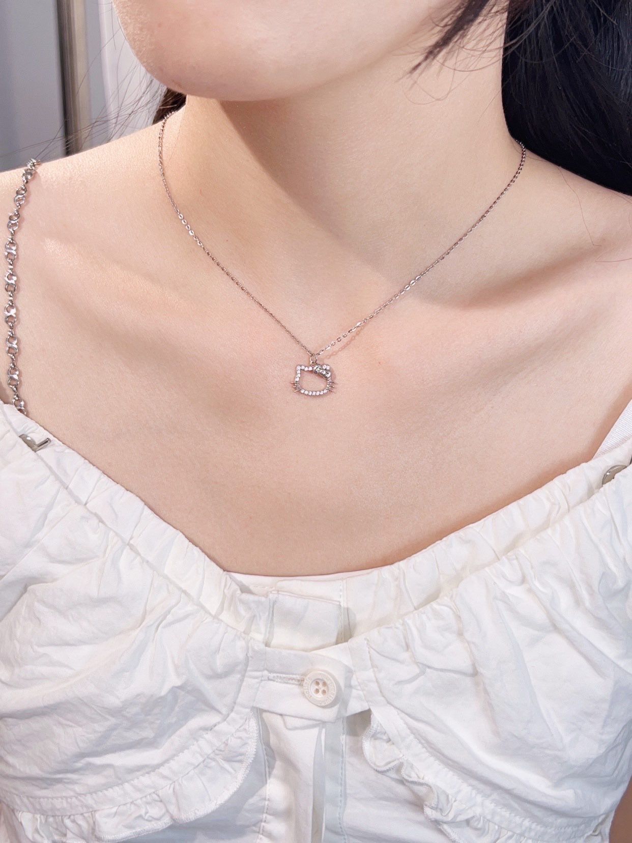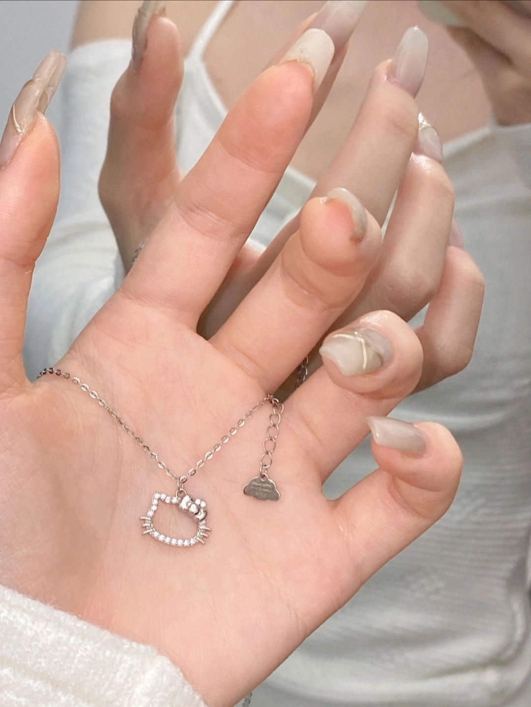🍀姐妹们!这条hellokitty项链的设计好特别 🍀镂空的凯蒂猫造型设计 还有一个小小的蝴蝶结🎀点缀,很百搭!!很俏皮可爱🥰🥰 🍀外圈镶嵌密密的小碎钻 bulingbuling的少女心爆棚💕 925纯银的 亲肤防过敏 洗澡戴着也不会掉色 🍀质感也挺好的 有延长链🉑调节尺寸大小 送朋友自留都是非常不戳的选择喔! (图片来自博主:潮色绘)