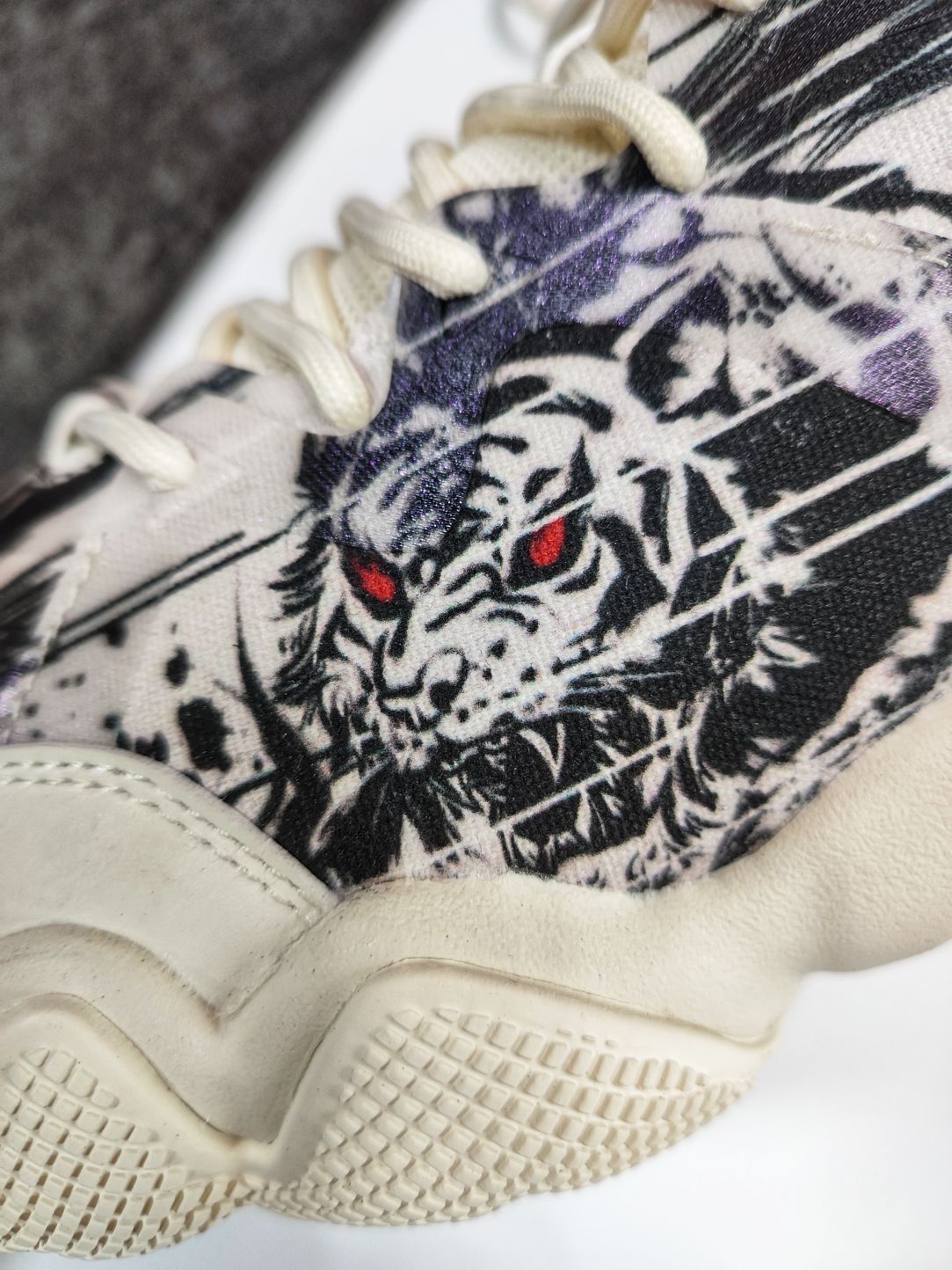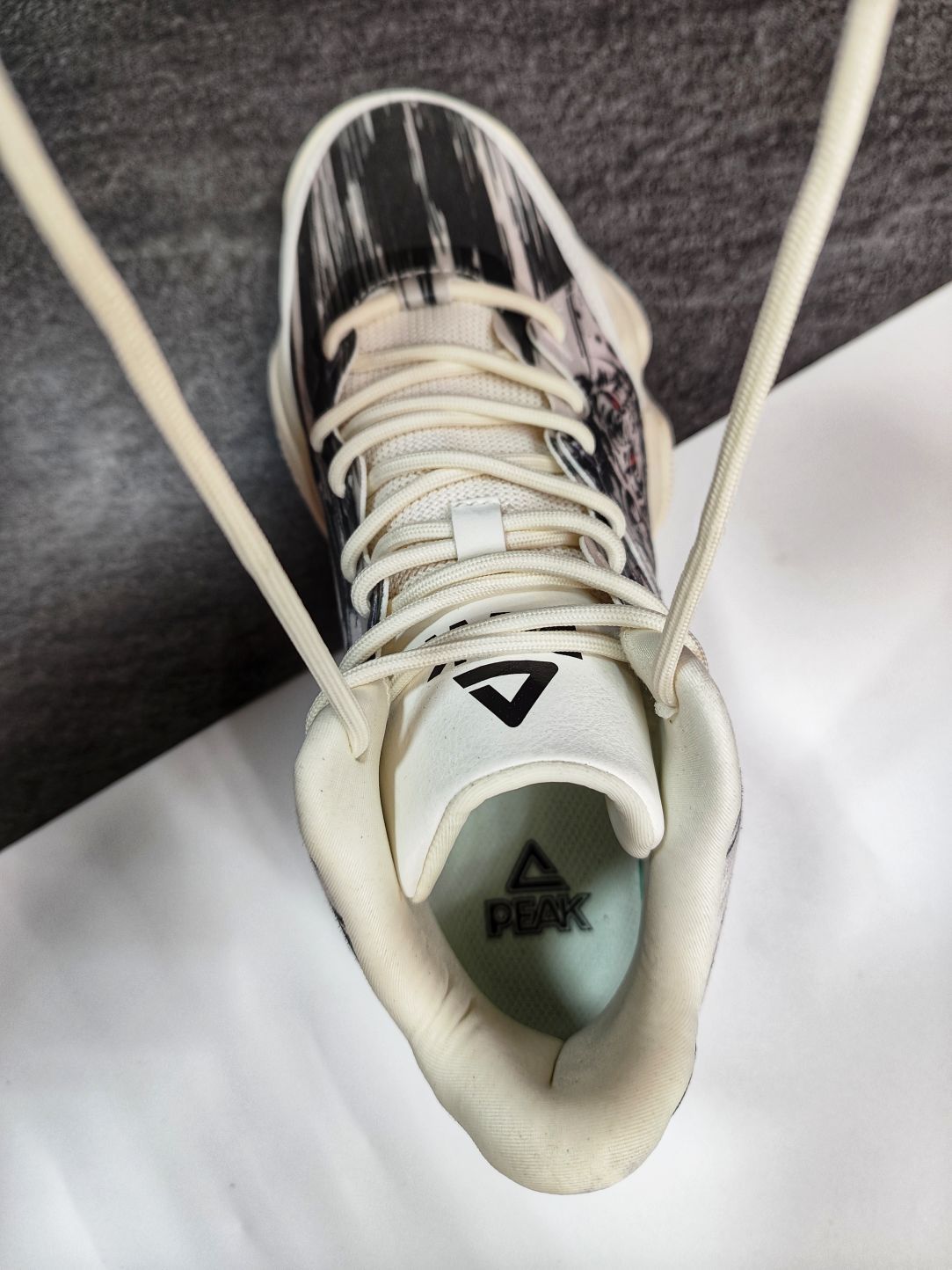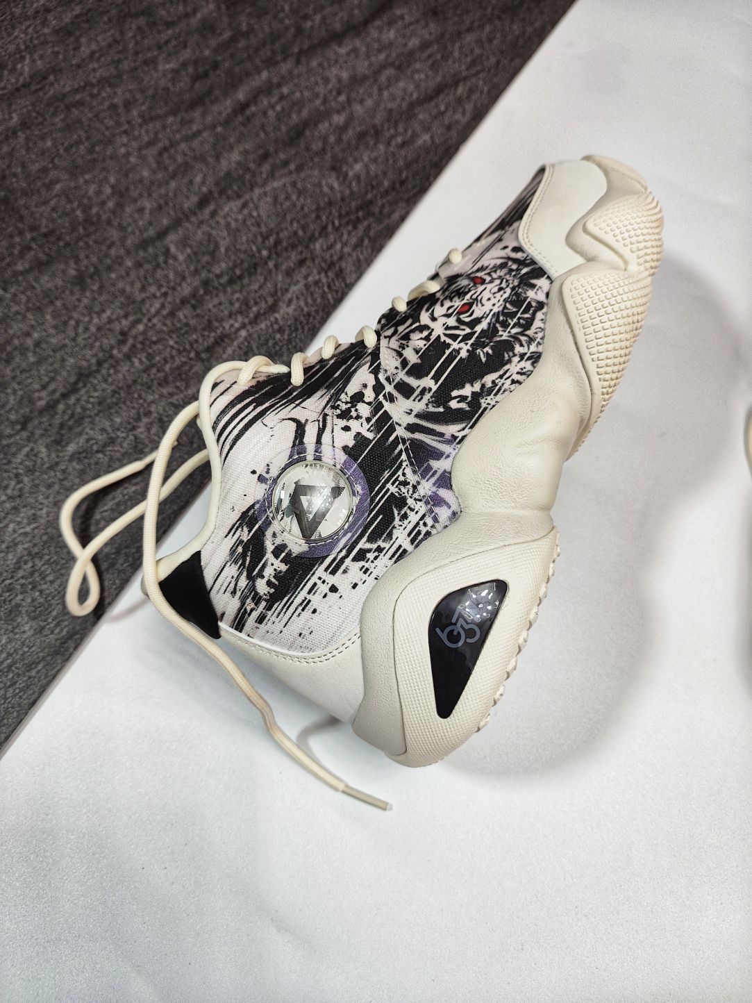 🐅匹克延续6371实战鞋元素,增添国风水墨画,打造了一双态极休闲篮球鞋。 🐅首先是手感鞋身上面蒙了一层薄膜,摸上去有明显的感觉,宛如面纱,神秘感剧增。 🐅国风水墨画带入非常有感觉,犹如“虎啸生风”成语,鞋身水墨画白虎呼之欲出,鞋腰处晃动Logo标志,会出现“風” “匹克大三角Logo” 随之交替,忽隐忽现。 🐅态极科技鞋底,缓震足,回弹给力。七夕来临,选择这样一双休闲篮球鞋送给自己是个不错的选择。