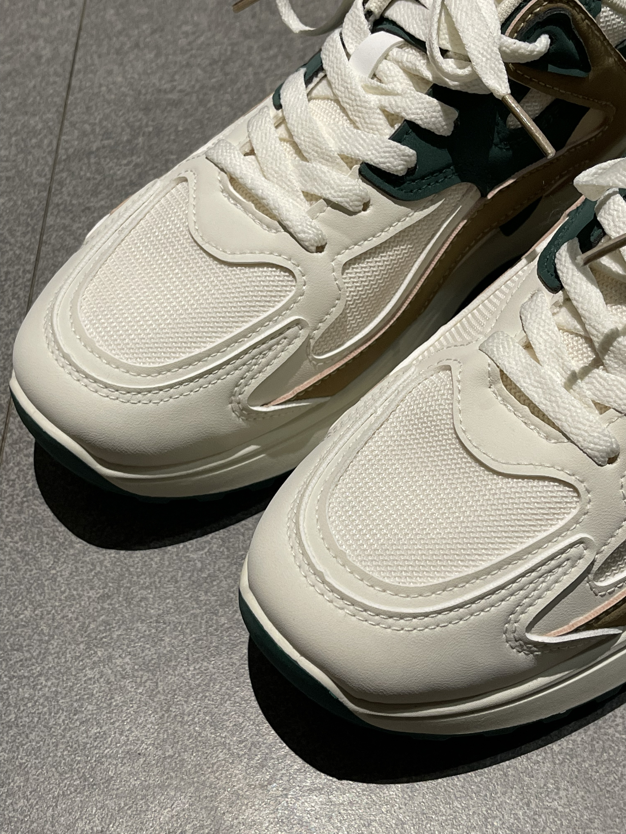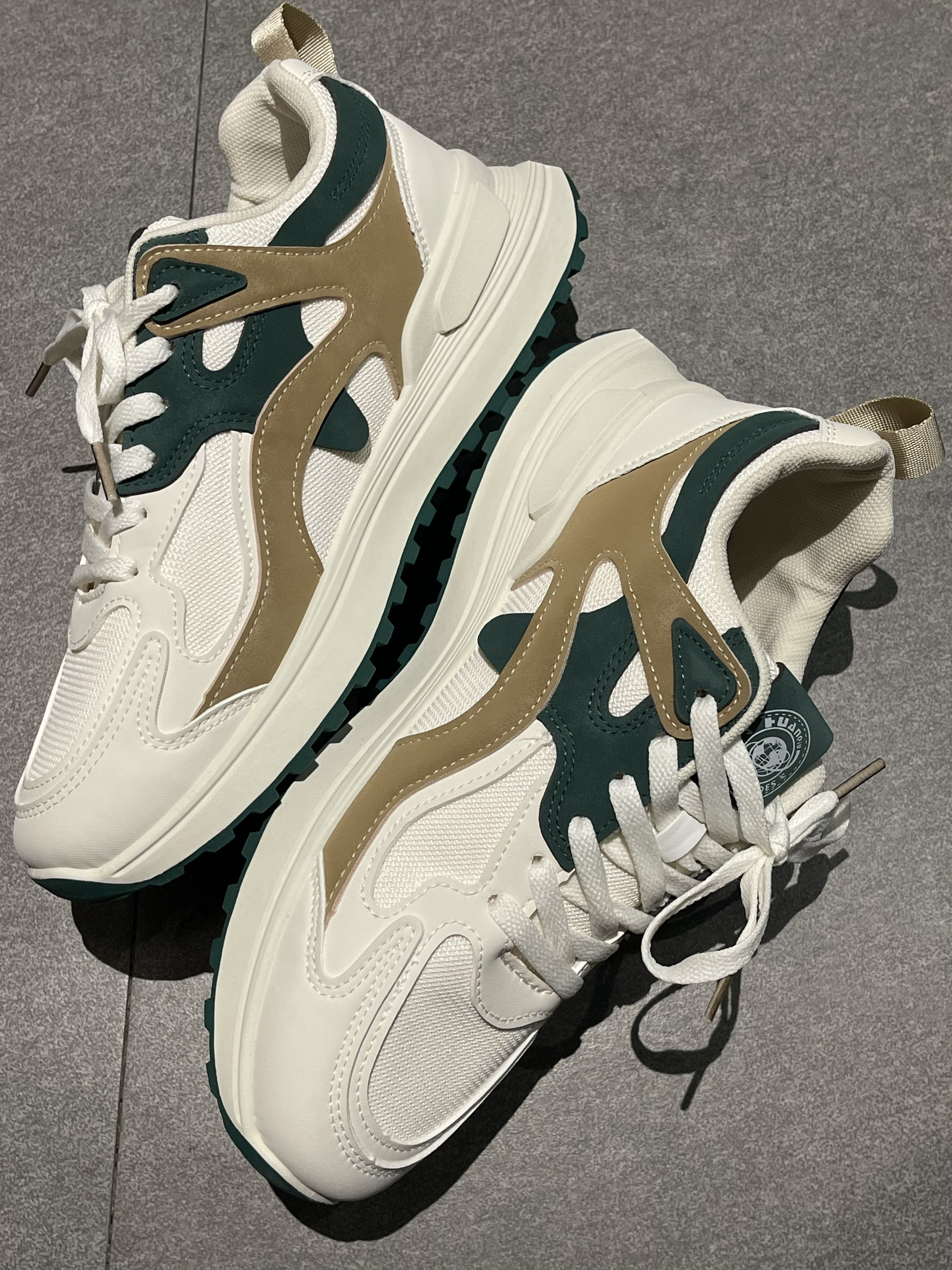 鞋柜里怎么能少了一双百元通勤便利休闲鞋呢?☀️ 今天带来的是来自环球HUANQIU|百搭休闲鞋,鞋子拿到的第一感觉就是很轻盈简约,以白色作为主色调,点缀绿色及棕色拼接,整体层次感十足。上脚轻便舒适,软弹舒适的中底还带有一定增高效果。🥰 性价比很高,仅需百元就可以轻松拿下~🤩