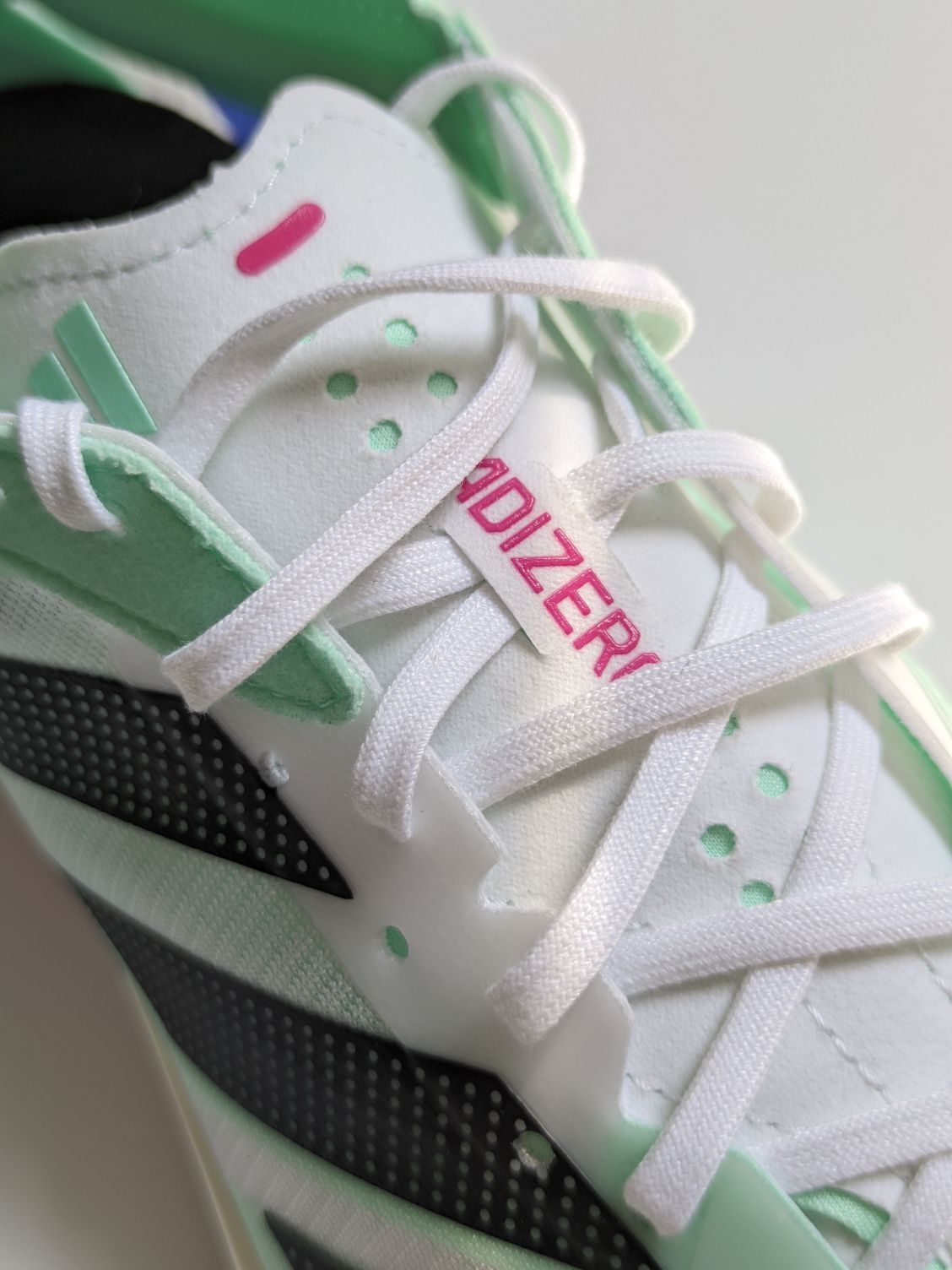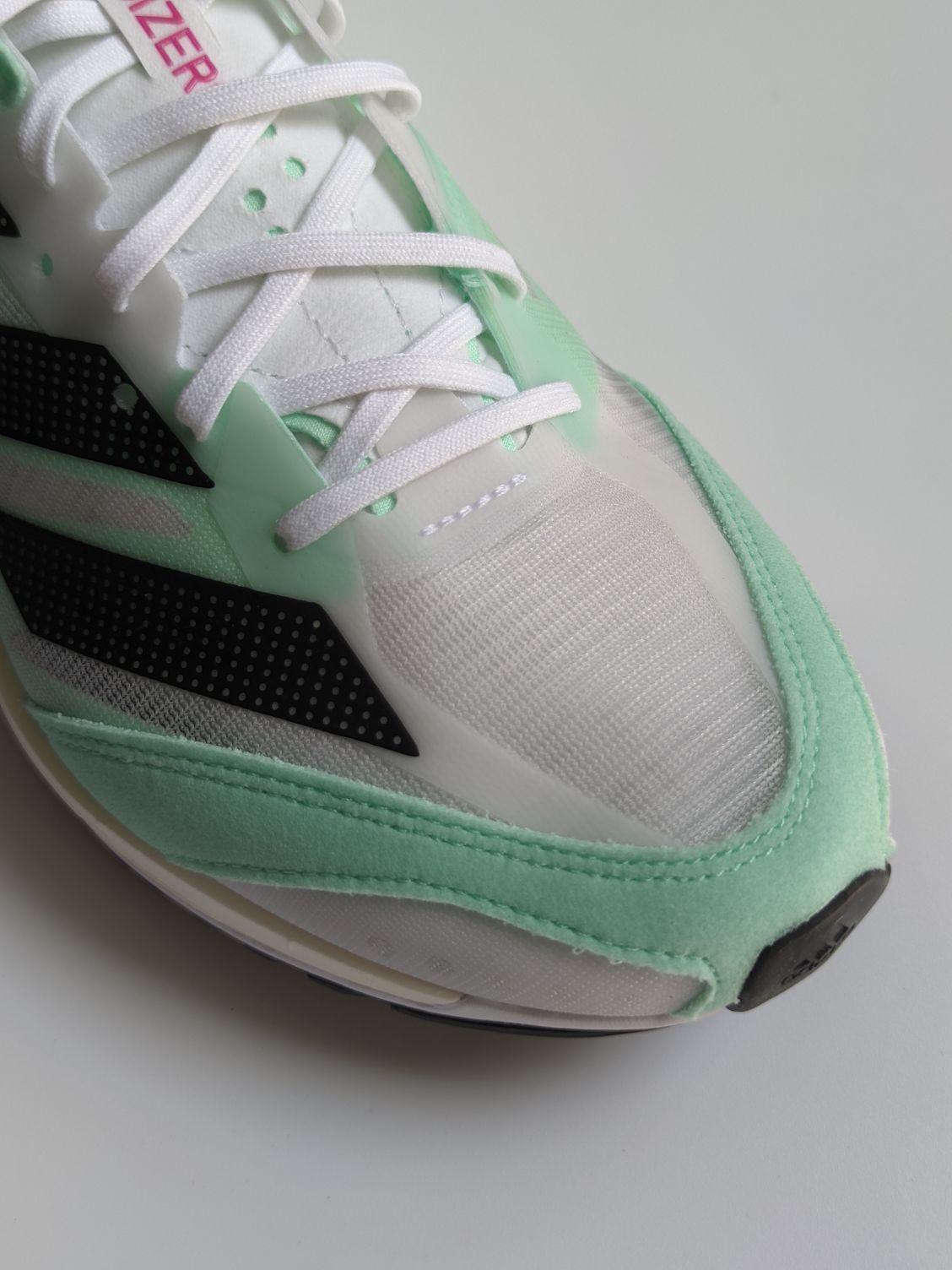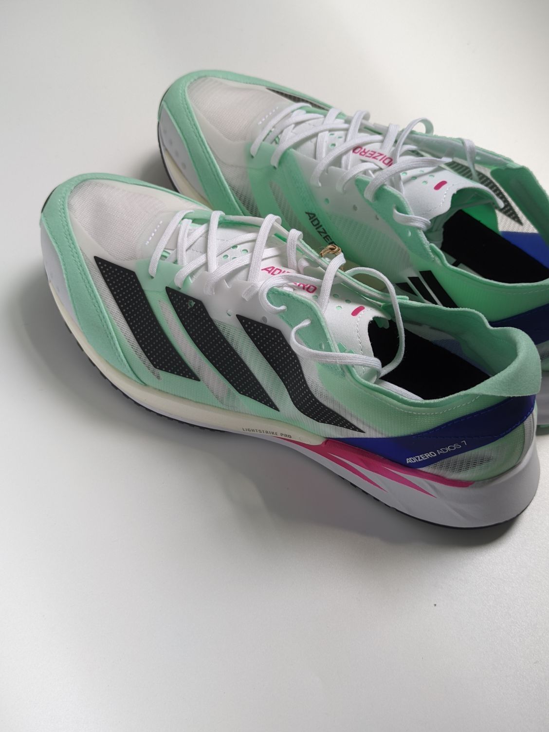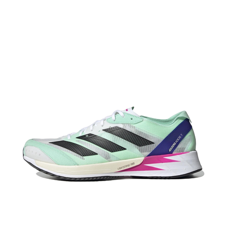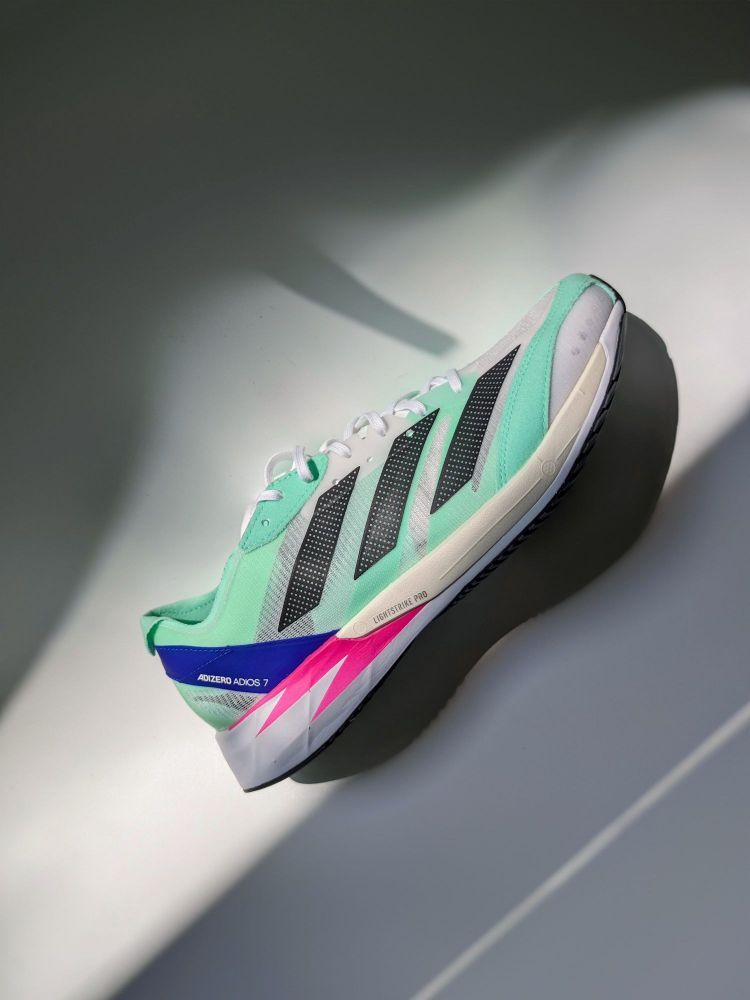 adidas adizer adios 7 跑步鞋 这双跑步鞋颜值太高了,一眼清新☘️ 整体很轻,网面鞋面,搭配好袜子颜值更上升一层 。✈️ Continental™M马牌橡胶外底,耐磨防滑。✔️ 中底Lightstrike和LightstrikePro混合配置,使得这双鞋适合速度训练。缓震回弹跑着比较舒服,这点很🐮。 目前价格比较合适看上的不要错过了💎