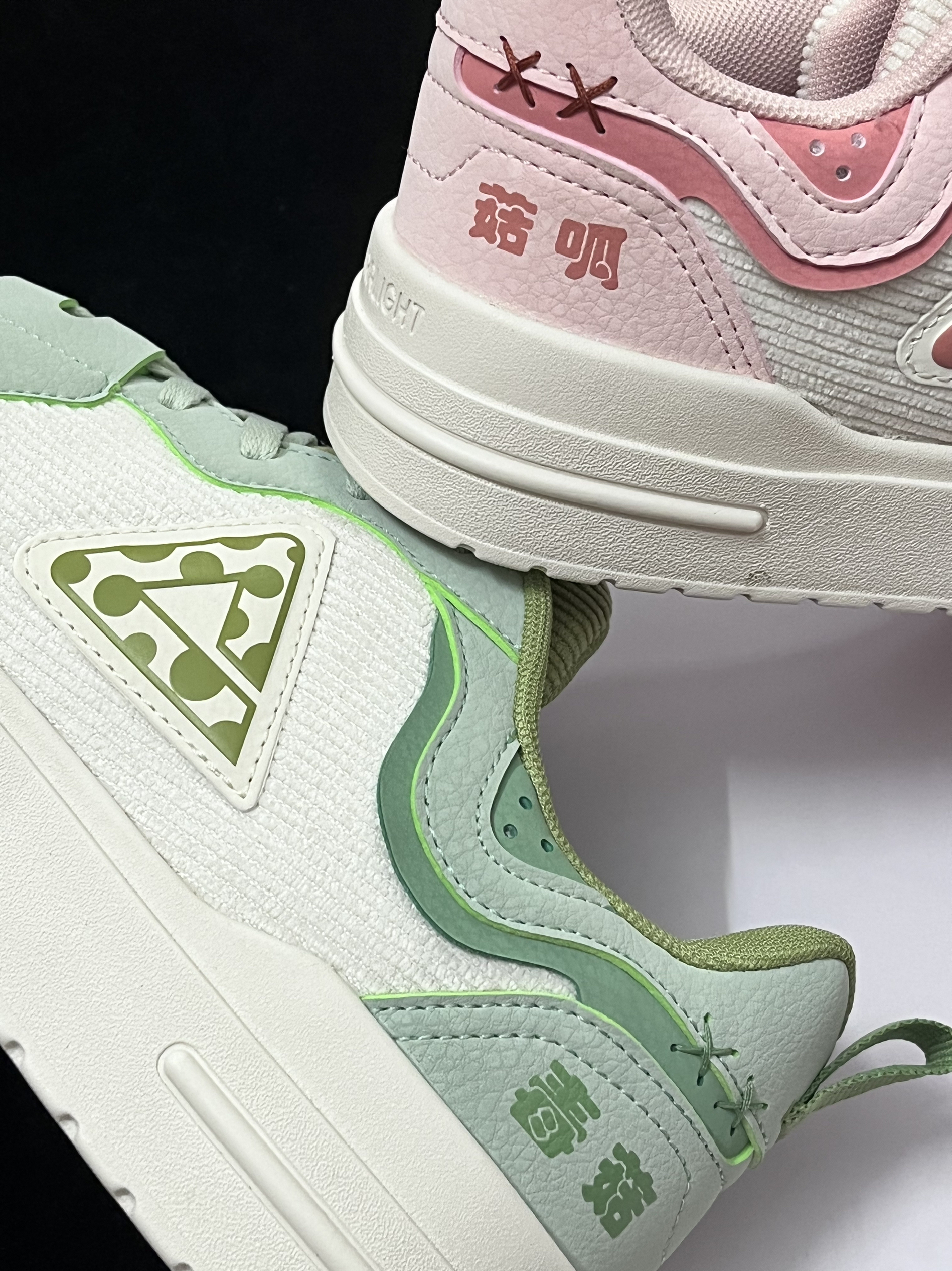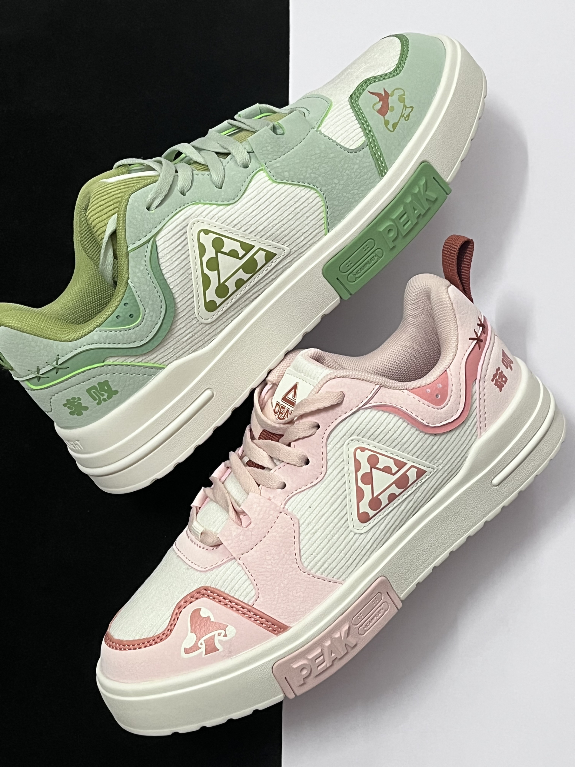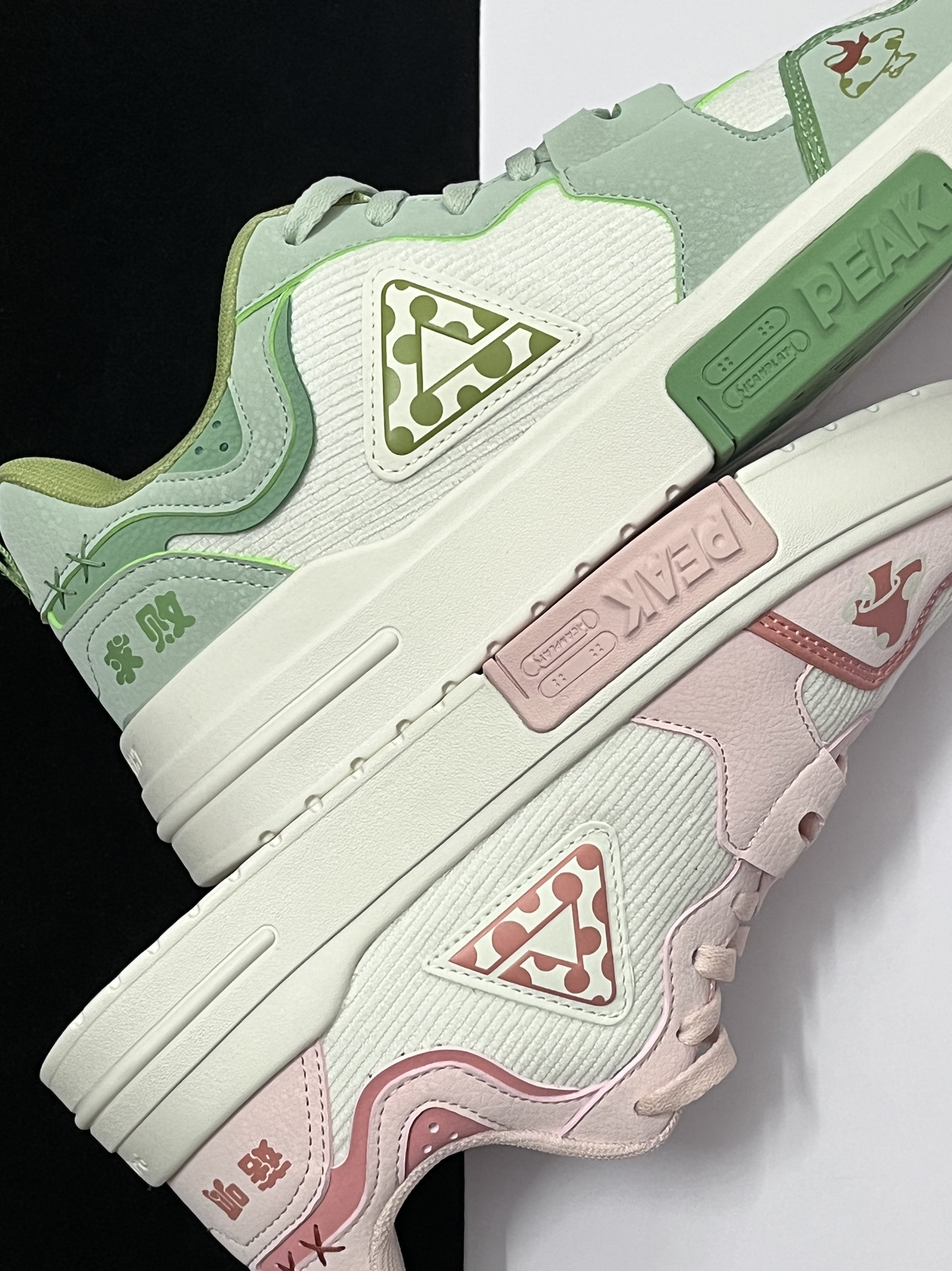 💗对于这两款来自匹克国创系列的“不菇独”板鞋,我个人觉得挺适合当作一款情侣鞋穿搭的。 💗男生穿这款水绿配色板鞋会显得很清新阳光,而女生穿粉红配色板鞋会很甜美,整体搭配在一起的效果很不错,很有七夕情人节的氛围感。 💗两双板鞋在设计上有着挺多细节点的,后跟的趣味字体以及鞋身上的图案,看起来会很有国潮风格。 💗鞋子的重量很轻盈,再加上中底使用到第三代轻弹科技,上脚舒适性很不错,尺码方面建议选小一个...