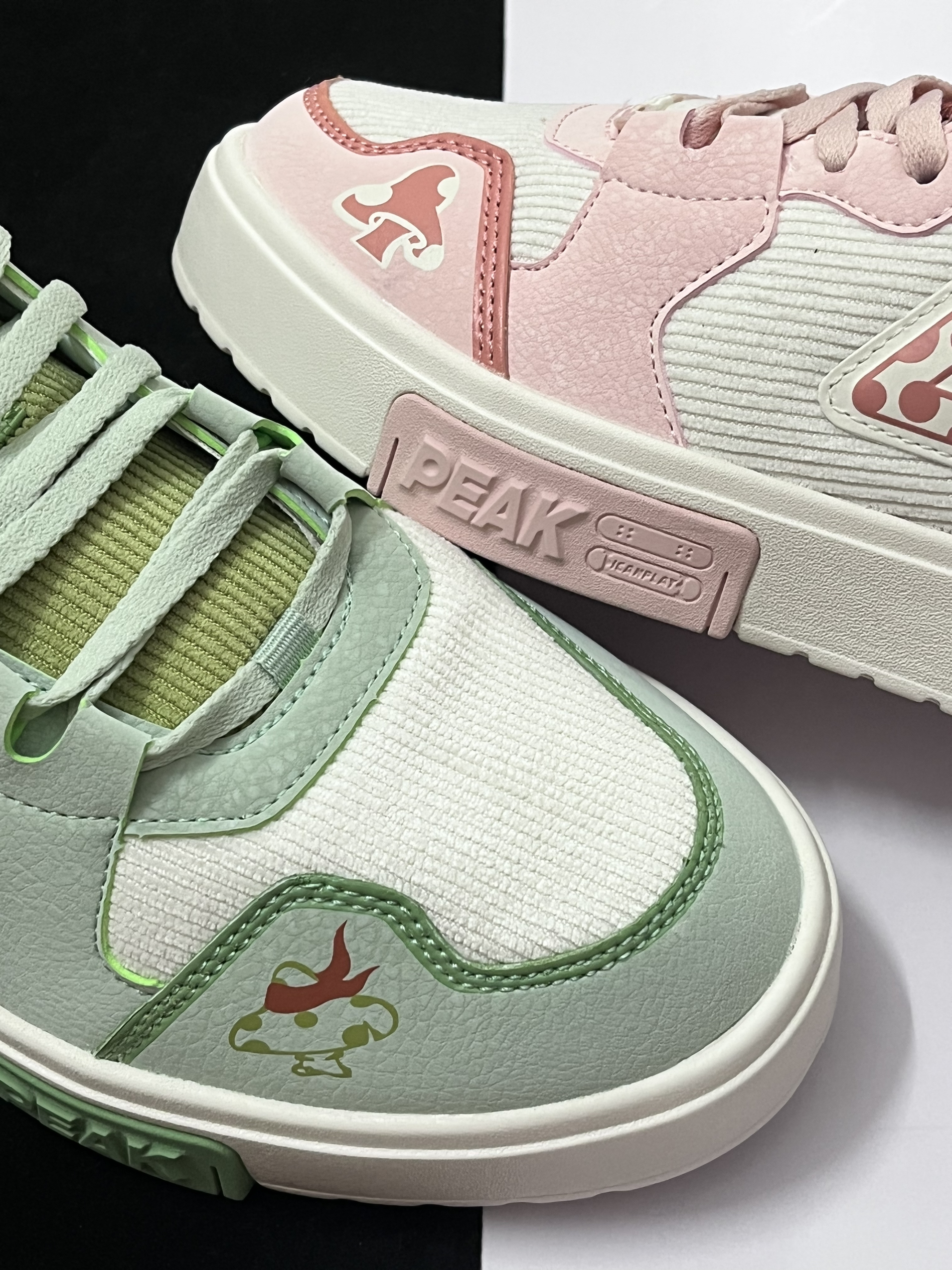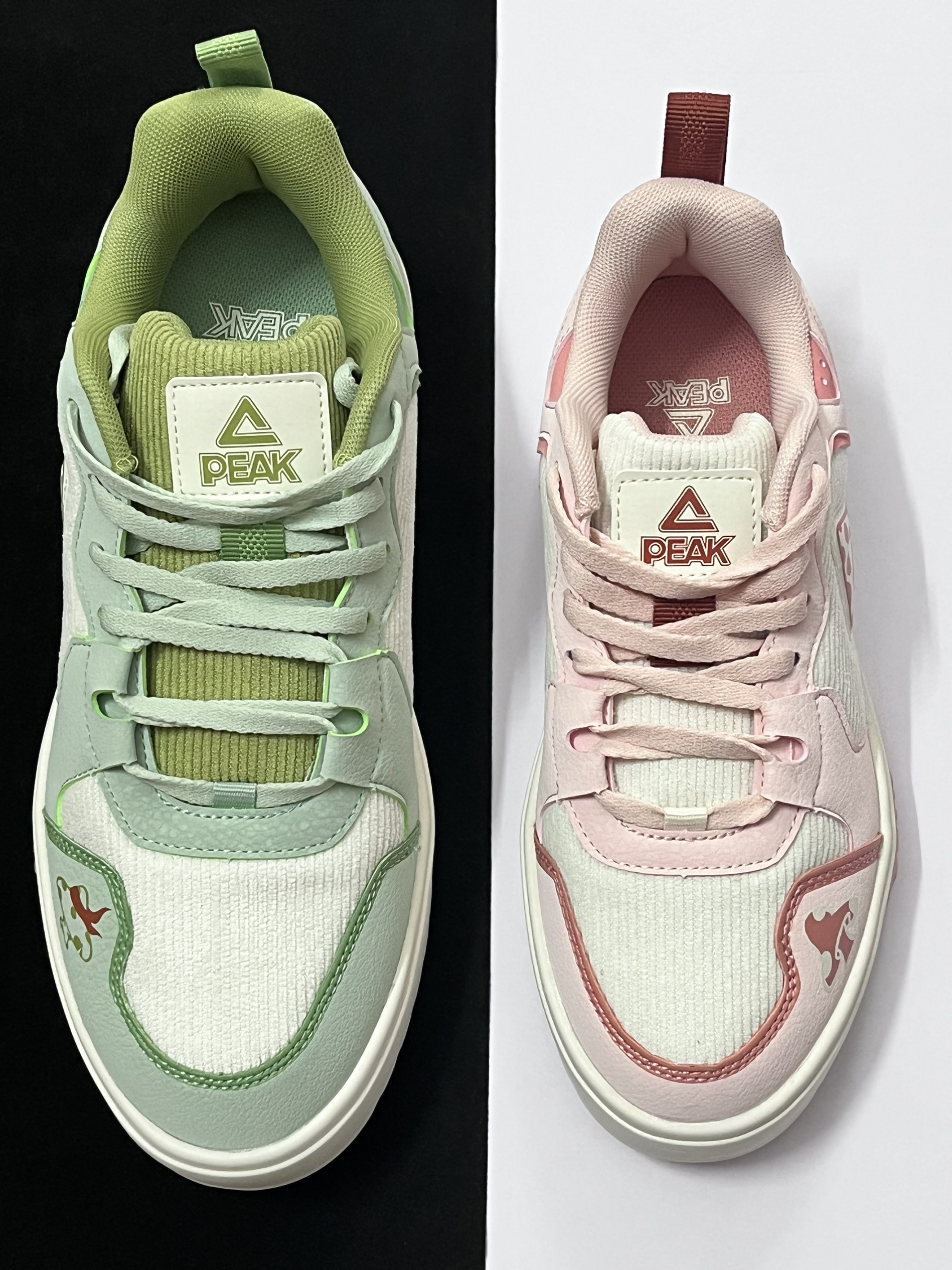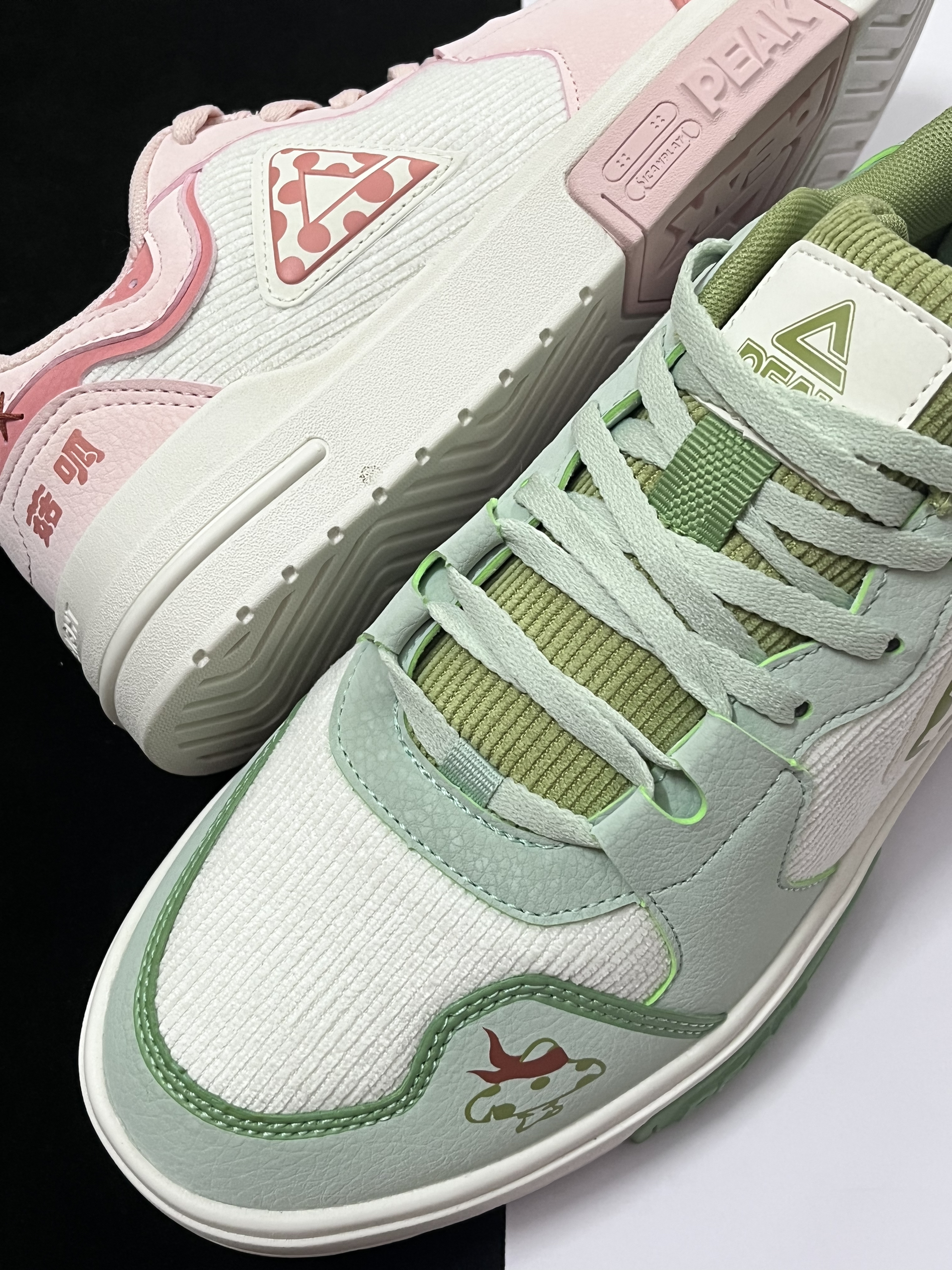 💗对于这两款来自匹克国创系列的“不菇独”板鞋,我个人觉得挺适合当作一款情侣鞋穿搭的。 💗男生穿这款水绿配色板鞋会显得很清新阳光,而女生穿粉红配色板鞋会很甜美,整体搭配在一起的效果很不错,很有七夕情人节的氛围感。 💗两双板鞋在设计上有着挺多细节点的,后跟的趣味字体以及鞋身上的图案,看起来会很有国潮风格。 💗鞋子的重量很轻盈,再加上中底使用到第三代轻弹科技,上脚舒适性很不错,尺码方面建议选小一个...