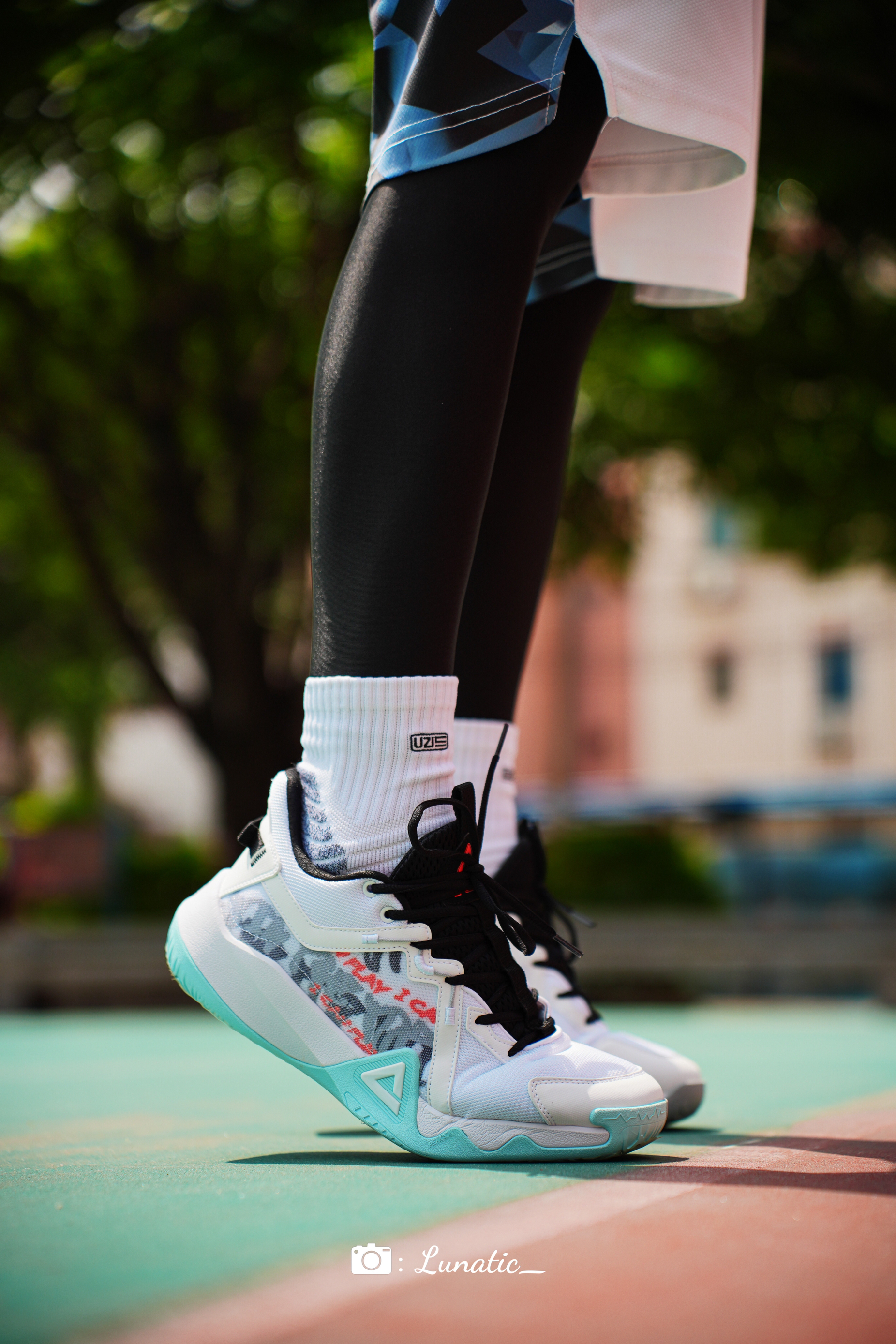 在日常训练打球,经常的会到水泥地,跟橡胶地的球场打球,所以最近注意到这款性价比十足的匹克狂想曲,我选的白黑配色,比较简洁低调的感觉,鞋侧身带有涂鸦元素点缀,增添整体的色彩搭配。中低帮的鞋型在球场也能更加的灵活多变。中底用到了“魔弹”科技,缓震方面还是不错的。 尺码推荐:我正常运动鞋穿42.5,这双我会选择43合适。个人建议选大半码。