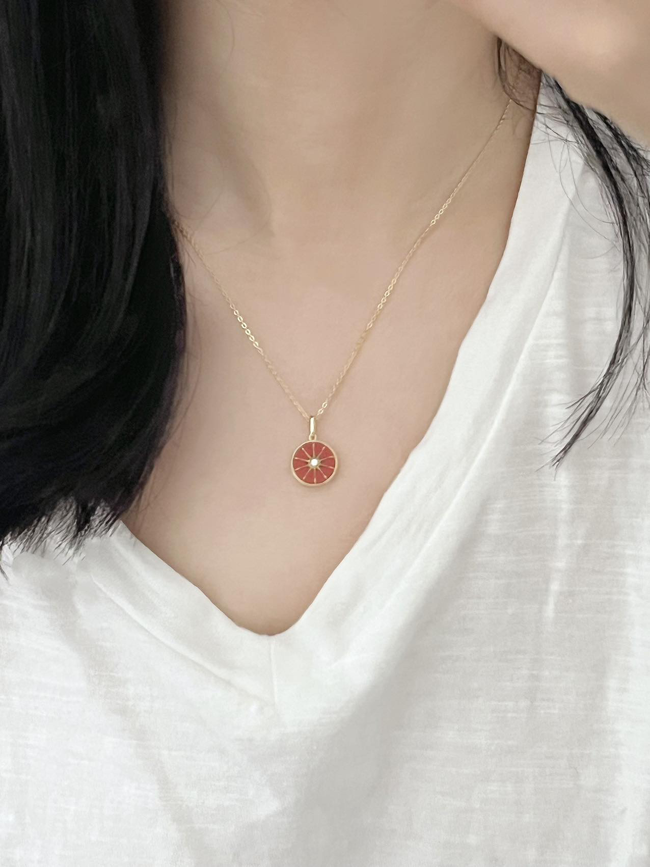 本篇笔记关联了【鞠婧祎同款】Fanci/范琦 十芒星系列双面戴白贝母纪念日红玛瑙培育钻石18K金镶嵌项链 34789 金色等商品,为用户提供真实的使用体验和购买参考。