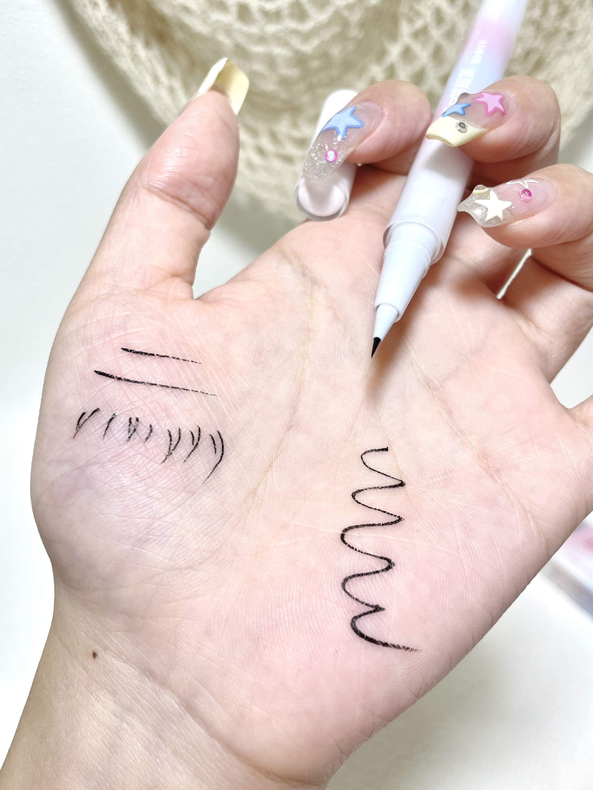 真!巨巨巨细!🪡 是不会晕染的眼线液笔! 顺滑好出水 很适合用来画下睫毛 有黑色和棕色两个颜色 防水防汗 笔尖不只是细 而且非常有韧劲!! 这样画的出来的下睫毛自然细长! 是新手小白入门级眼线液笔~