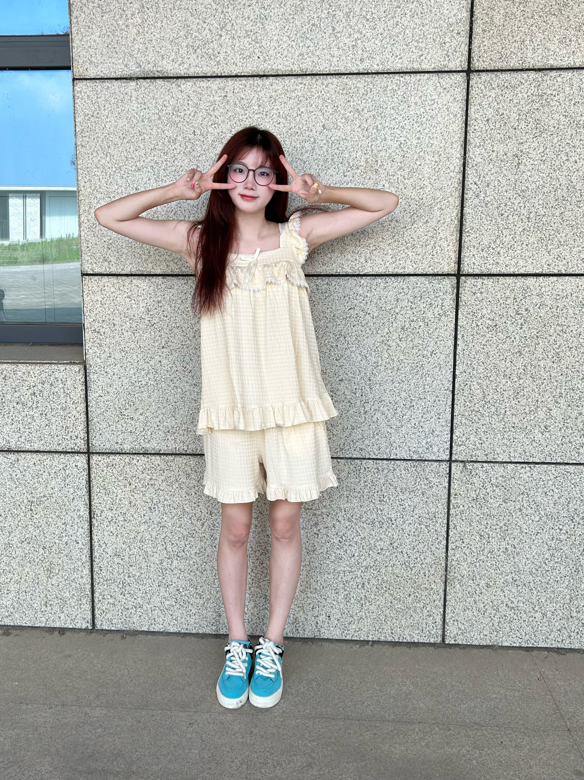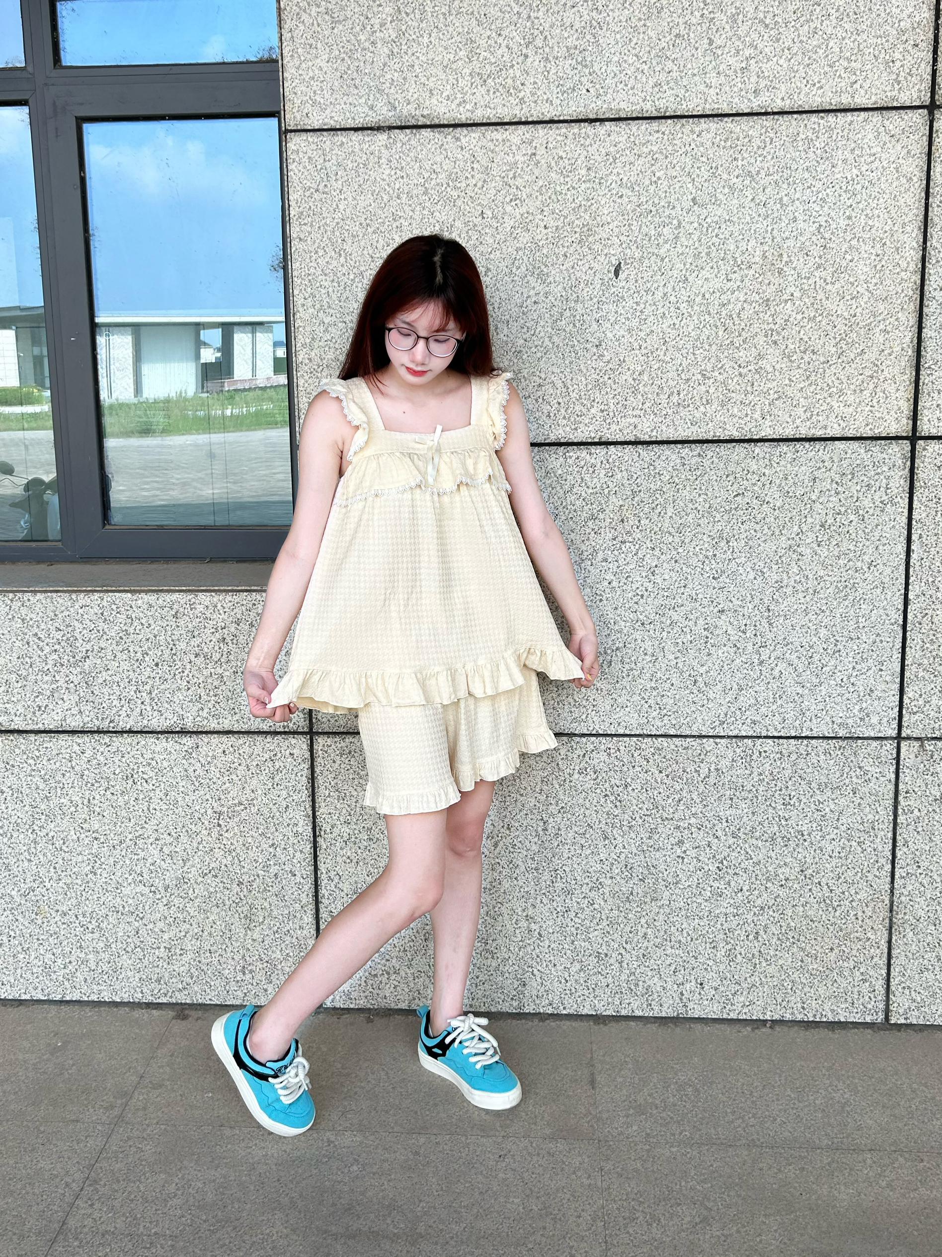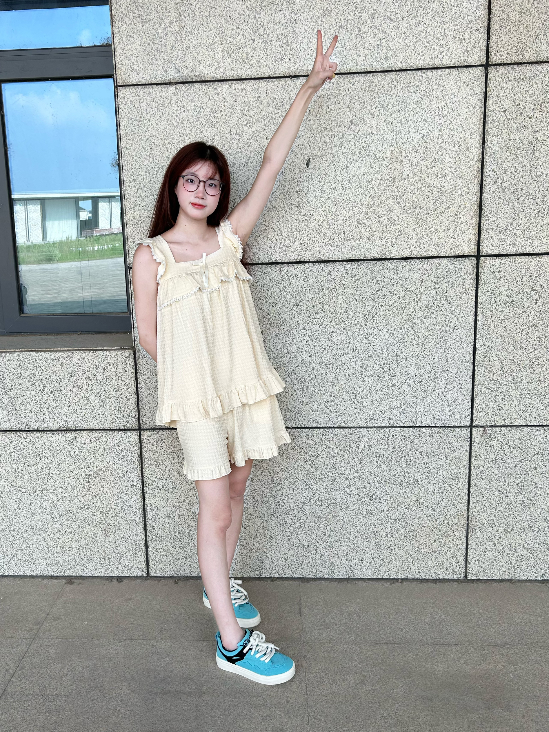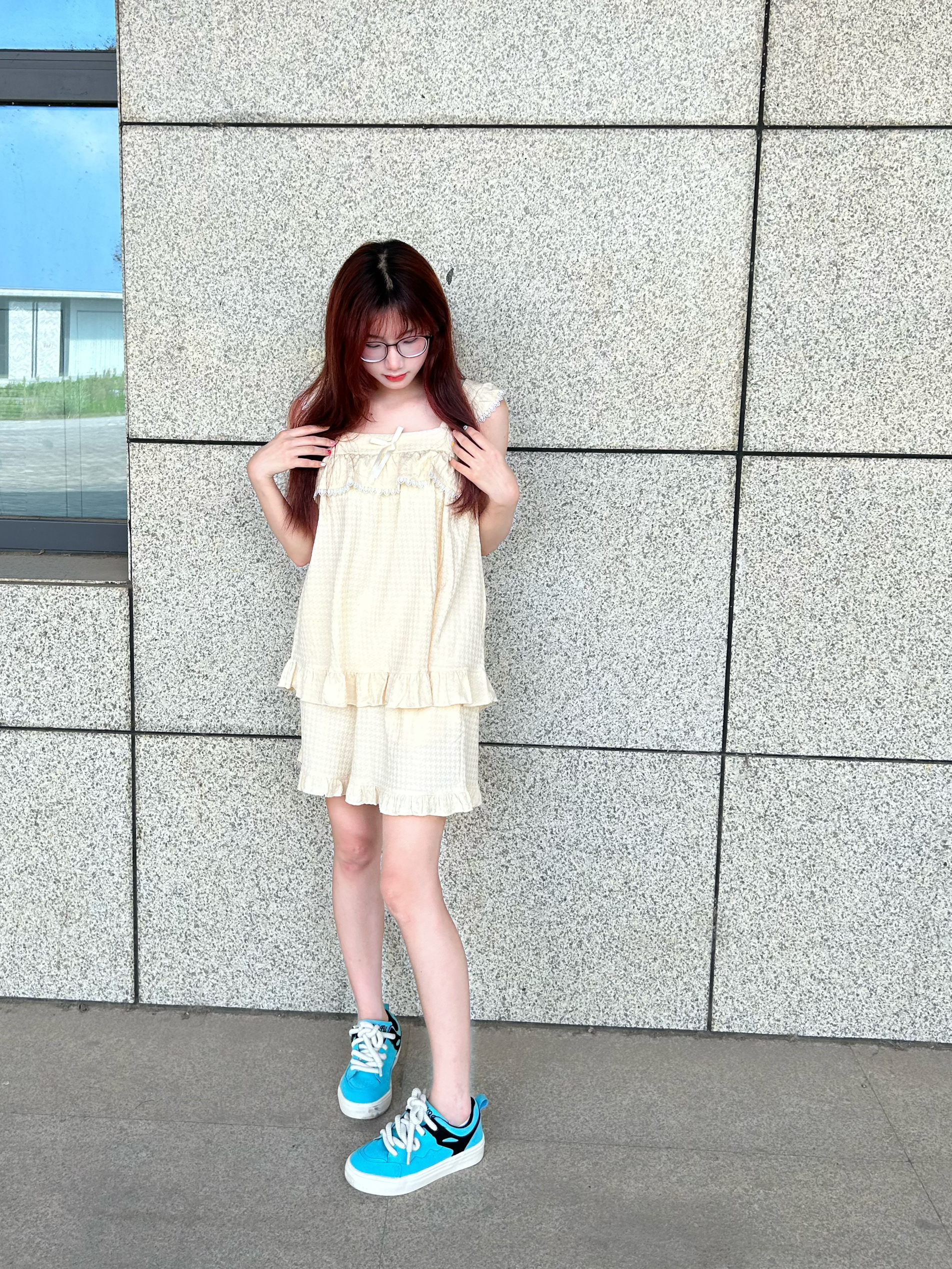 今天穿什么 今天穿 轩之婷 XUANZHITING🌟 家居套装 这款睡衣太好看啦 奶呼呼的颜色 米白色 好喜欢😍 质感摸上去也好舒服 而且还🈶️花边蝴蝶结 特别少女呀