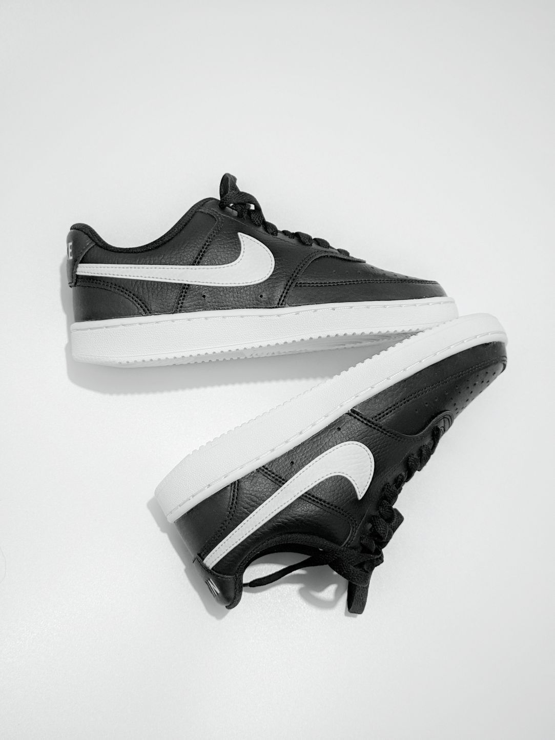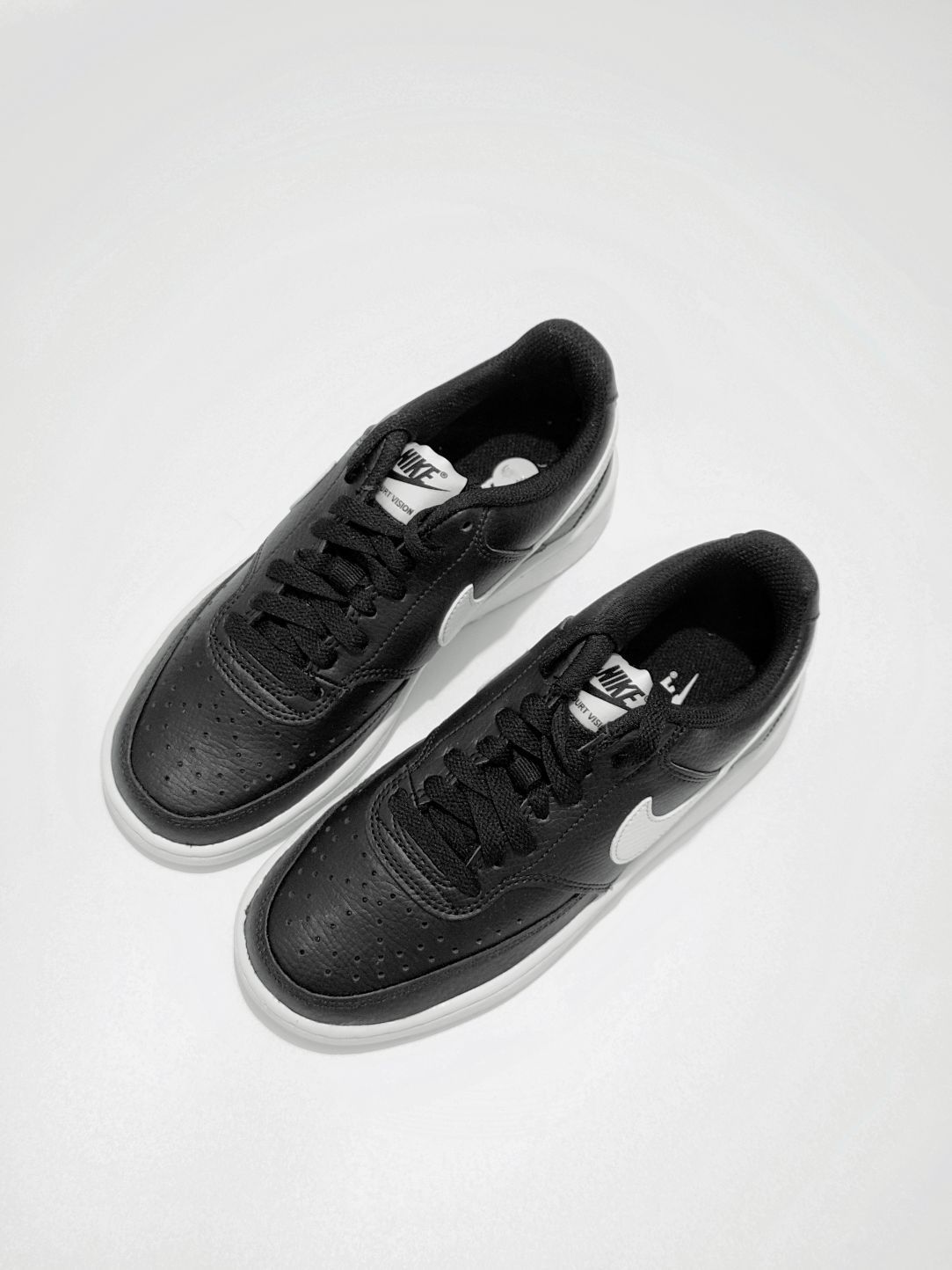 Nike Court Vision Low . 低帮运动板鞋 鞋身黑色皮革搭配纯白色的中底很耐看✔️ 鞋帮比空军稍低,脚感在线,这款品控也欧克没有溢胶和线头✔️ 打算入手空军的也可以看看这一款,平替耐看。性价比拉满👍 💡持续分享ing 帮你发现🔍宝藏单品。 这个鞋换什么颜色的鞋带更好看↓
