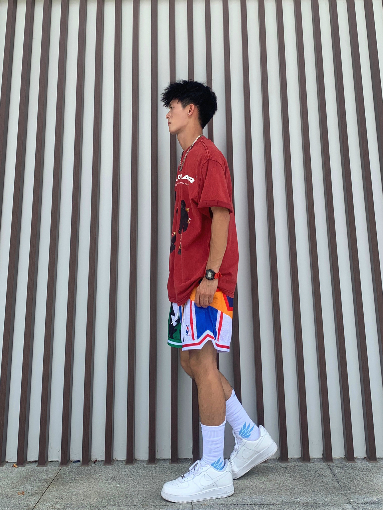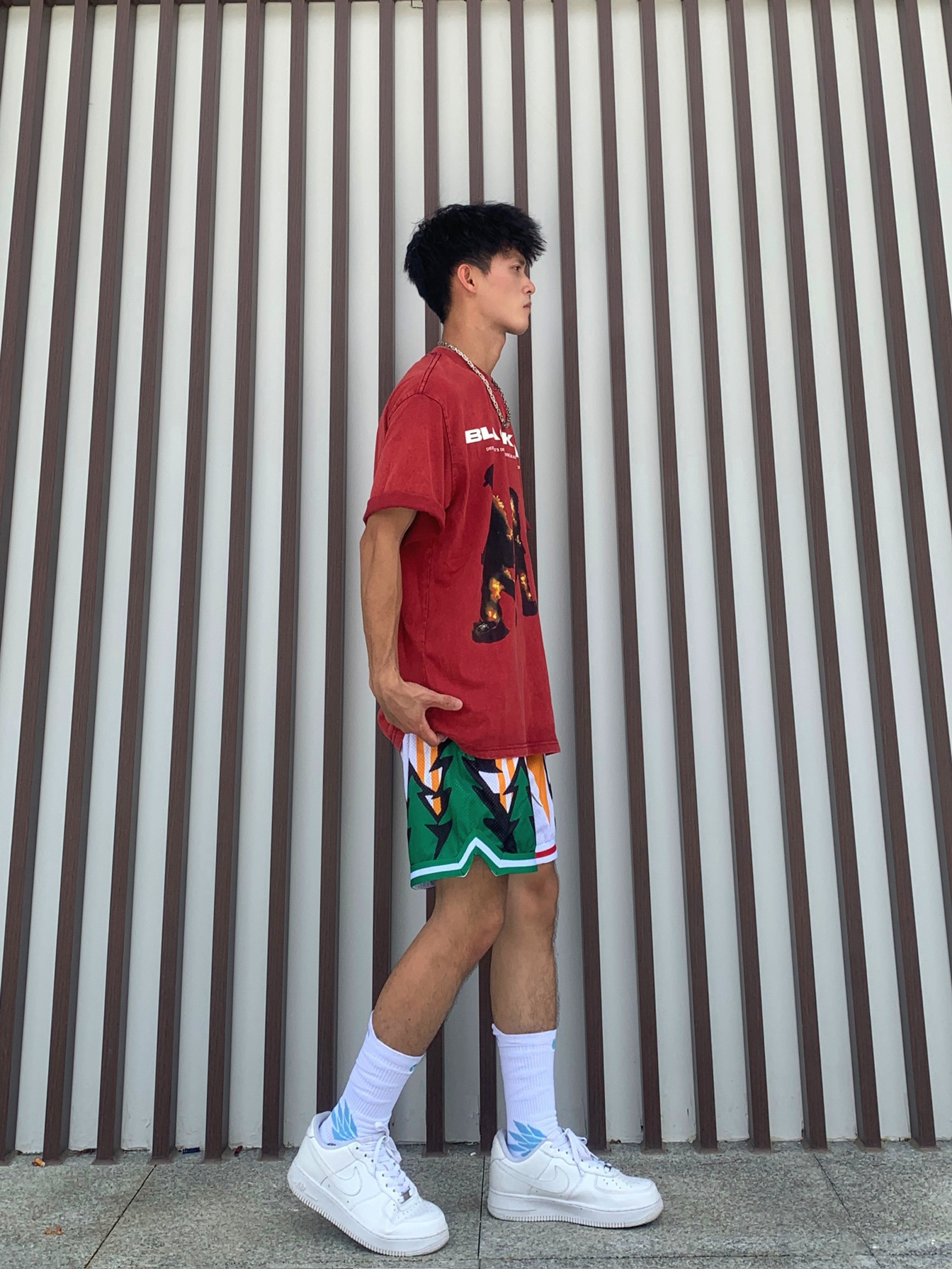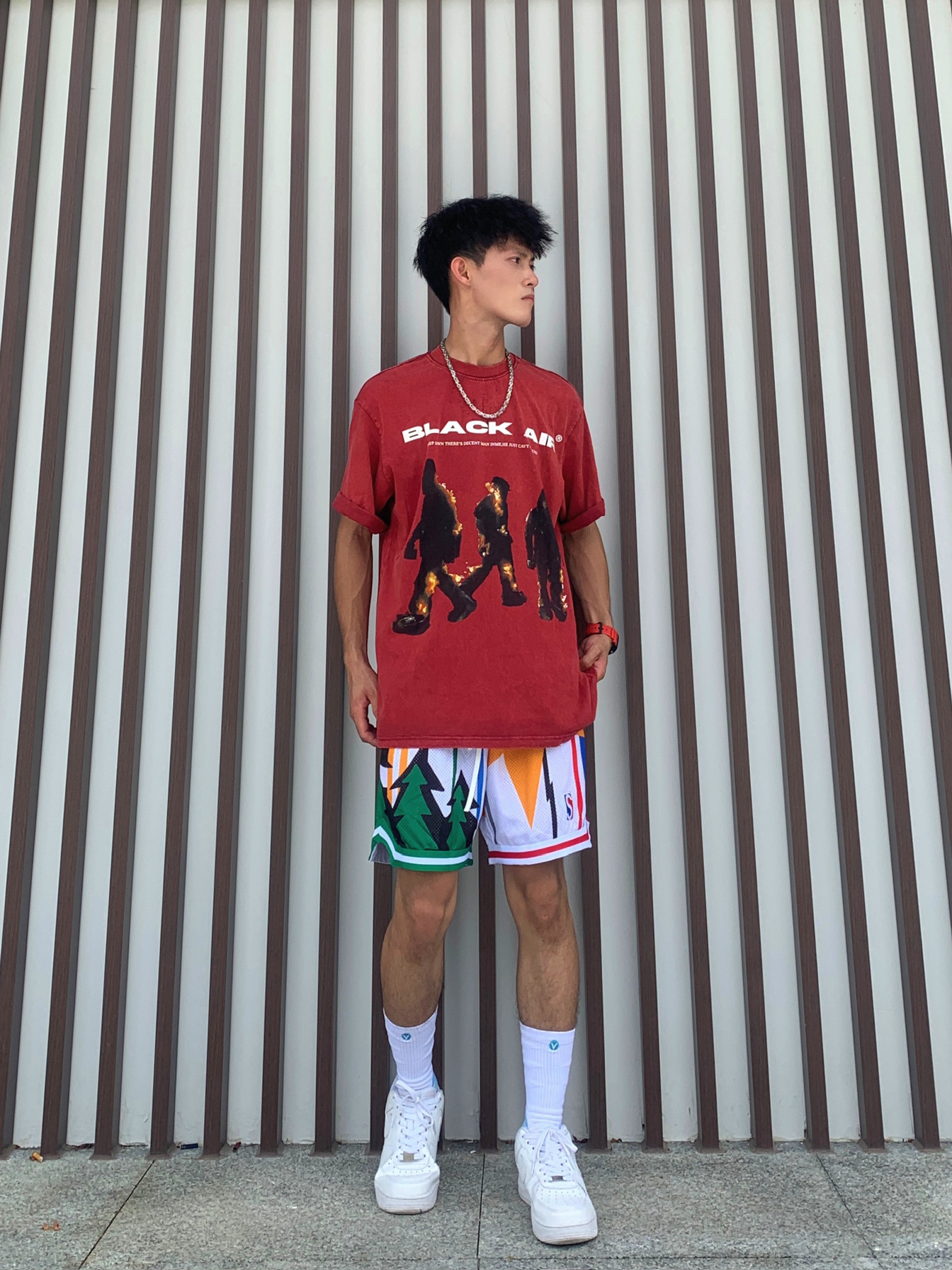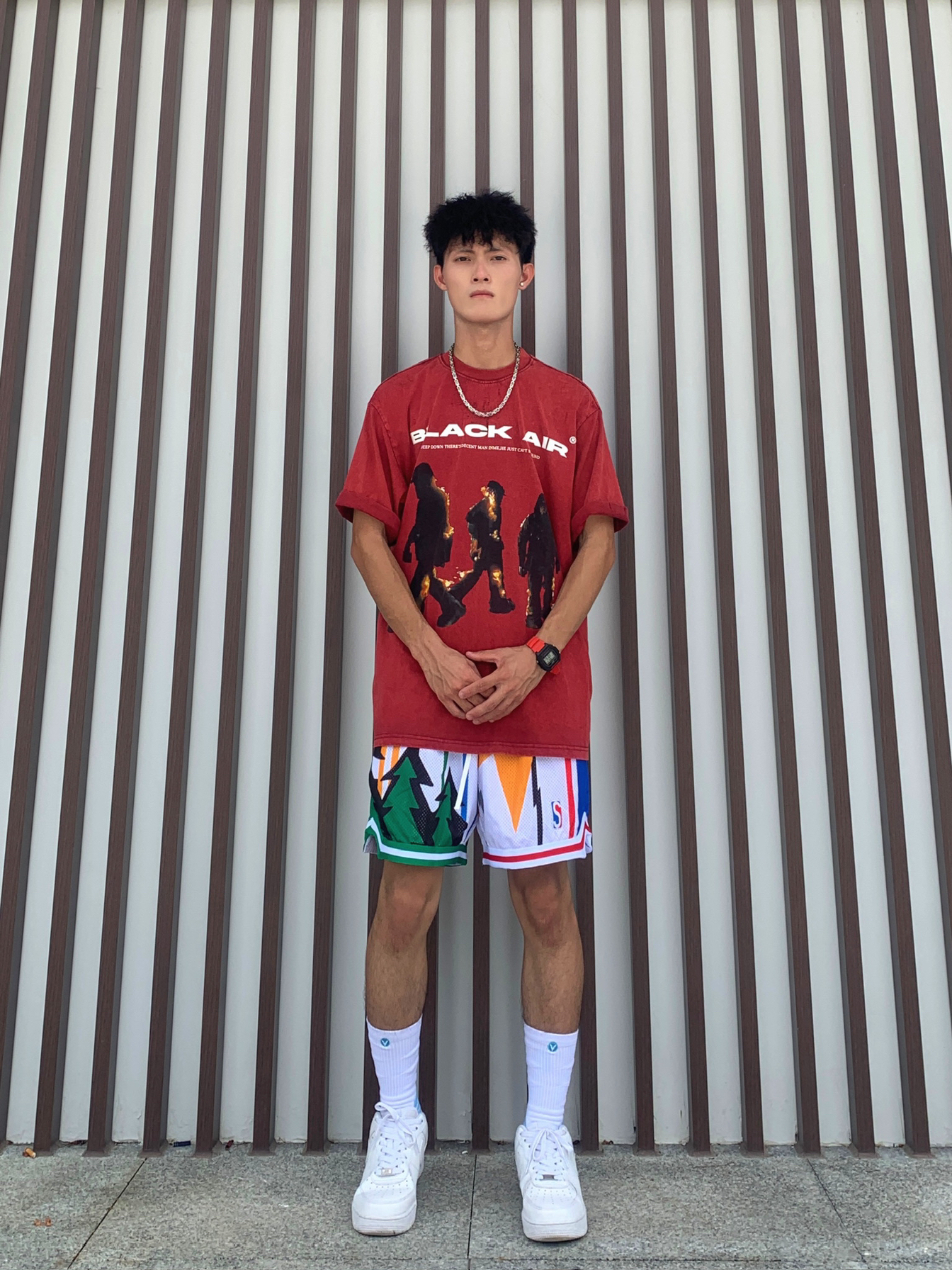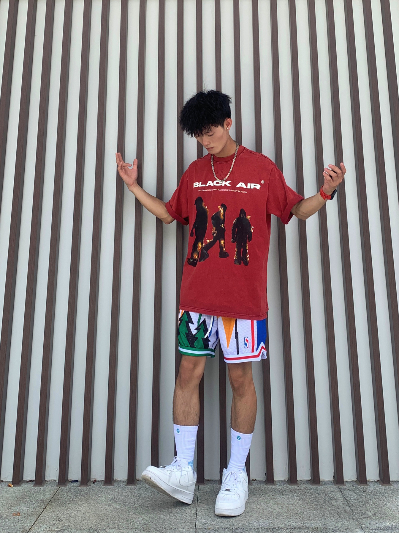 🚇登峰造极如何营造一种美式感,即潮流休闲同时穿着又不失优雅,那今天的美式穿搭你不容错过 💁🏽♂️身为体育生或者拥有黄黑皮最适合啦🫵🏻 📸红色火焰人图案的短袖➕多元素图案美式短裤✅ — — — — — — — — — — — — — — — — — — 1️⃣👕 🧩BSTG夏季男女同款复古火焰人短袖,领口处是圆领的针织螺纹,260克重磅水洗面料,大面积的数码直喷图案印花不易脱落和裂开,上身效果版...