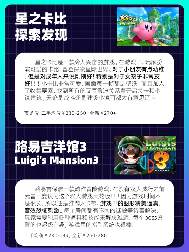 本篇笔记关联了星之卡比 探索发现 游戏本体 Switch卡带 标准版、精灵宝可梦 紫 游戏本体 Switch卡带 标准版、双人成行 It Takes Two 游戏本体 Switch卡带 标准版等商品,为用户提供真实的使用体验和购买参考。