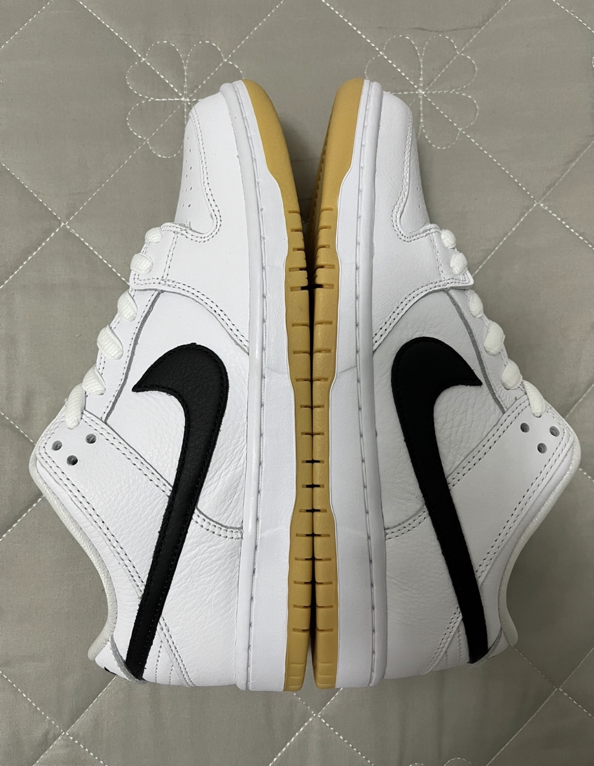当最经典的Dunk SB与最经典的白黑配色结合在一起时 那这双鞋的颜值和百搭属性绝对可以达到顶点了 这双Dunk白生胶就是做到了这一点 因此早在2019年发售的时候就被大多数鞋友所喜爱 今年的复刻也同样受欢迎 短短的时间就已经达到了1.6w的销量 真的是百搭鞋中的天花板喽🎉🎉 这次的鞋身材质和初代的皮质差不多 都是选用的优质牛皮革材质 质感柔软 有清晰可见的不规则纹路 鞋子的swoosh采用黑色的...