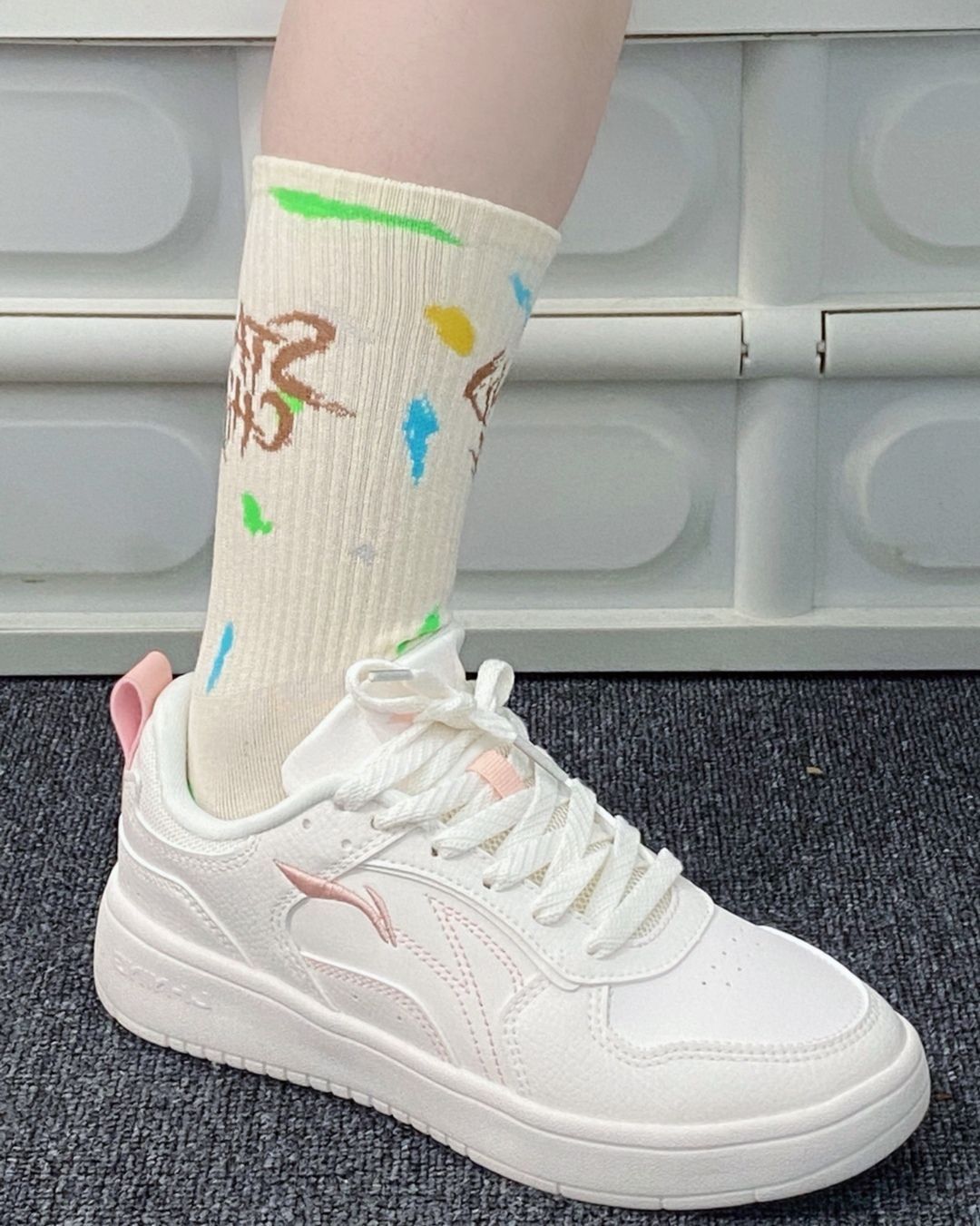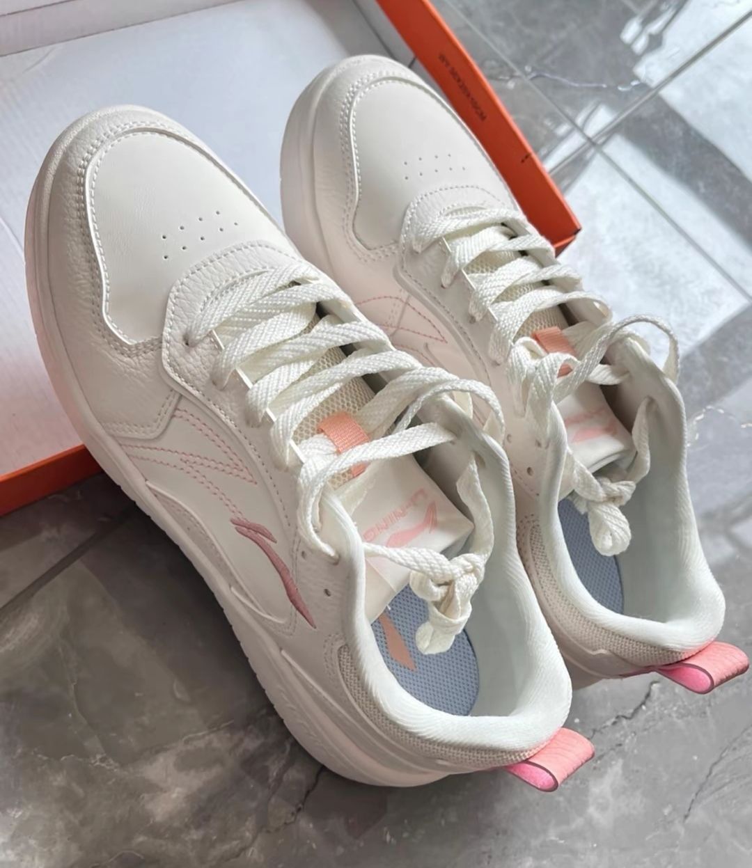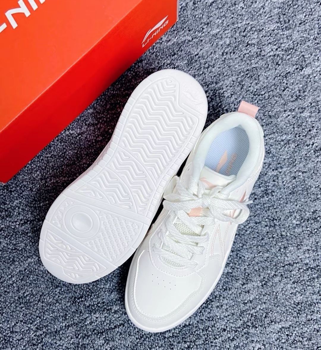 李宁穗岁云雾白 鞋身整体米白组成淡粉色点缀 奶乎~的配色超温柔~少女心十足! 鞋子的版型很秀气~日常很好搭配 皮质的鞋面鞋头荔枝纹路 质感很棒! 外侧的刺绣 logo 很精致 中底轻盈又柔软云朵般的脚感~