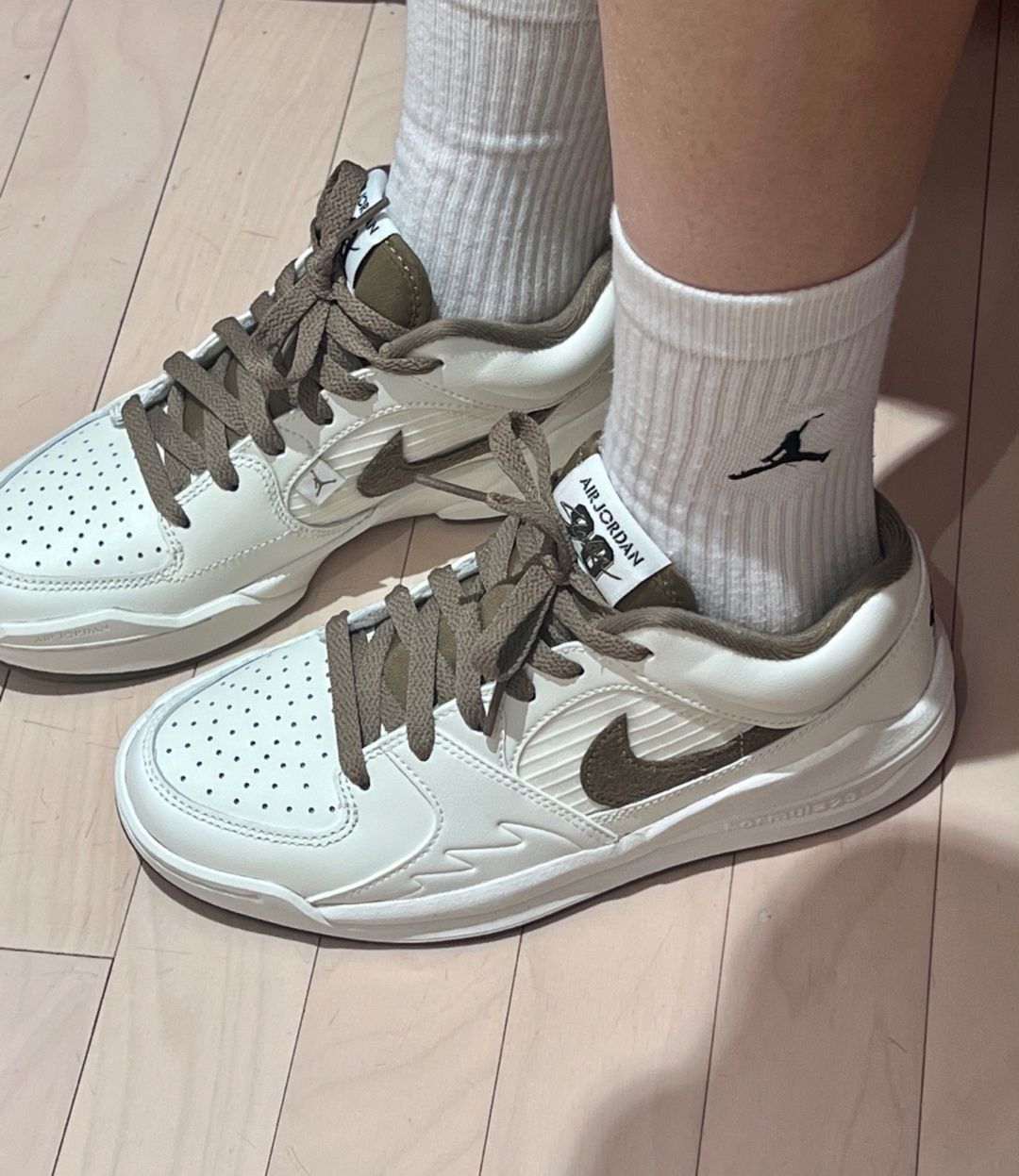 Jordan 全新鞋型来了!穿上它妥妥的炸街款!巧妙的将多代经典鞋款融为一体,颜值超高! 整体的一个皮革材质军绿色搭配米白色。 侧边采用翻毛皮 logo 与之相呼应,看上去就大气上档次。 百搭鞋款值得推荐!