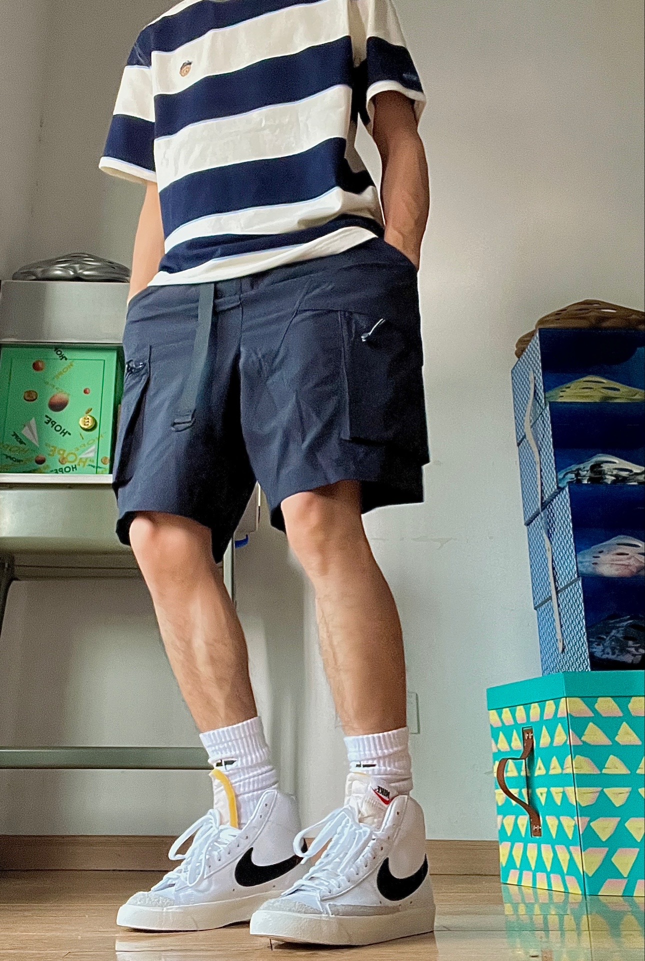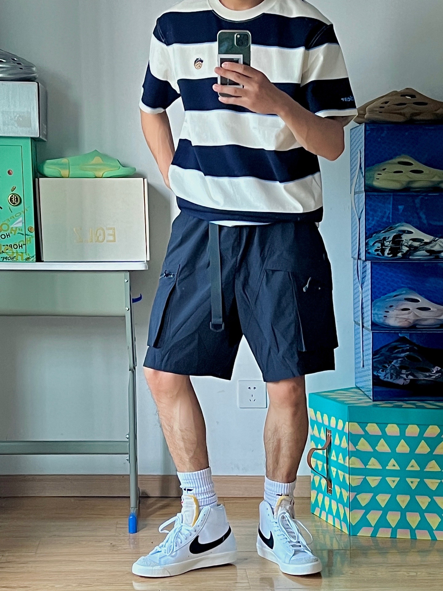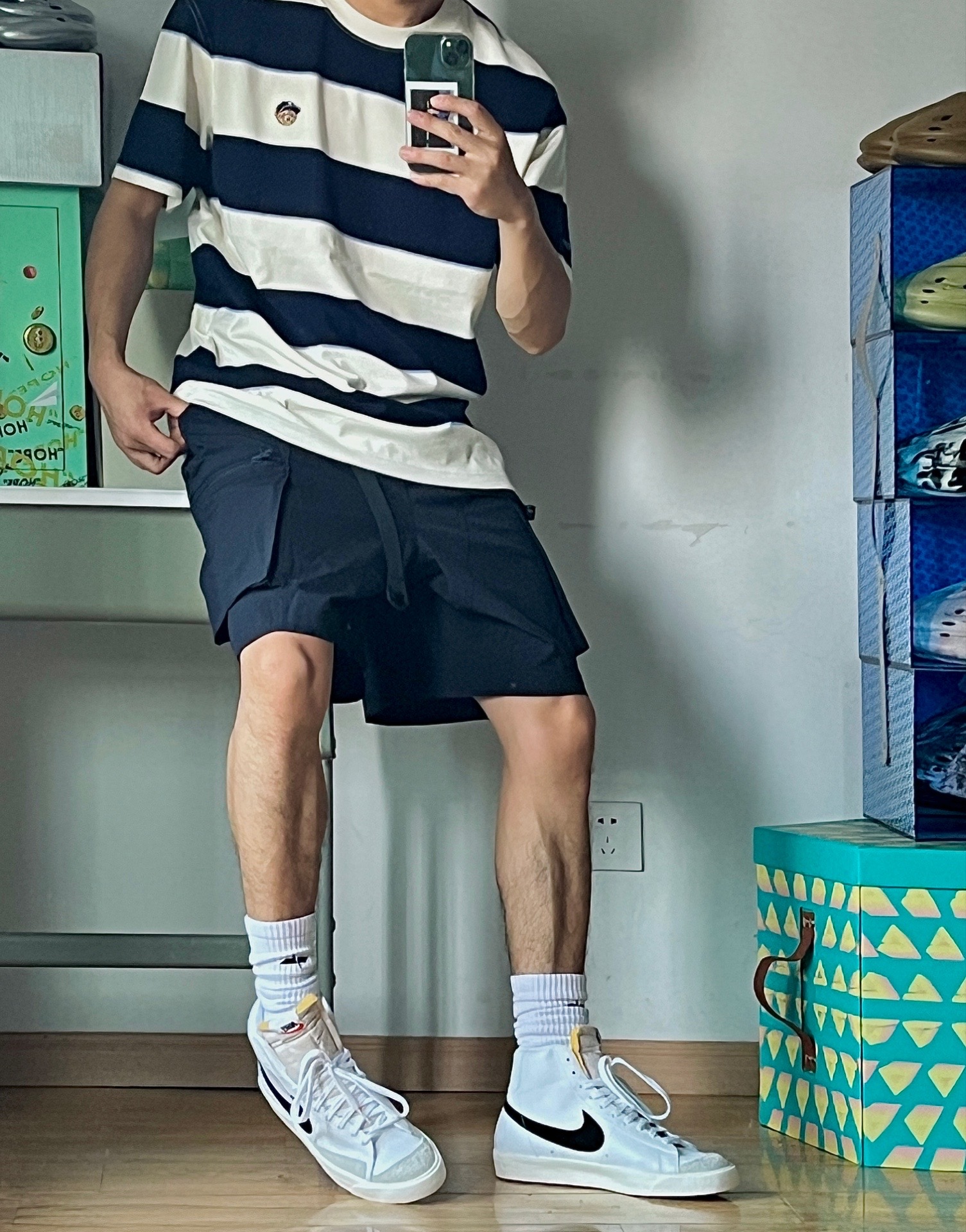 除了空军,如果再让我选一双百搭的鞋子,那一定是blazer啦!价格还只有空军的一半,太香了!白色小板鞋怎么搭都不会出错,简简单单的就很耐看!一年四季都可以穿,长裤短裤都毫无压力 🏀穿搭分享:今天穿搭的一套都来自teenie街舞小熊,条纹衫是夏季的标配,穿上活力减龄,这条工装短裤面料很轻薄,很适合夏天,版型也很好看,技能风随便拿捏了,喜欢的去看看吧#穿上短裤才有少年 #真的超超爱这个短裤 #bla...