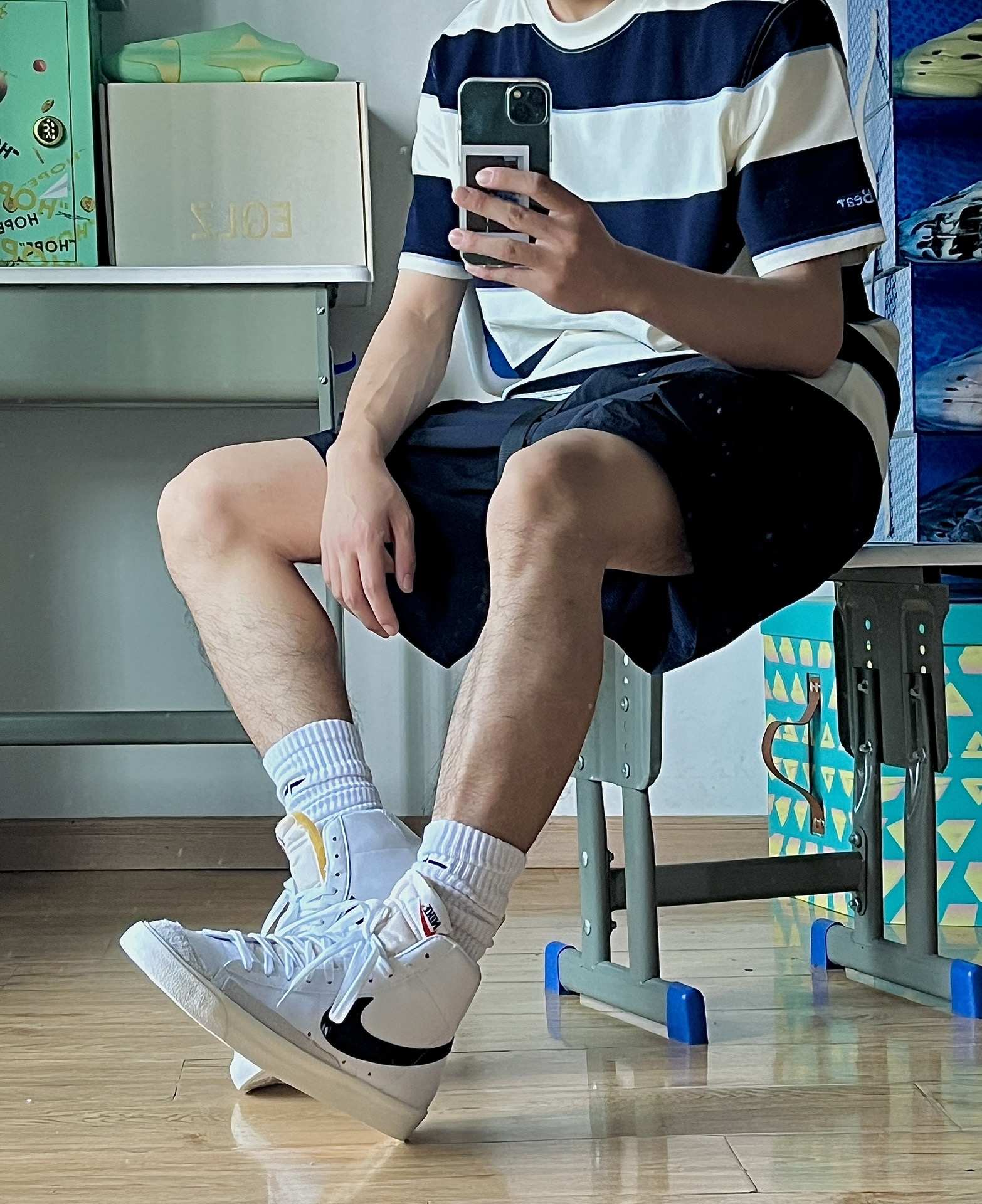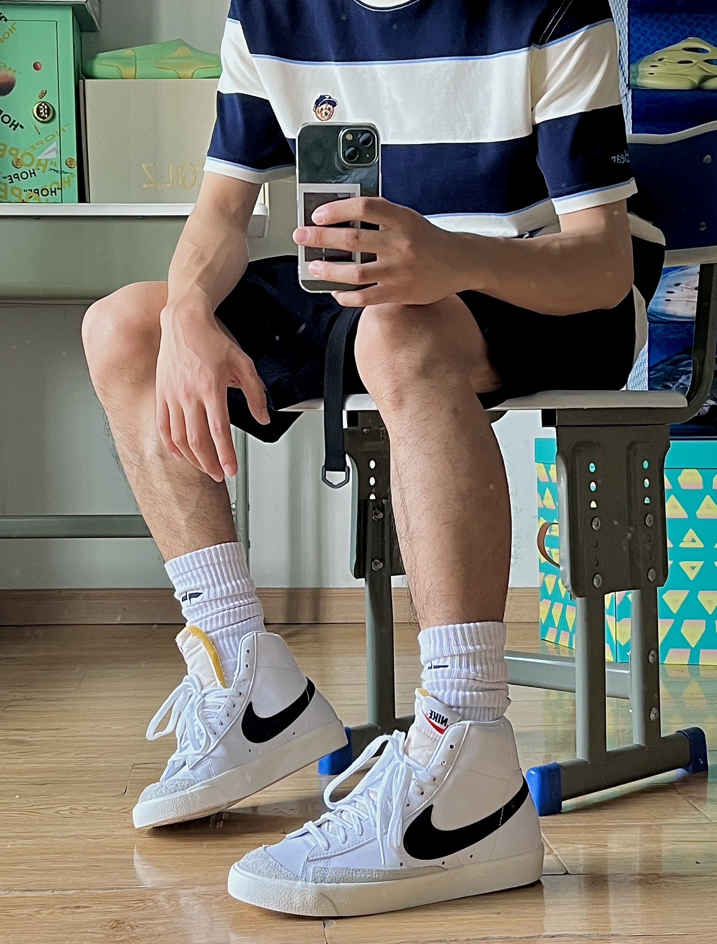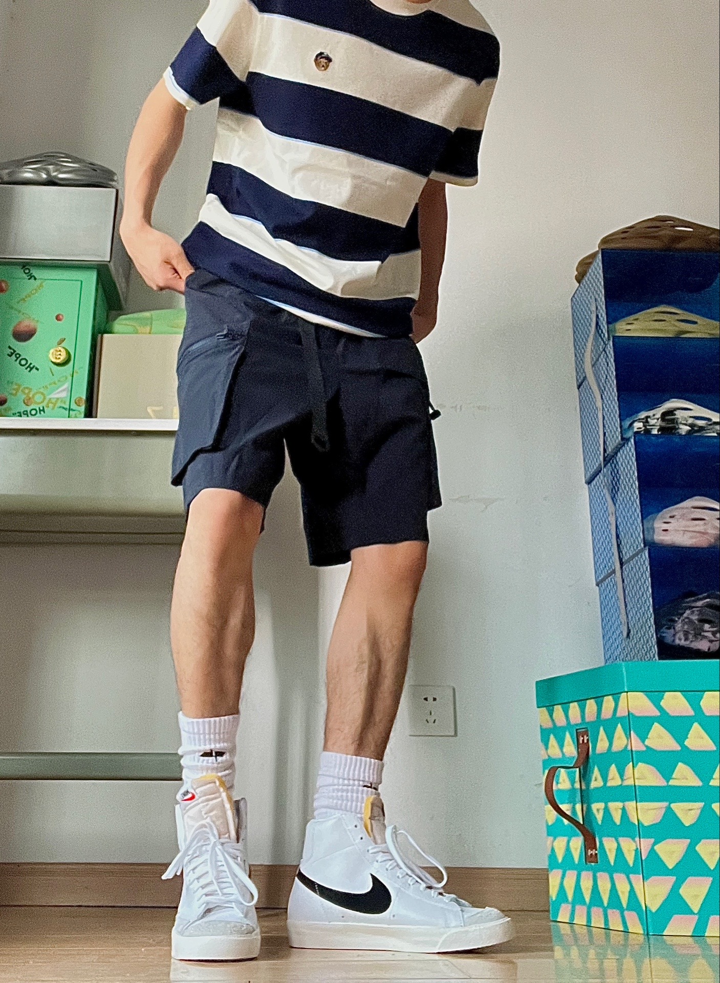 除了空军,如果再让我选一双百搭的鞋子,那一定是blazer啦!价格还只有空军的一半,太香了!白色小板鞋怎么搭都不会出错,简简单单的就很耐看!一年四季都可以穿,长裤短裤都毫无压力 🏀穿搭分享:今天穿搭的一套都来自teenie街舞小熊,条纹衫是夏季的标配,穿上活力减龄,这条工装短裤面料很轻薄,很适合夏天,版型也很好看,技能风随便拿捏了,喜欢的去看看吧#穿上短裤才有少年 #真的超超爱这个短裤 #bla...