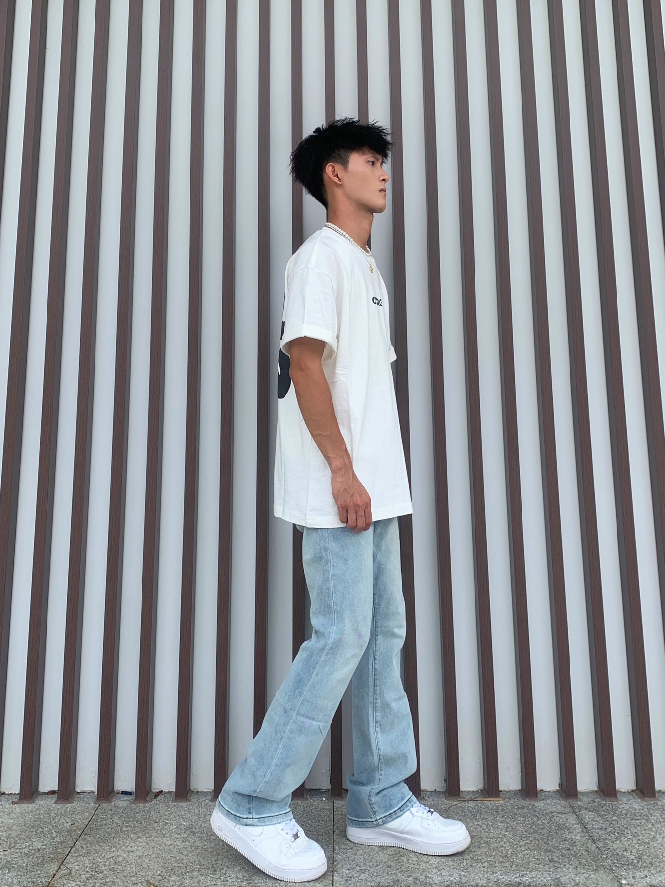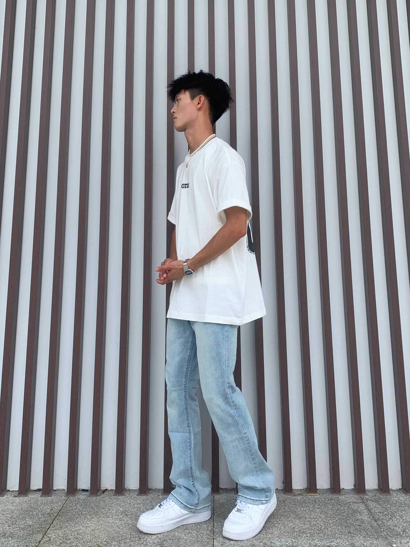 ⛅️天气晴朗适合需要外出的朋友来说,拥有一套cleanfit的简约搭配,每一个男生喜欢穿搭之一😋 💁🏽♂️身为或者拥有黄黑皮最适合啦🫵🏻 📸白色手绘发泡印花短袖➕冰蓝色微喇牛仔裤✅ — — — — — — — — — — — — — — — — — — 1️⃣👕 🧩GTRG的夏季男女新款手绘发泡印花小众短袖,260克重磅宽松型,100%纯棉舒适罗纹布面料,阔型落肩设计非常适合日常百搭的风格⚪️...