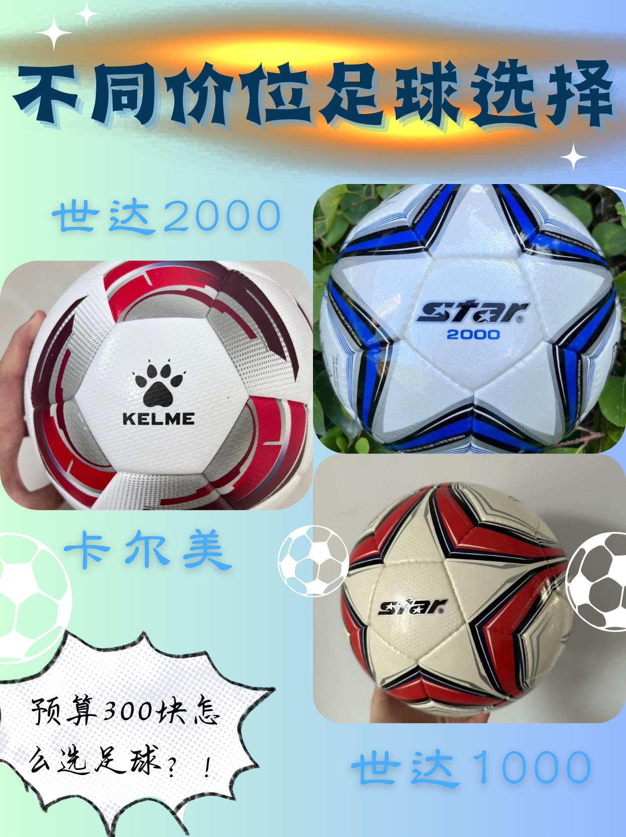 很多孩子或者同学一开始买足球的时候没有什么经验,今天这篇分享贴就是分享六款适合同学们平时踢球的热款足球!来看看今天带来的六款足球的推荐吧~ Adidas 2022卡塔尔世界杯 HG4777 💴369 2022年阿迪达斯推出的国际足联世界杯官方比赛用球,采用活力醒目的颜色和设计图案,丁基合成橡胶内胆,平时的足球好搭档 摩腾 手缝足球 F5A3200-AC 💴91 PU乳胶内胆 热粘合,细节外观都...