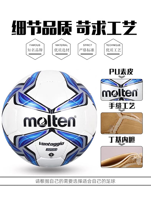 本篇笔记关联了Molten/摩腾 A3200 真皮脚感 训练比赛 耐磨手缝 标准 防沙气 小场地 丁基内胆 PU足球 F5A3200等商品,为用户提供真实的使用体验和购买参考。