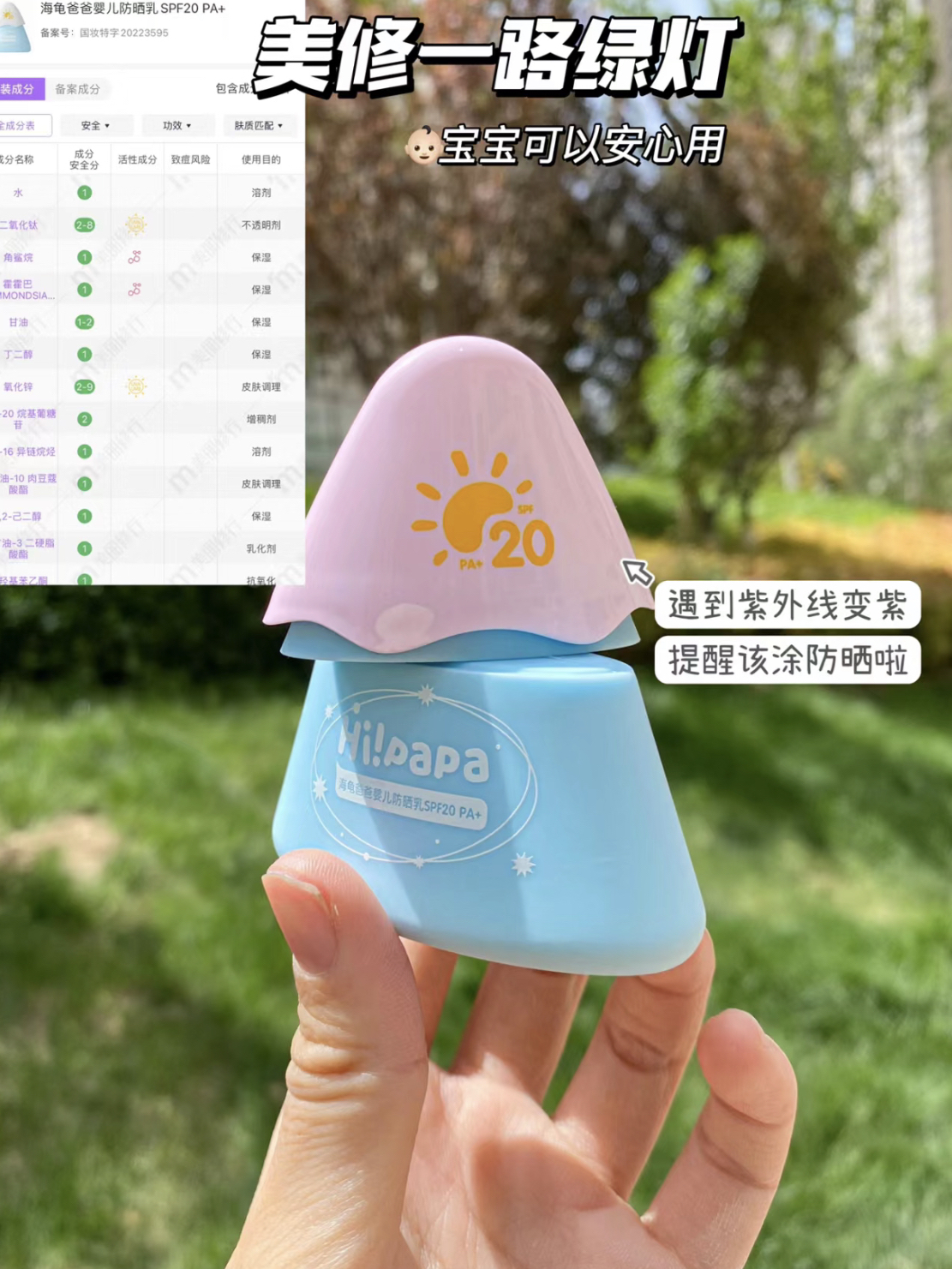 本篇笔记关联了海龟爸爸/Hi!papa 婴幼儿小雪山物理防晒乳儿童防晒霜军训专用SPF20 温水可卸清透防汗防水养肤防紫外线温和隔离紫外线 20g、海龟爸爸/Hi!papa 婴幼儿小雪山物理防晒乳儿童防晒霜军训专用SPF20 温水可卸清透防汗防水养肤防紫外线温和隔离紫外线 50g等商品,为用户提供真实的使用体验和购买参考。