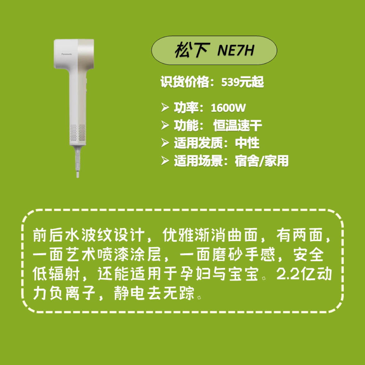 高速吹风机使用高速马达,每分钟的风力能达到10W或以上,干发速度是普通吹风机五倍以上,它最大的优势就是干得快且不伤发✅。但是缺点就是价格有点贵,有的动不动就要上千,今天小编整理了几款平价的吹风机,只要大几百就能入手,绝对能够满足大家的需求。👌👌 ⭐️松下 NE7H 前后水波纹设计,优雅渐消曲面,前卫先锋造型,安全低辐射,使用安心,适用于孕妇与宝宝。2.2亿动力负离子,静电去无踪 ⭐️徕芬LF02 ...