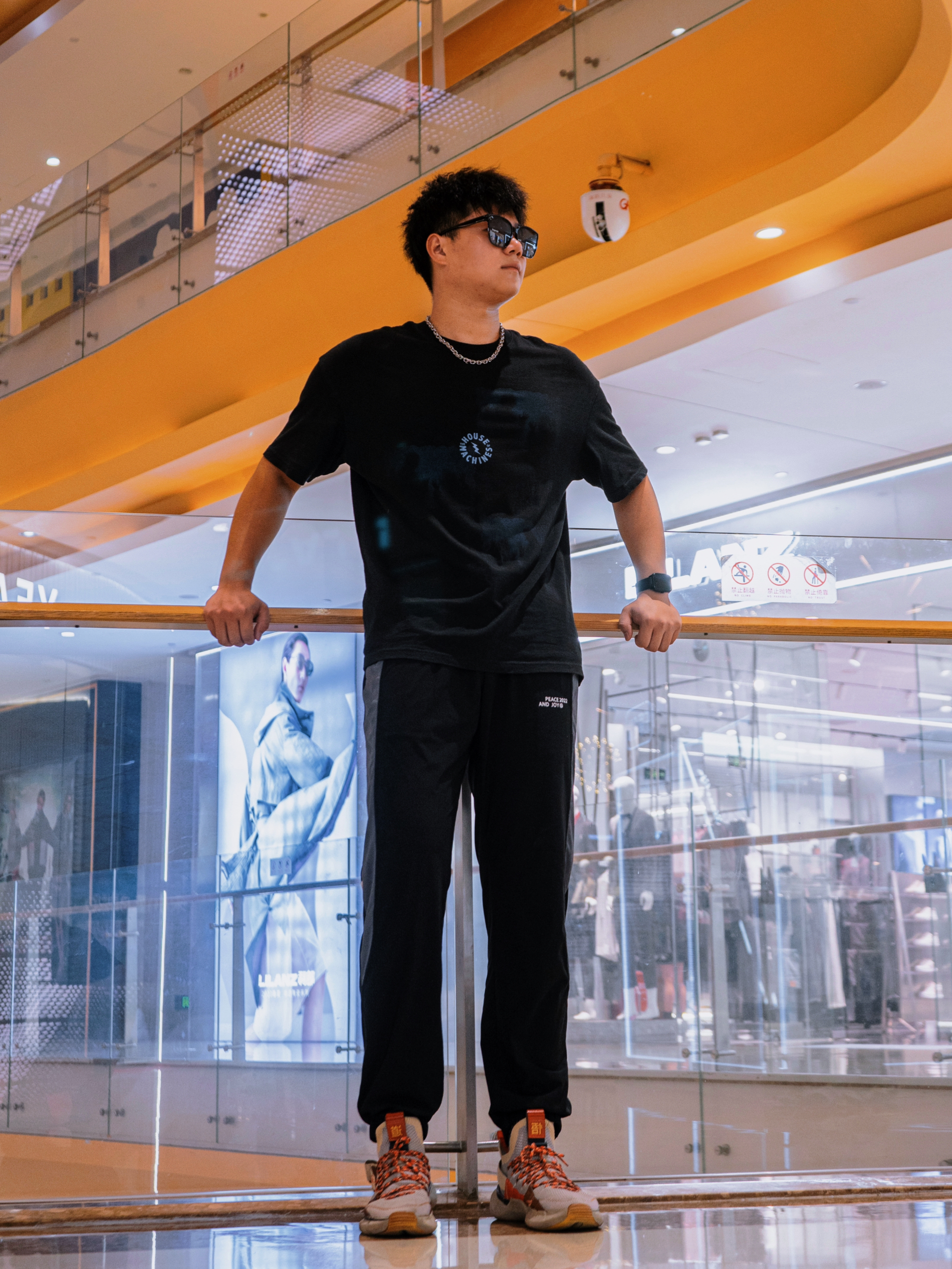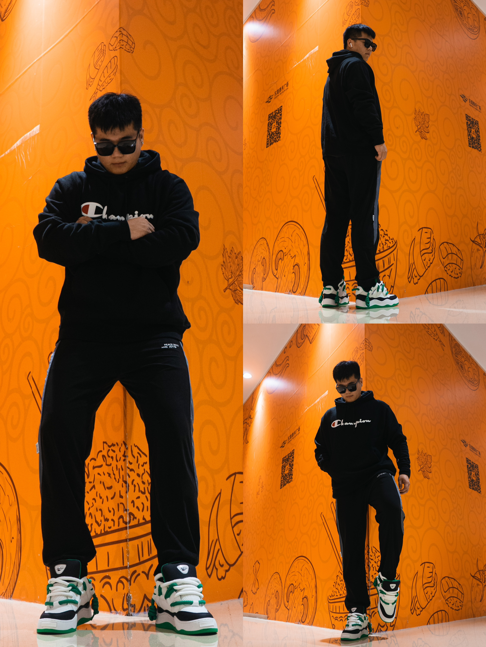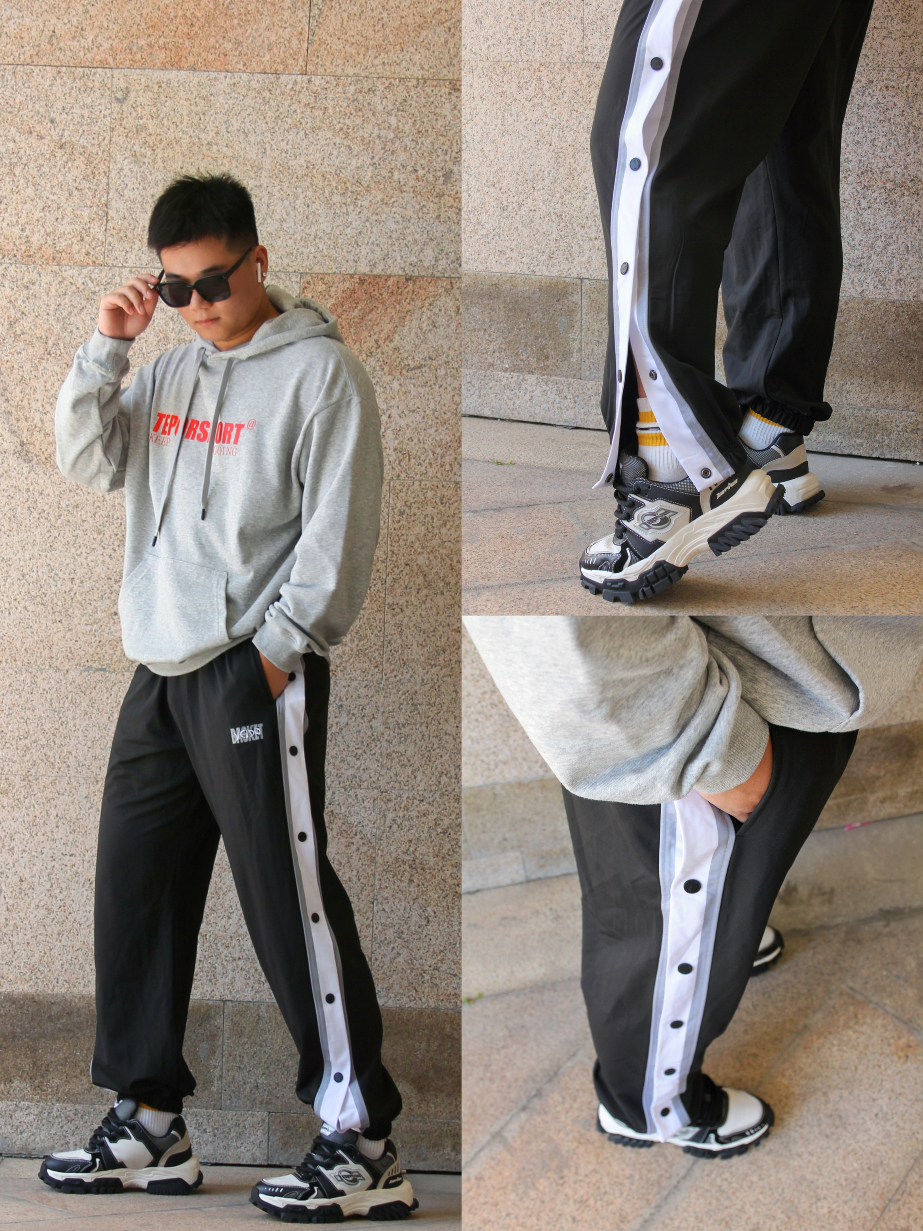 ✅遇到黑色直接选就是对的! 黑色就是微胖男生的福音! 纯黑的T恤胸前点缀图案, 黑色运动裤侧面也有灰色搭配🎠 简单的黑色也可以有高级感💯 加上一双鲜明颜色的鞋子,撞色效果永远都不过时🏆