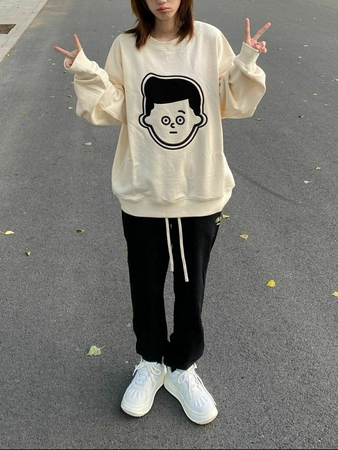 😍衣服真的真心不错!经典简约大方! 卡通小男孩儿头像蛮可爱的哈哈哈 男女情侣款潮流街头时尚简约,🆒 随便你怎么穿怎么搭,材质十分柔软, 上身穿着极其舒适!😘😘😘 🌹搭配牛仔裤或者阔腿裤都很赞, 图片素材来自博主爱屋