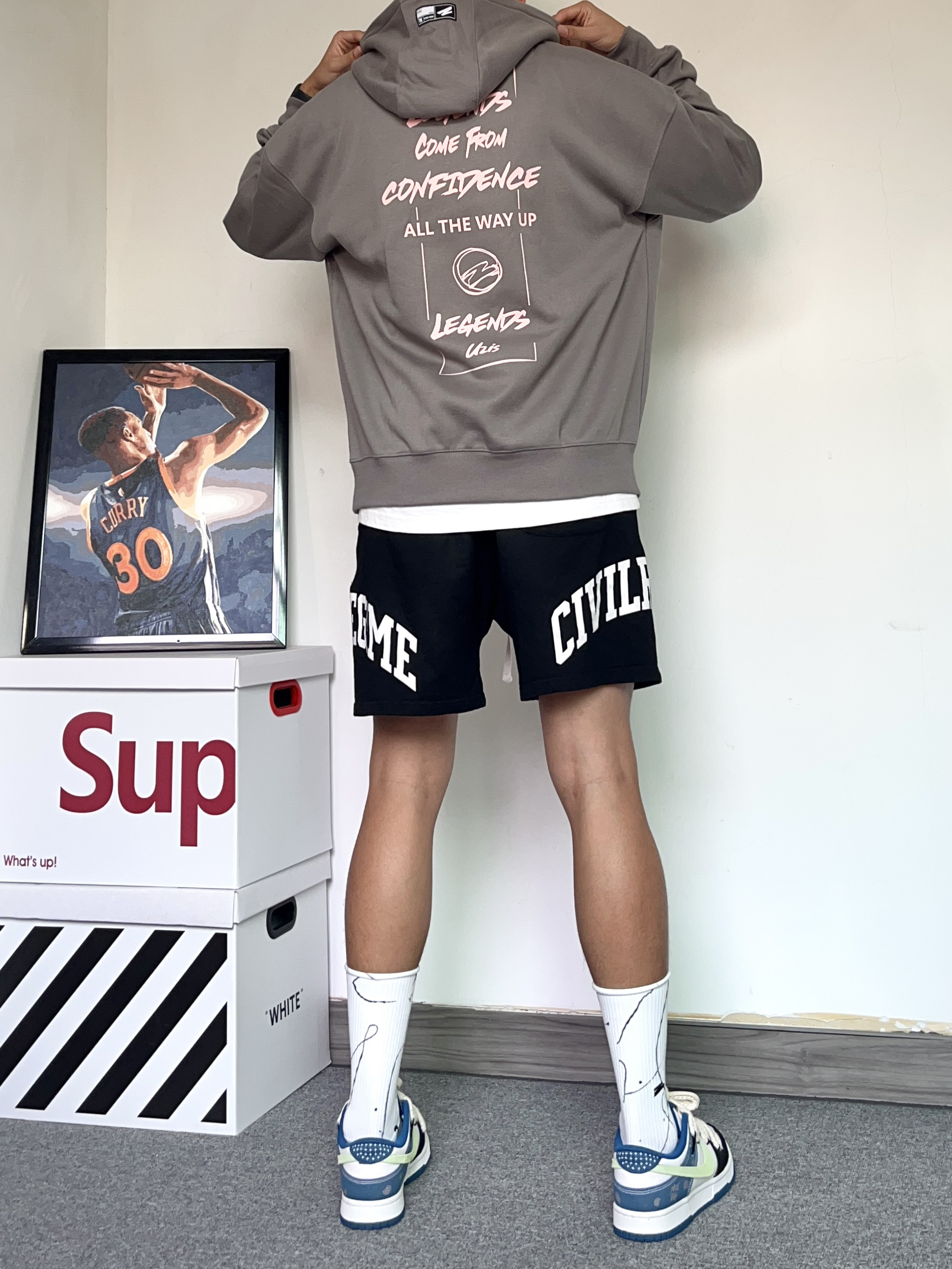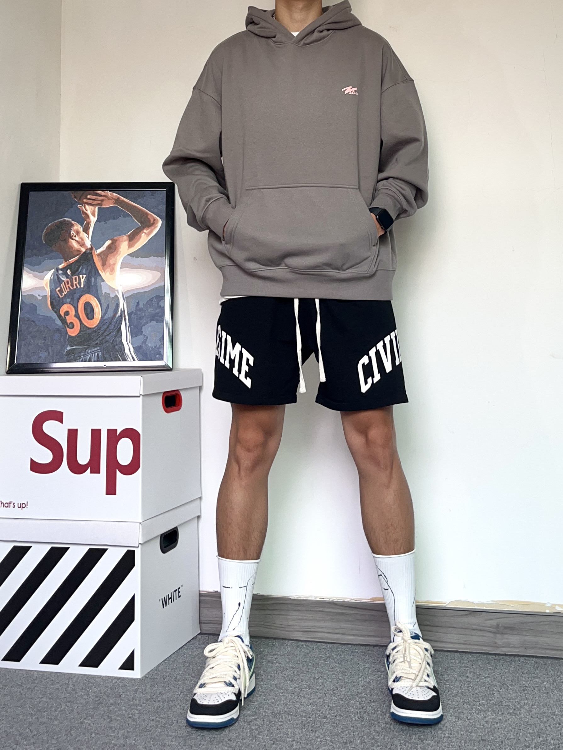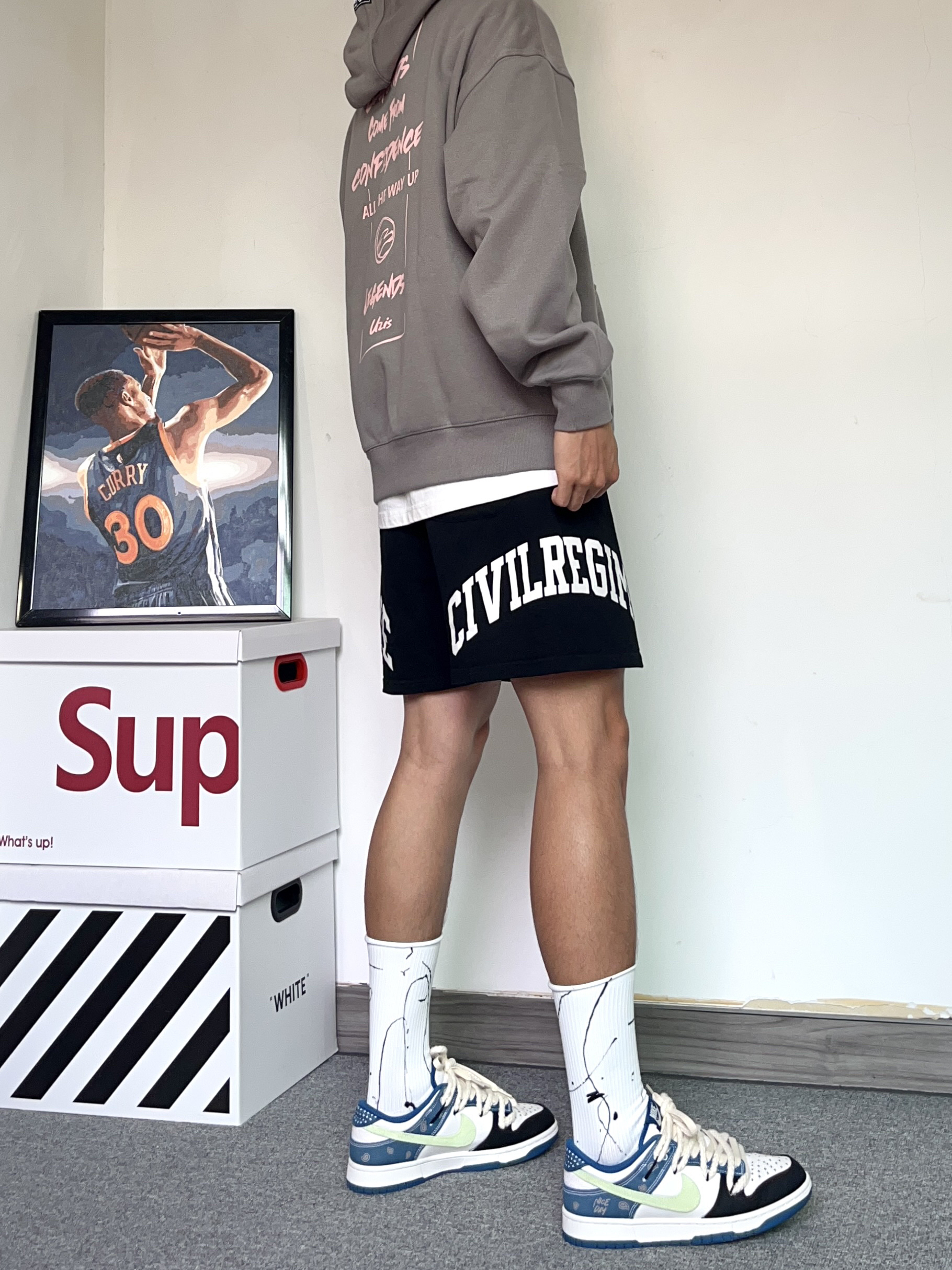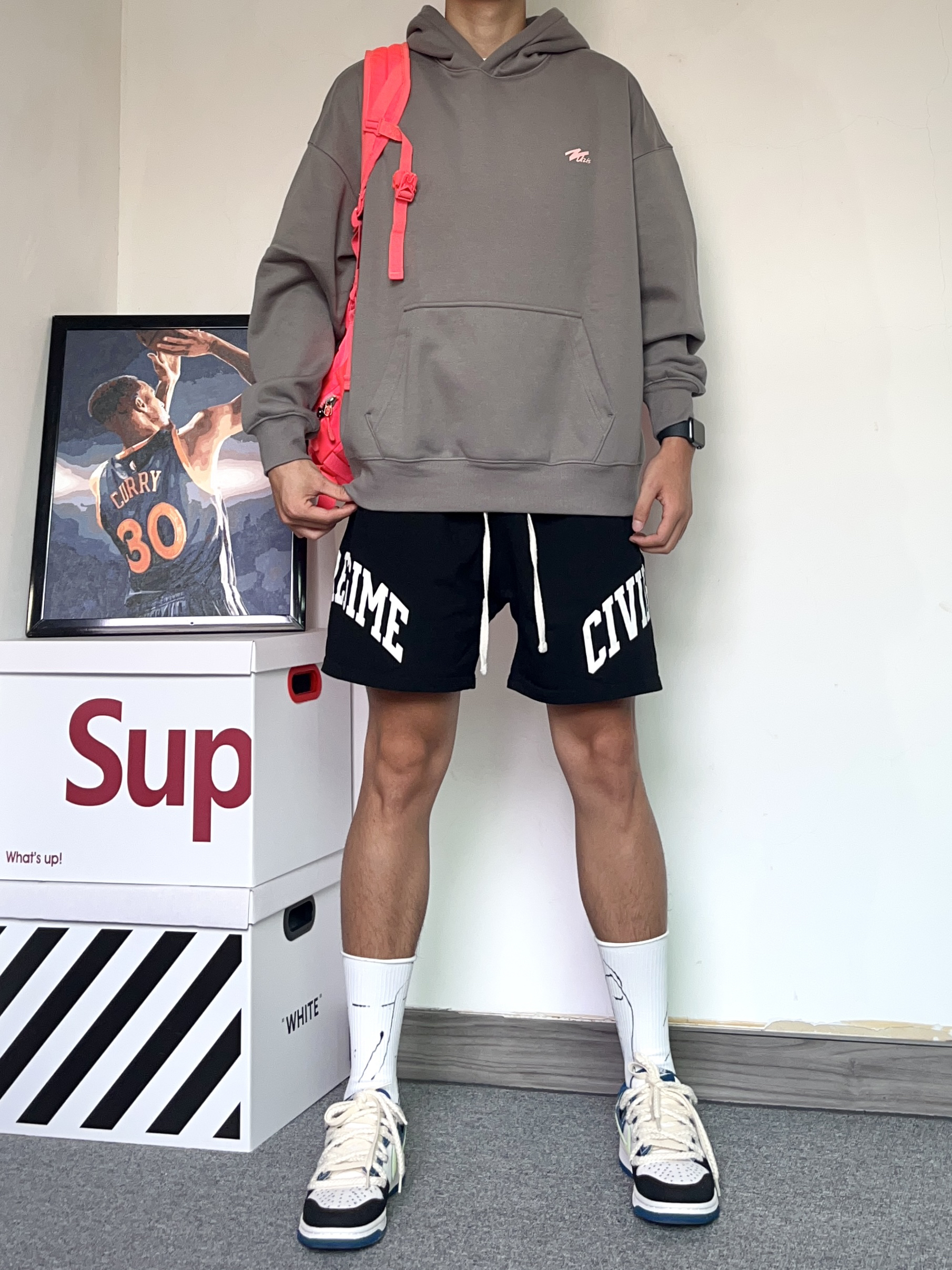 再说一万遍!上长下短穿搭真的巨显腿长,还很有氛围感!都给我学起来,早秋这样穿绝了! - 上身穿了一件QUZIS的信念美式卫衣!特别有质感的卫衣,版型很有型,硬挺!我穿的是深灰色还挺好看的,很百搭哦 - 搭配了一条对称字母印花的美式短裤黑色+灰色真的好看 - 穿了一双白Nike Dunk生仔腰果花配色! 这个配色真的绝了,双鞋带的设计真的很有设计感 鞋面采用了牛仔的配色,搭配浅色系的颜色很百搭 搭配...