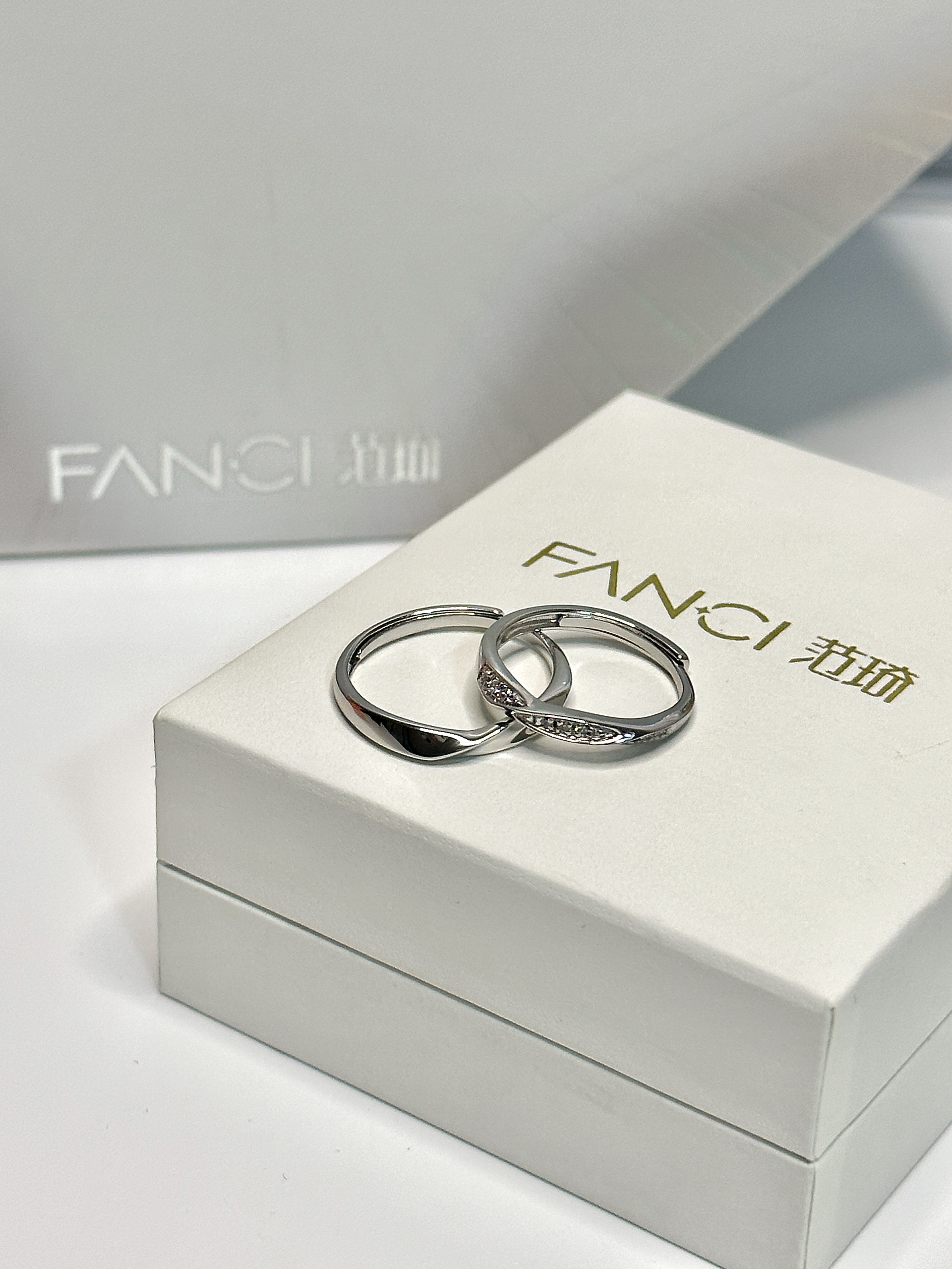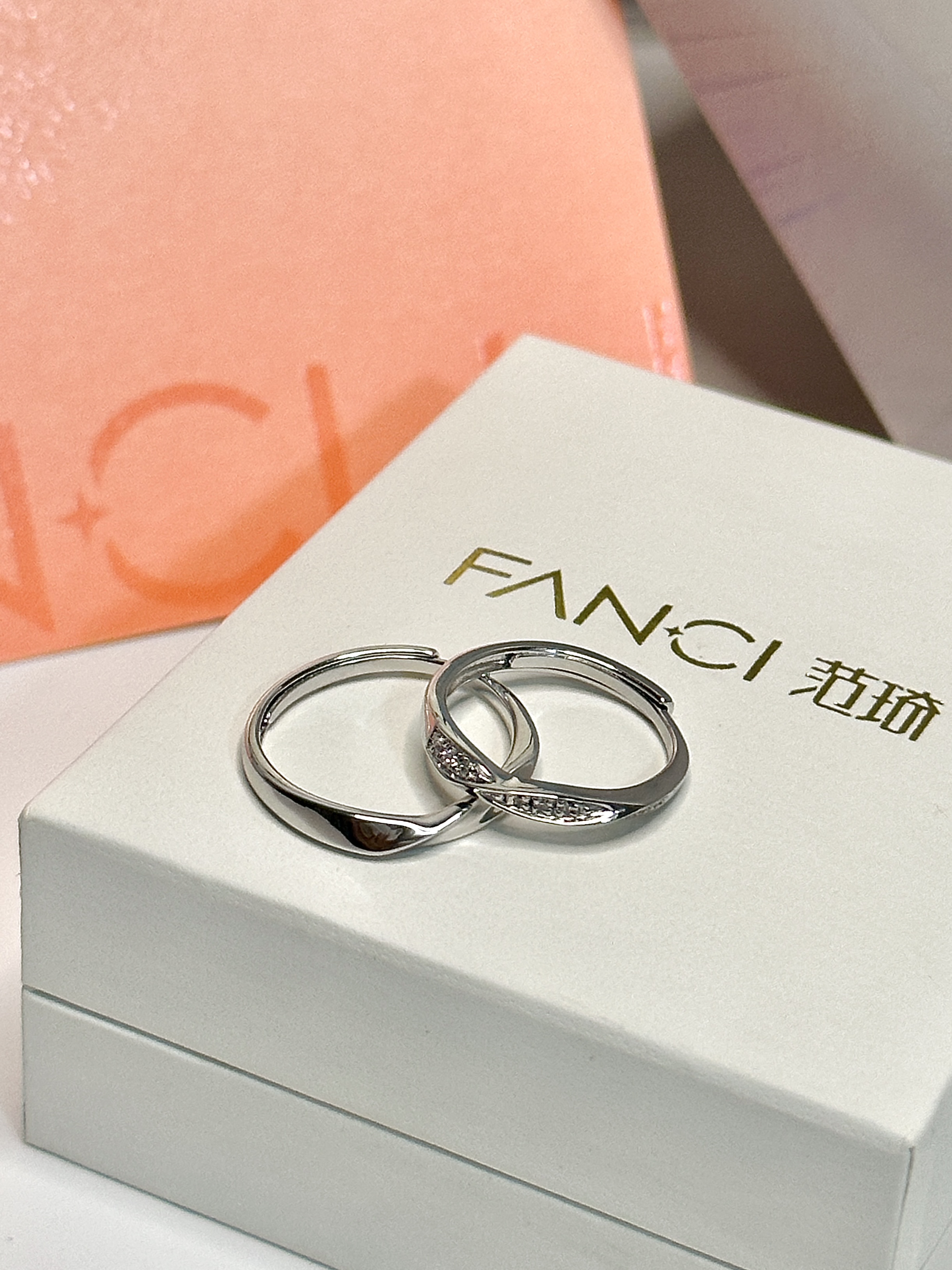 因为i fanci you🥹 恋爱五周年啦~ 💞男朋友还是一如既然的浪漫! 这不七夕还没到呢 就收到了他送的情侣对戒💍 还是精致的七夕限定礼盒! 💍 打开来是Fanci双生结对戒 🎞️扭转而成的优雅曲面 镶嵌上闪闪的锆石💎 简约而不失高级感 用的镜面抛光技术🔩 戴久了依然色泽光滑明亮 他说这枚戒指承载着他对我的满满爱意💕 寓意着"起点是你 终点亦是你"🔒 谁懂 真的太浪漫了!! 💍 情侣对戒真滴太...