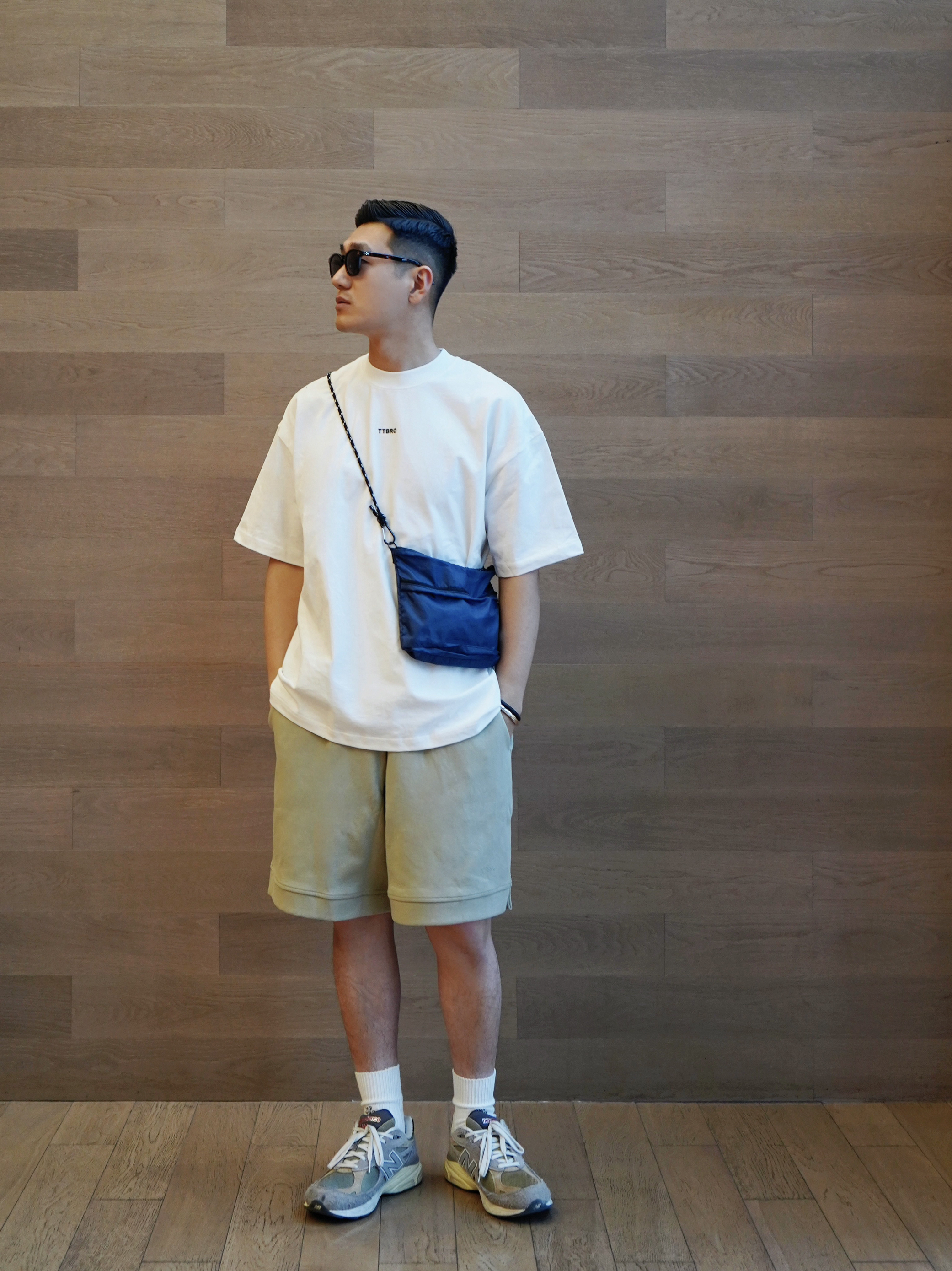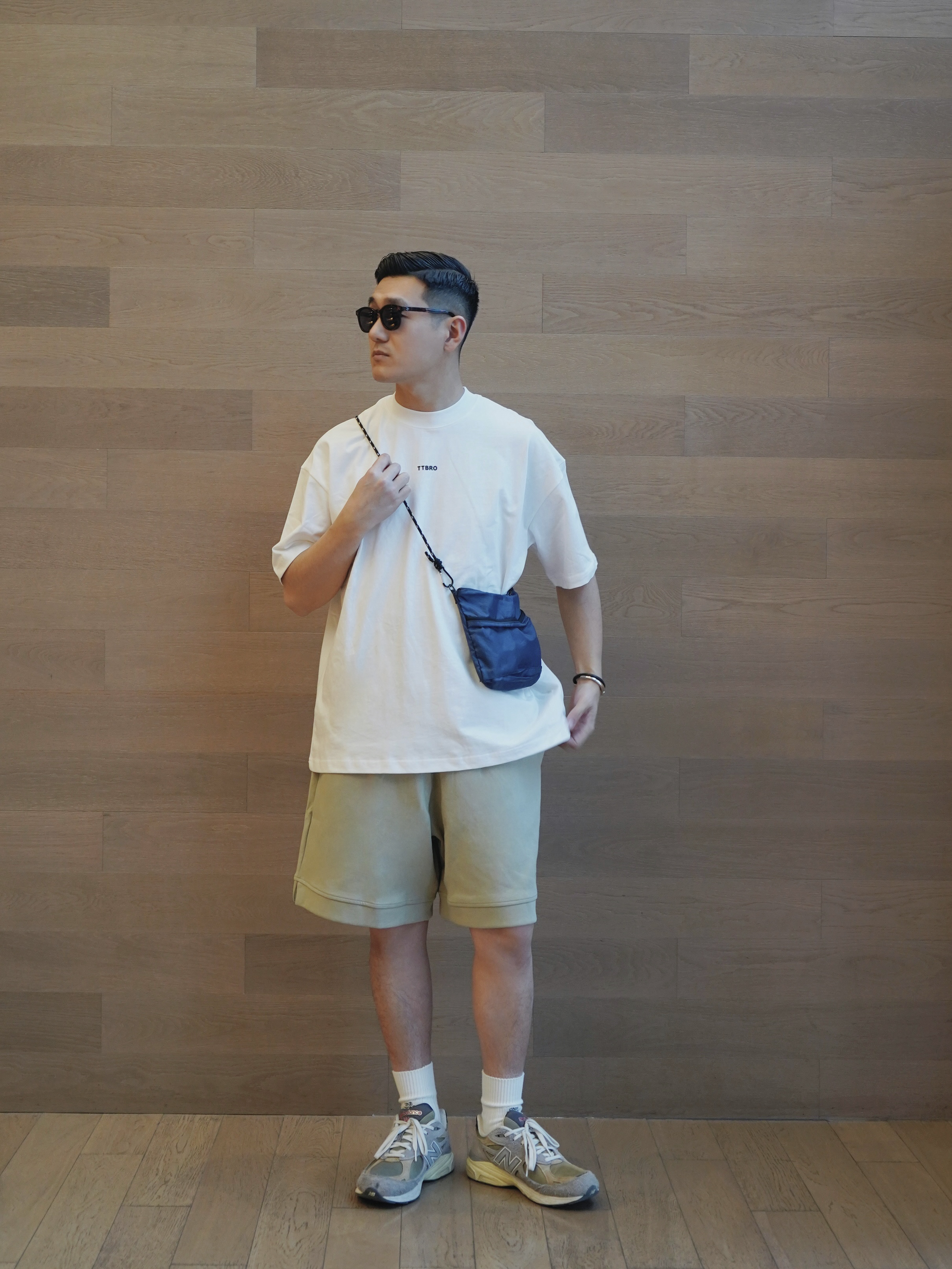 没有浮夸的LOGO 全身清爽简洁 灰绿色五分卫裤 一眼高级的色系 不挑人穿✌🏻️ 🕶️ 墨镜:Seed Club 👔 上衣:TTBRO 👖 下装:TTBRO 🧦 袜子:MADNESS 👟 鞋子:New Balance 👜 挎包:Pilgrim Surf Supply