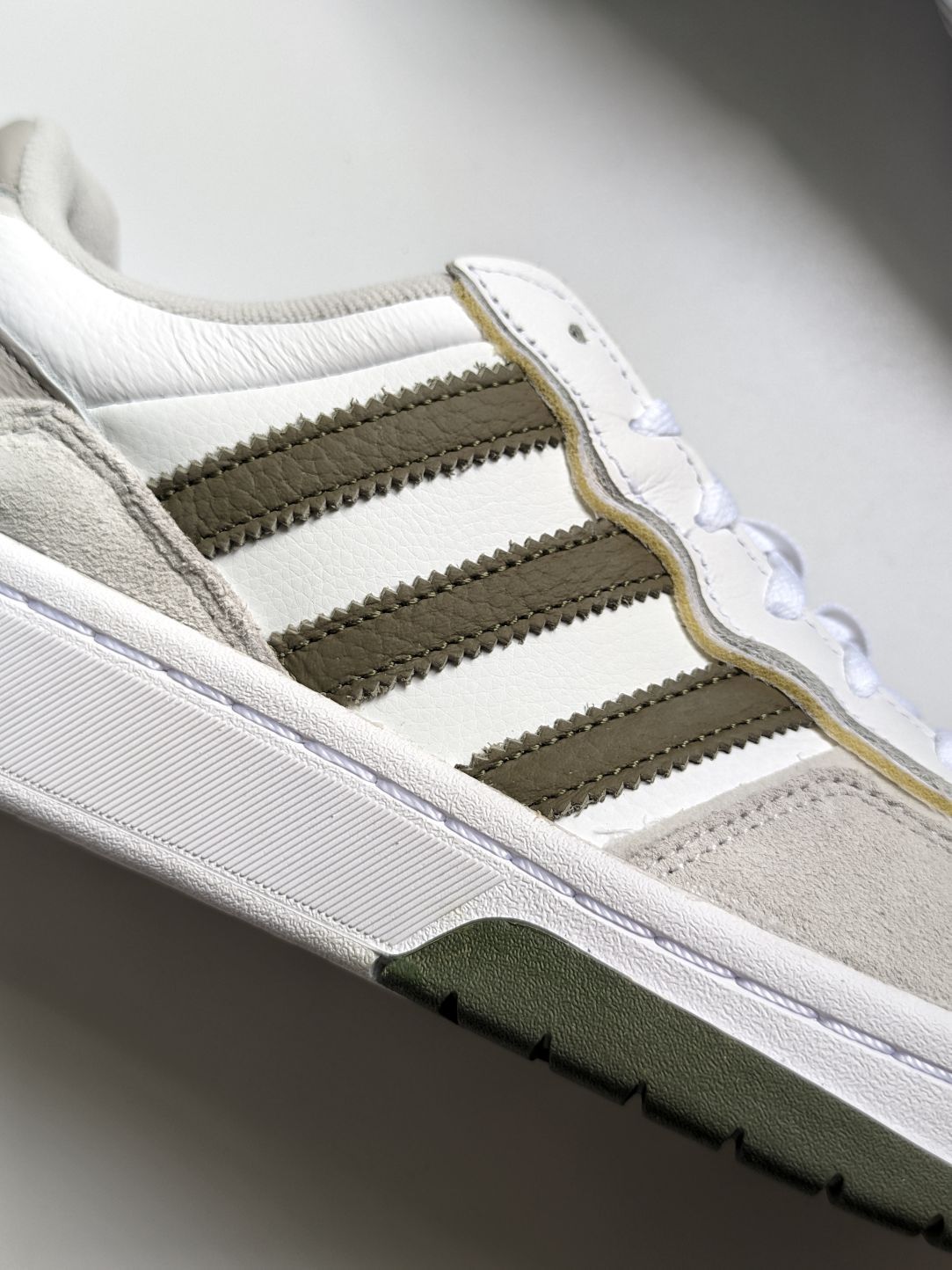 📦 今日开箱阿迪达斯的白绿奶包鞋👟 ✨ 整体配色白色与深绿色搭配很是和谐🌿 🌊 鞋面环绕波浪形黄色面边,与鞋底延伸到中底的深绿色,和三条纹logo相呼应,设计感满满。✨ 🔍 鞋面采用麂皮与皮革材质拼接。有质感😍 👟 橡胶大底,耐磨防滑。 这双白绿奶包鞋不仅外观精致,还兼具舒适性,搭配休闲装还是运动装都是不错的选择 💡持续分享ing 帮你发现🔍宝藏单品。