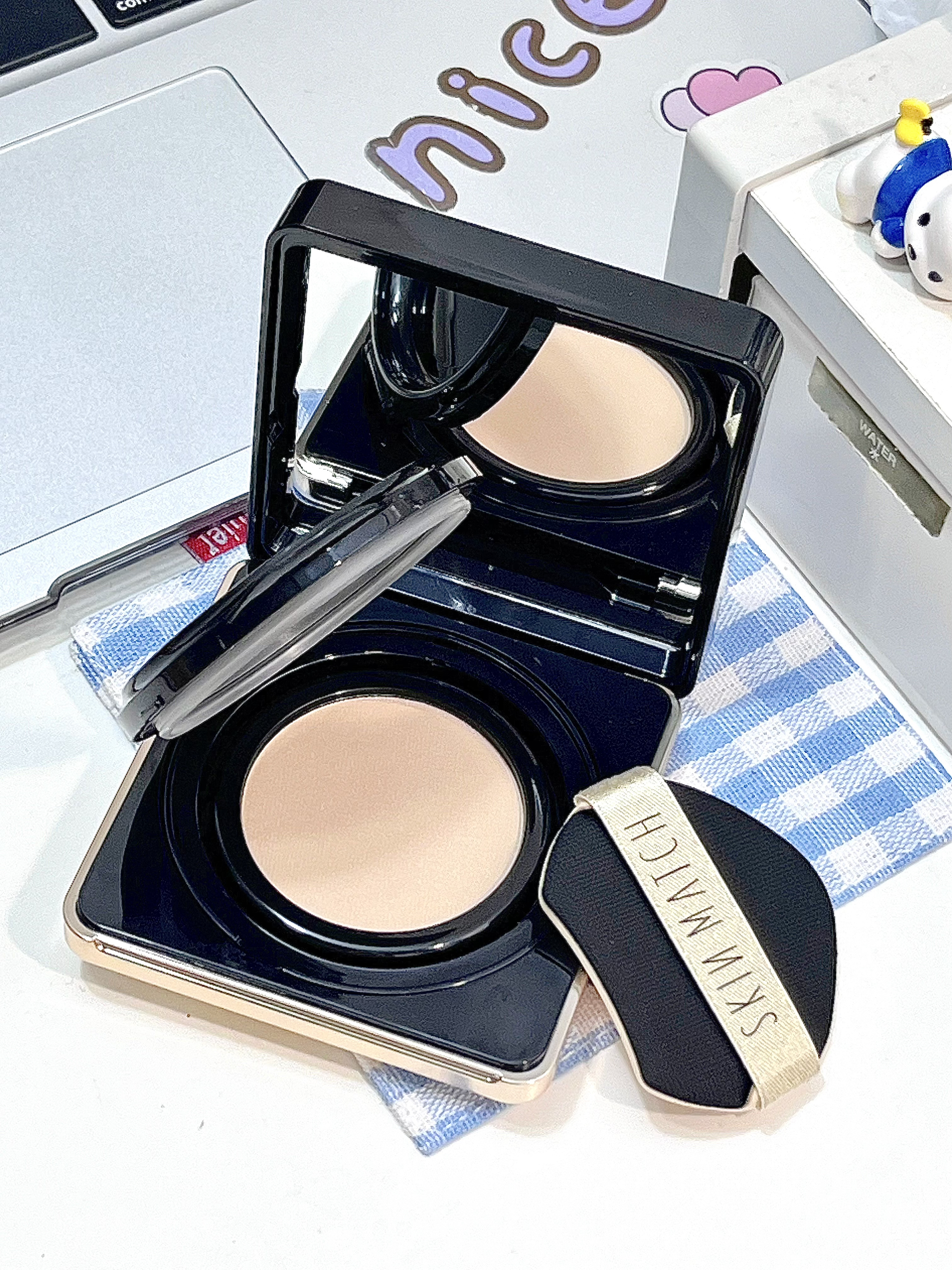 大猪蹄子开窍了好吗 送来了我心动好久的气垫😭 简约高级黑色镜面外壳设计 粉质细腻光滑!💖很好上妆 新手小白用起来也毫无压力 我早上用的妆面持久不会卡粉 男朋友都夸我妆效好耶🥰 这样的礼物女孩子真的不会拒绝