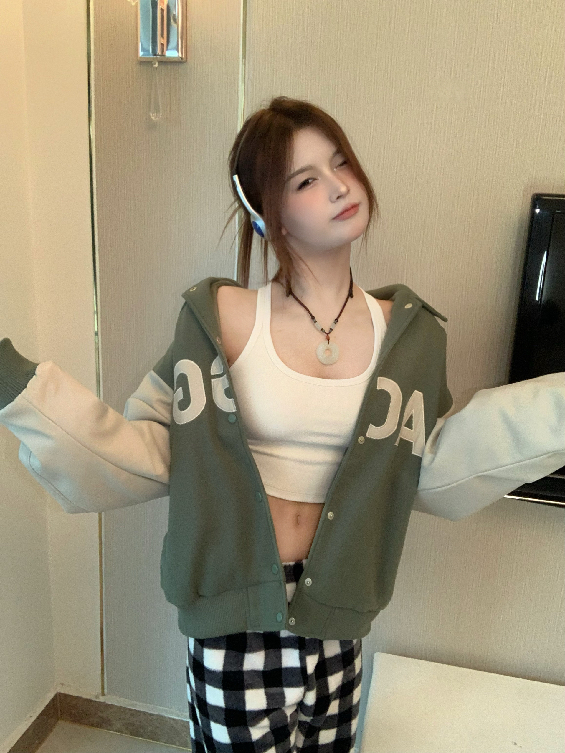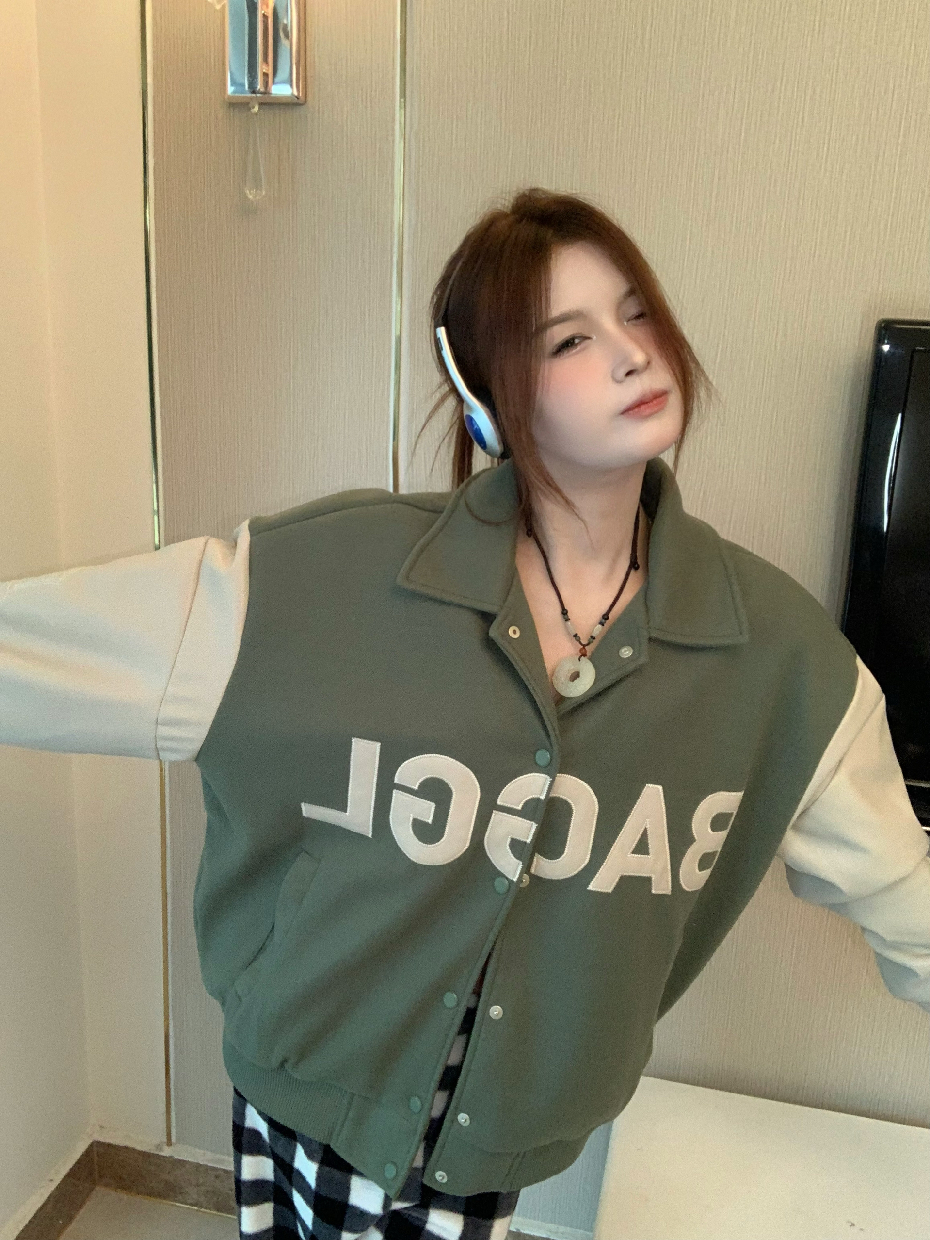 🛒好物名称: 🤔推荐理由:绿色真滴好显白呀~拼接设计真的好美!!!可以穿四季了