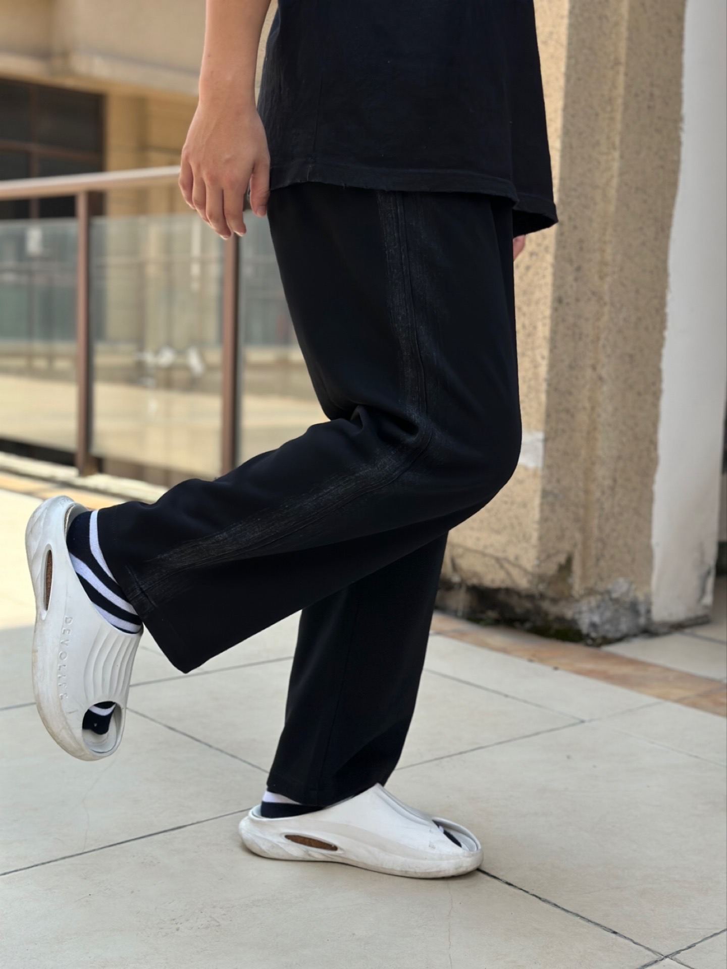 已经入秋了,近期天气也逐渐转凉 #NOME 家的这条裤子真的绝了,巨喜欢! 版型做的非常显瘦,我腿比较粗,穿起来巨显瘦!垂感特别好,宽松度也🉑️侧面扎染条纹设计,白黑的撞色有高级感~抽绳设计方便穿脱! #百搭神裤 #每日穿搭显瘦神裤 #宝藏裤子大分享 #七夕超用心的礼物 #七夕超有排面的礼物