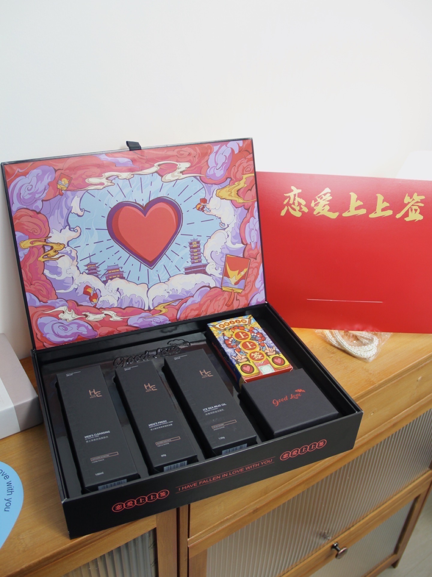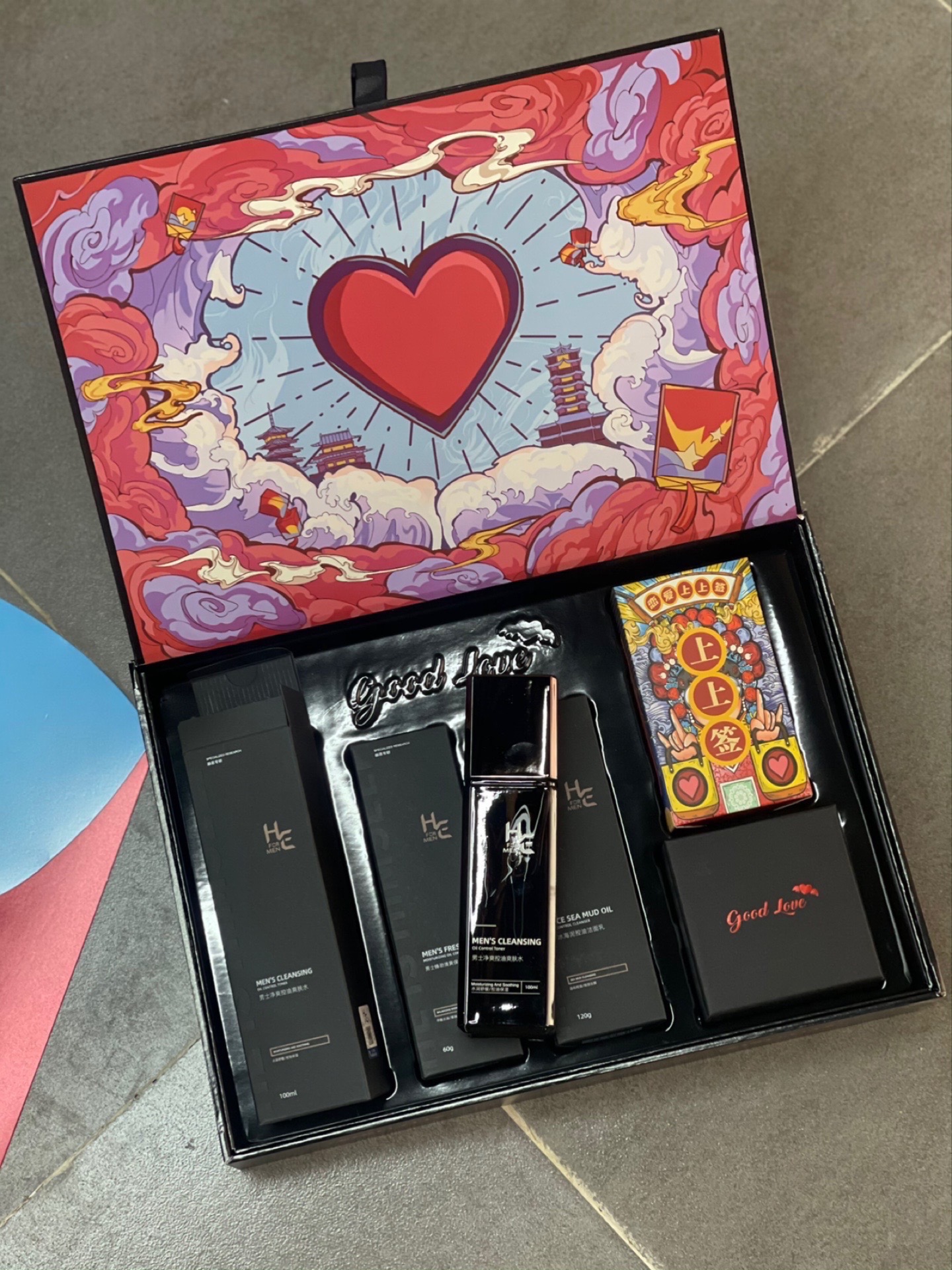 姐妹们,你们是不是每到节日都在纠结送男友什么礼物?近期我女朋友送了我来自于 #H&E/赫恩 家的恋爱上上签的礼盒🎁真的有被感动到❤️ 礼盒真的超好看耶👍是国风的设计,打开礼盒里面还有一个爱心让男朋友感动哭,真的仪式感拉满💯拒绝做油腻男孩轻松承包男友一整个夏天! 非常实用跟趣味于一身的礼物,真的非常值得送他