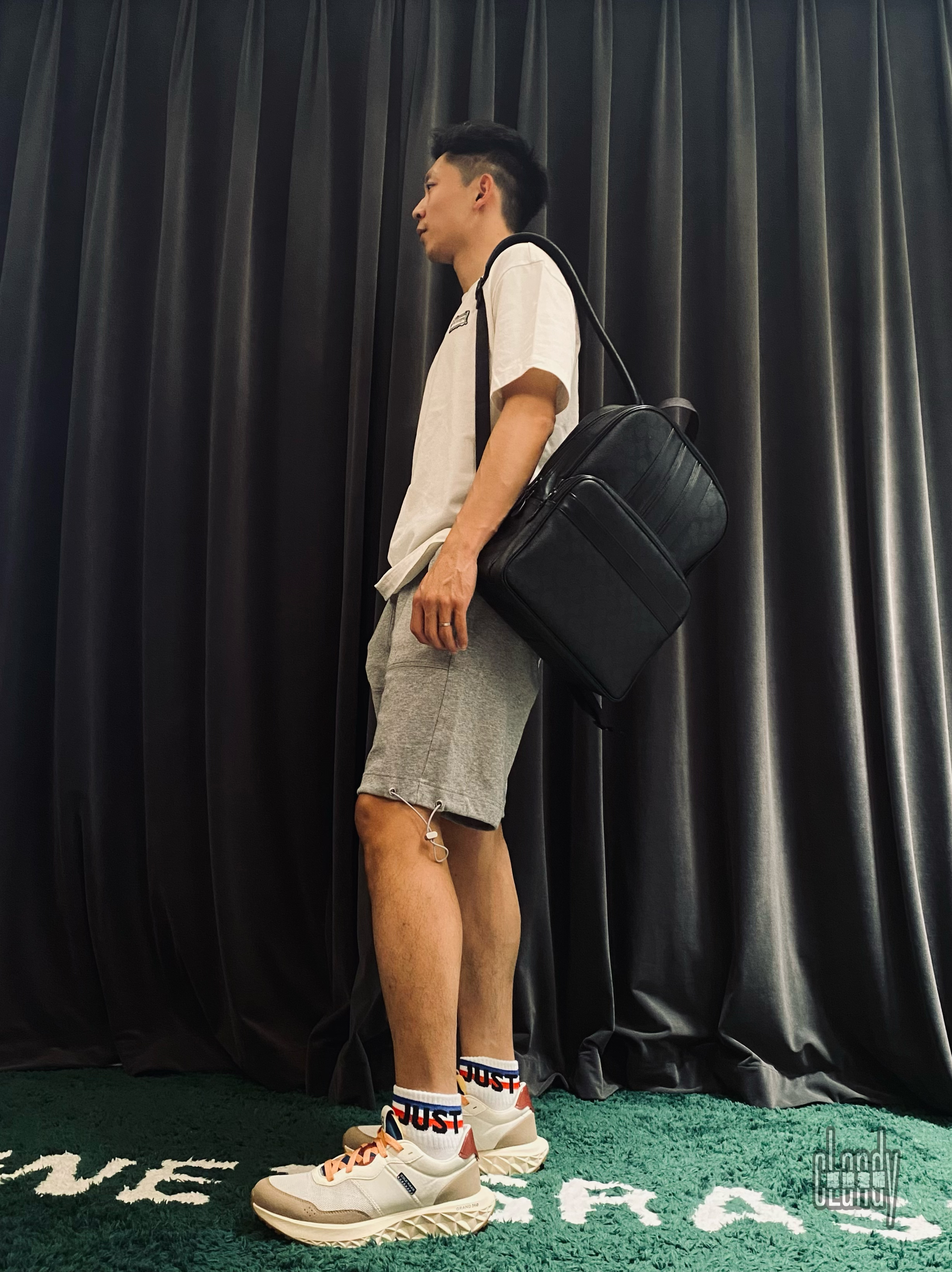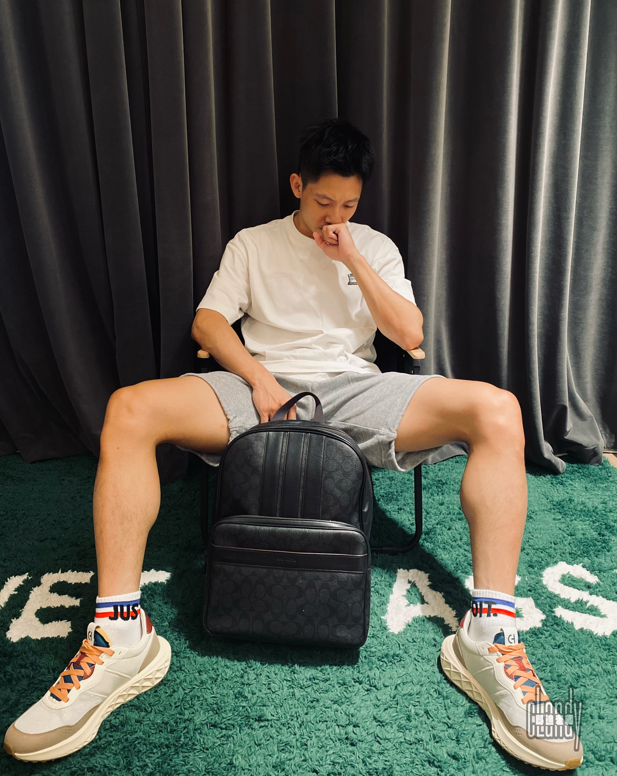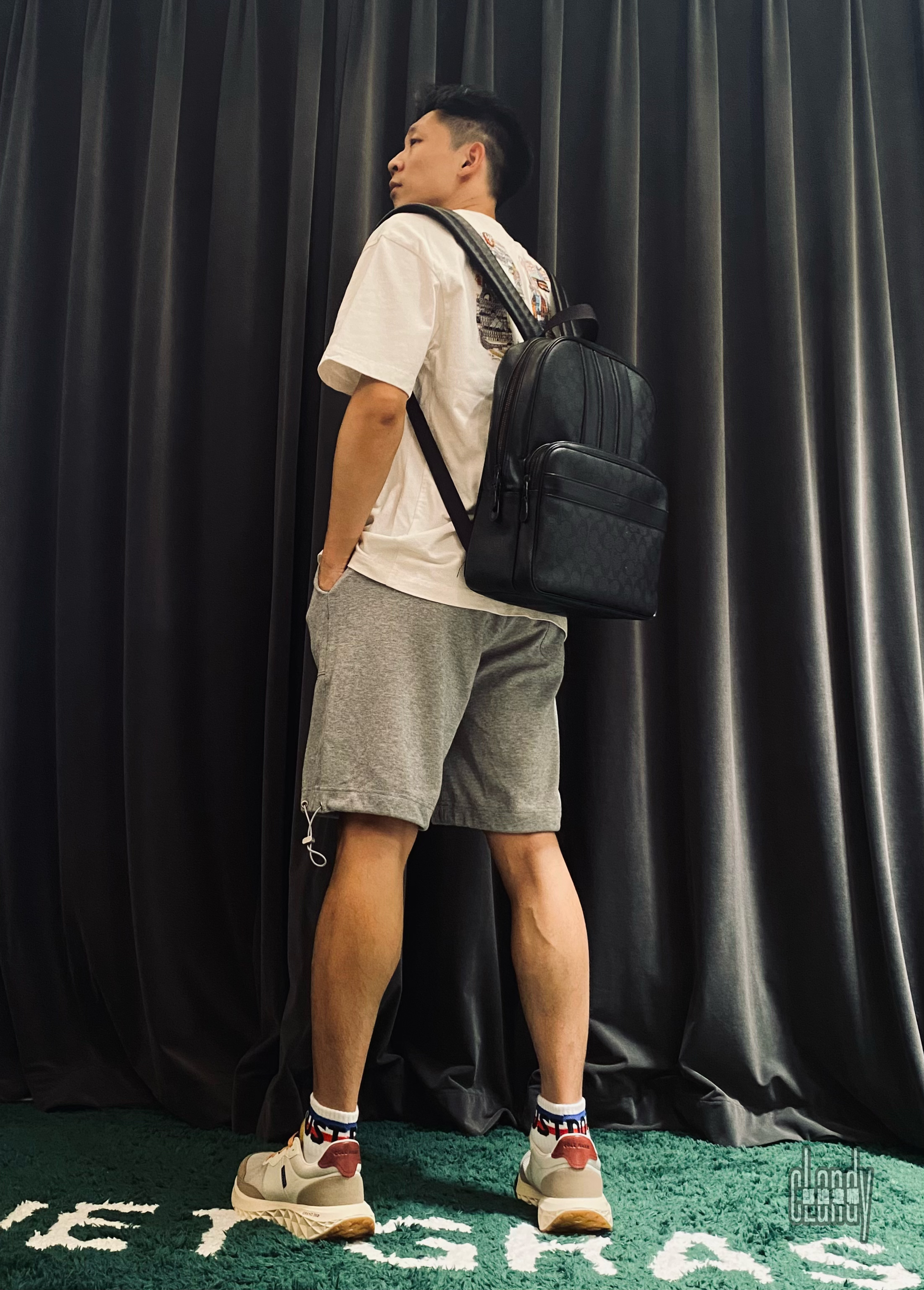 ✨旅游ootd✨ 👕:Trendiano刺绣白色T恤 🩳:灰色工装短裤 👟:歌涵休闲鞋 🎒:Coach双肩包 ✨灰白色简约色系,保持上身搭配的鲜亮度,而且简约、干净,很夏天。 🌟coach经典黑色双肩包,实用且百搭,满足日常旅行的容量。 🤩歌涵休闲鞋,旅行必备的好鞋,脚感非常舒服,非常给力,颜色很百搭,日常好鞋。今天选择它,一方面非常好穿,一方面非常百搭。