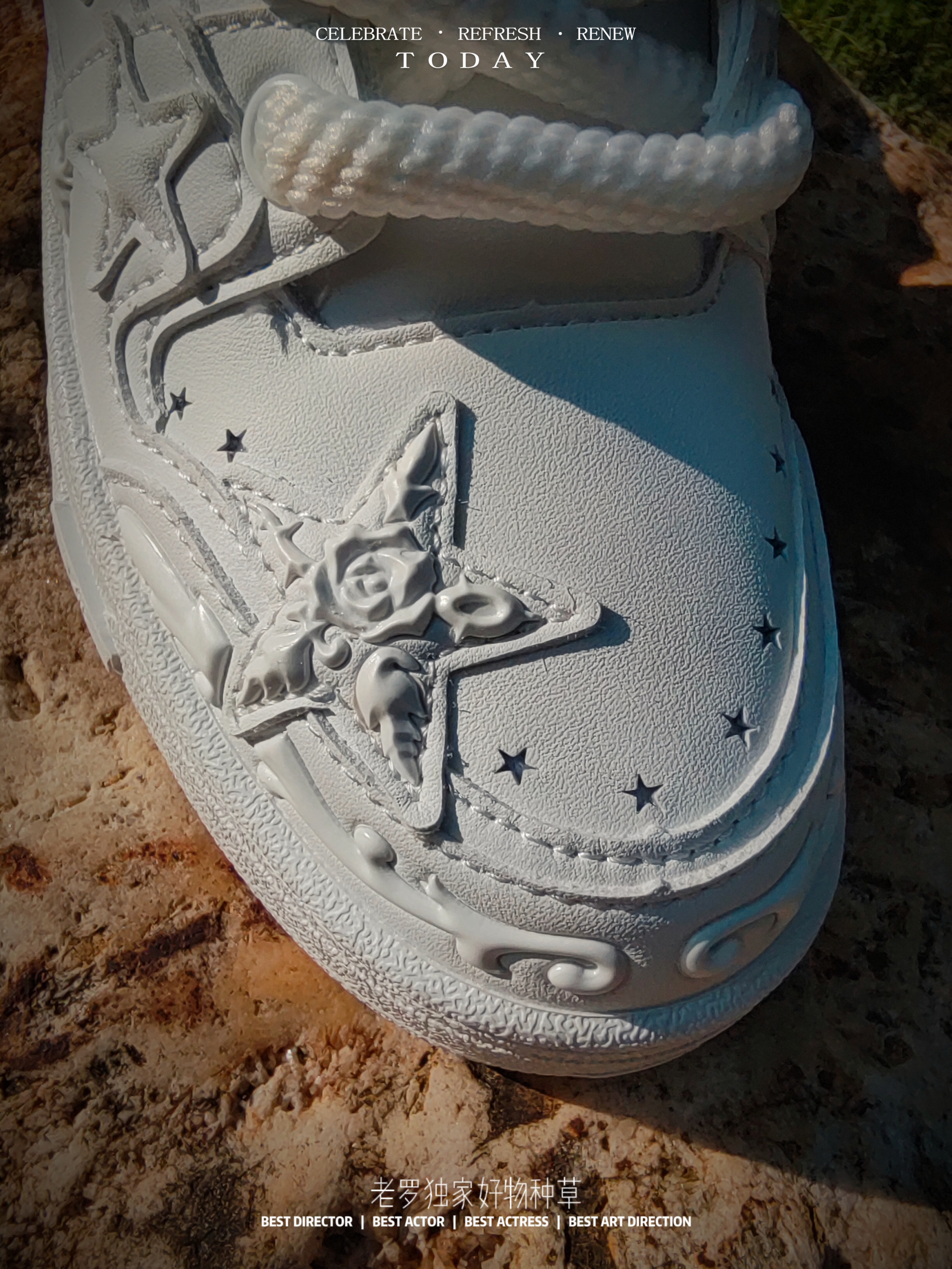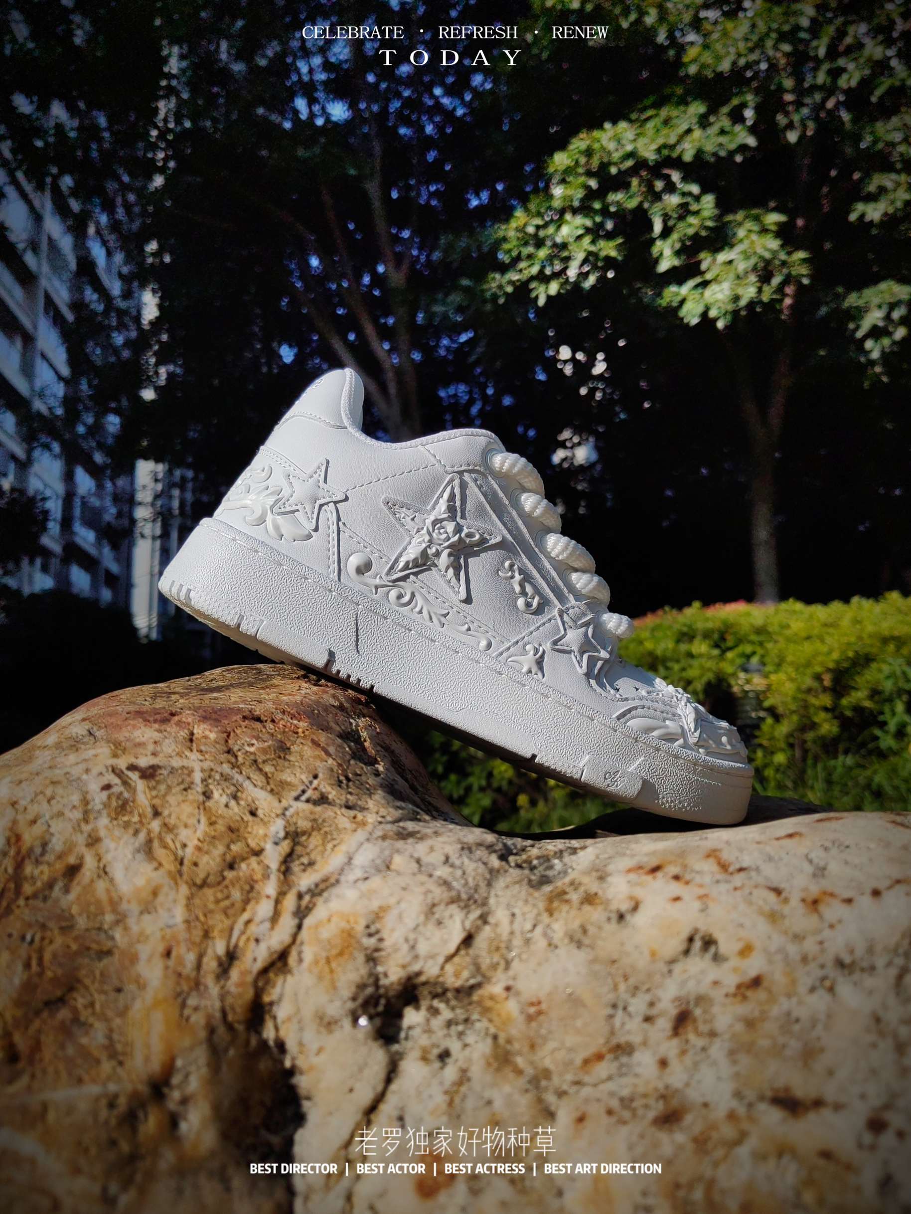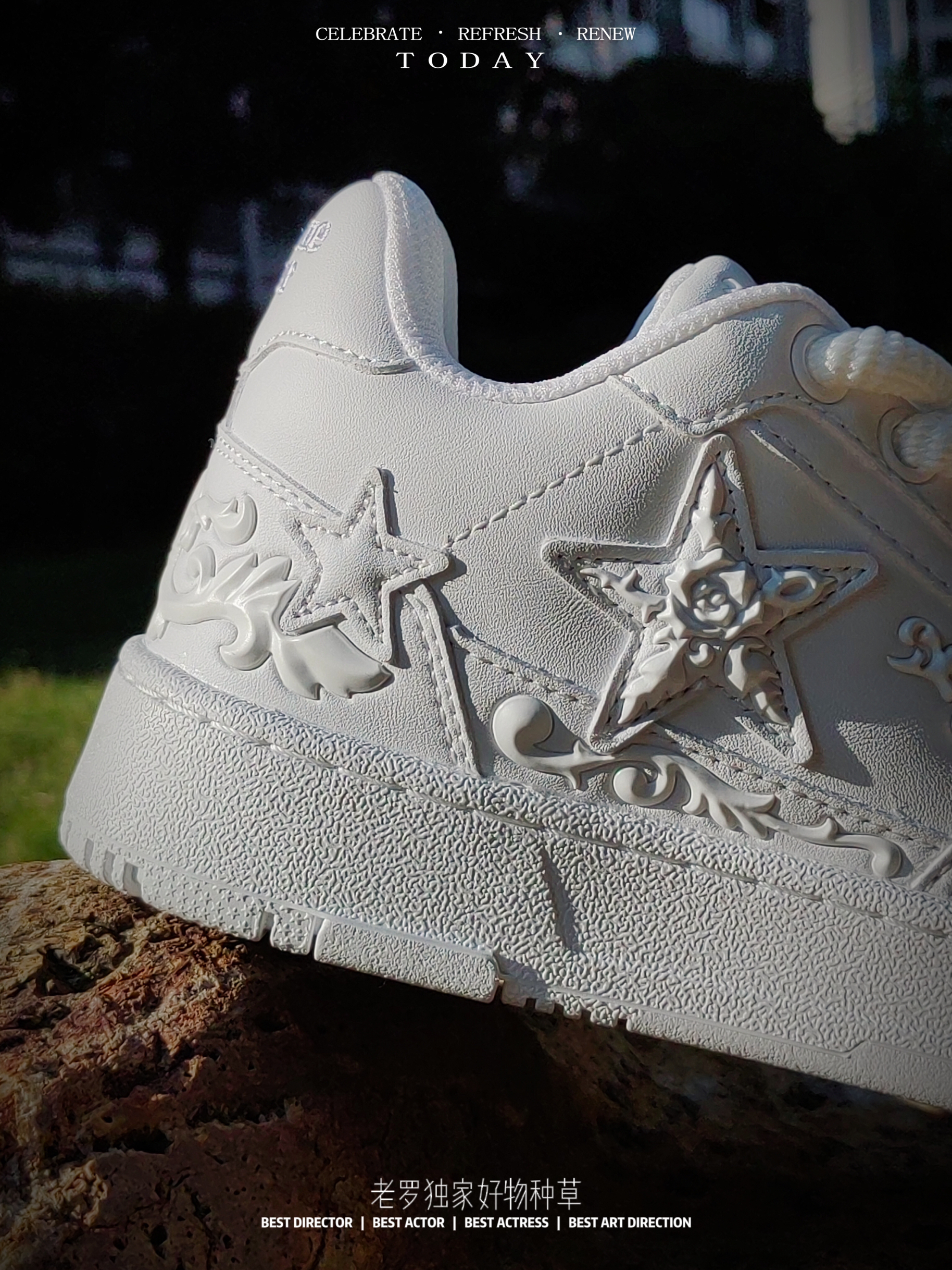 国货星星板鞋 又出新品了 纯白色系 配上浮雕印花logo 呈现 颜值细节规格 真的不一样 休闲板鞋以全皮革材质呈现 浮雕玫瑰🌹 高级感满满 纯白色系 通勤日常百搭规格 尺码正常入手即可