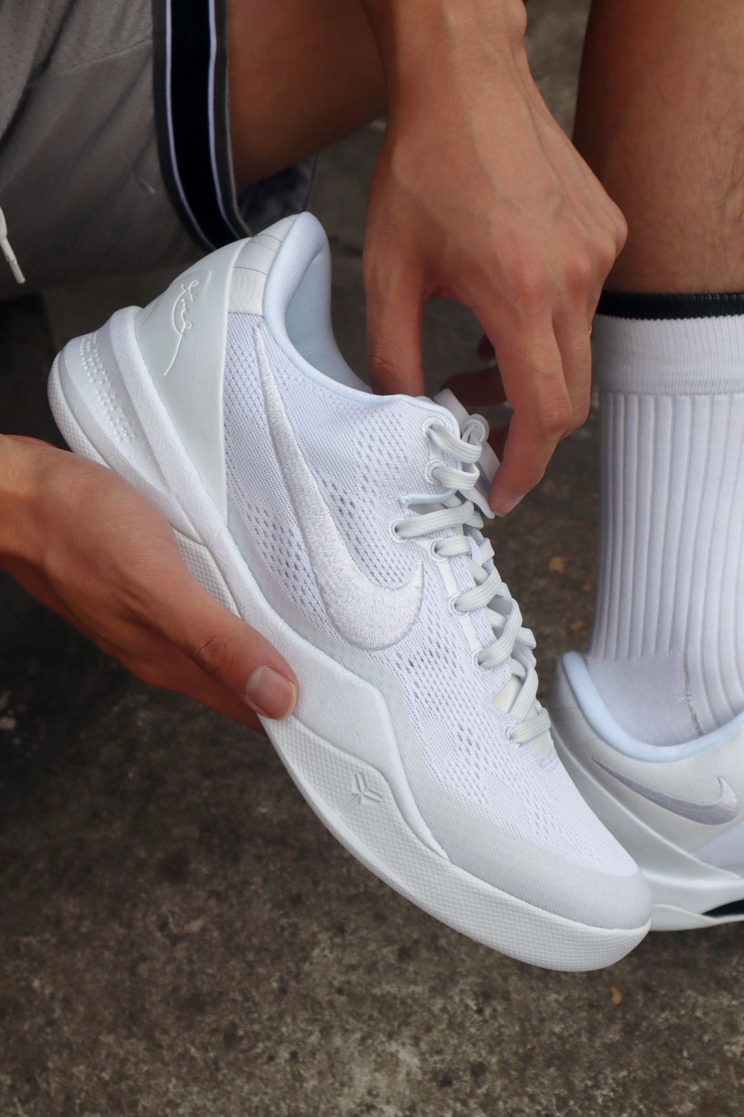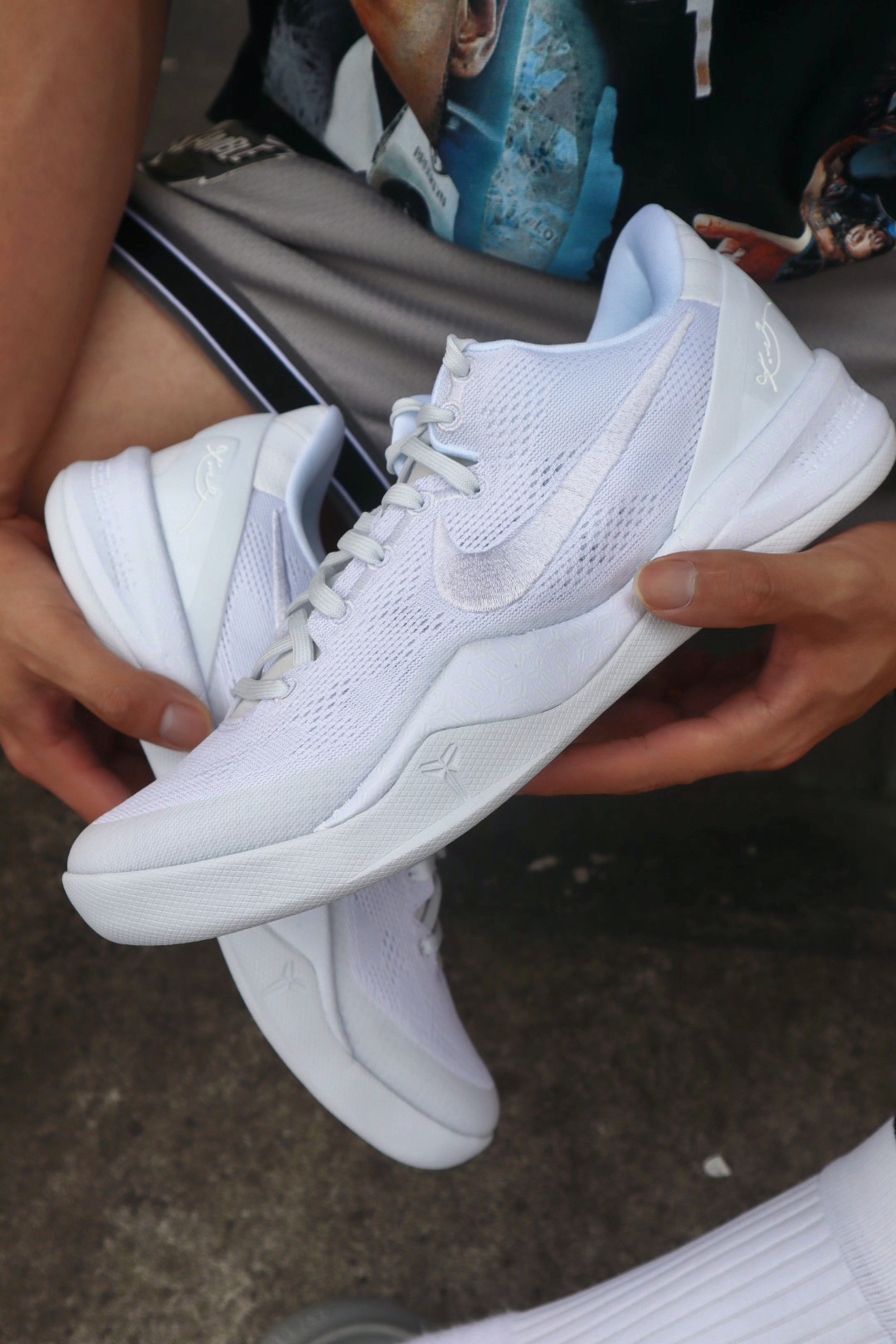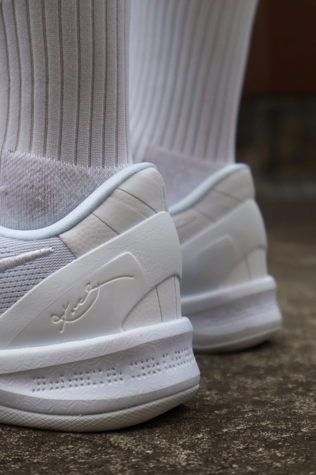 哈喽兄弟们今天带你们上脚最近 nike的重磅炸弹 科比8Protro 首先颜值外观兄弟们觉得怎么样 爷青回的感觉真的不假 这一次复刻的纯白色确实亮眼 不过就是真的不耐脏 后期还会氧化发黄 鞋面外腰swoosh改为了刺绣 好在做工品控方面还算可以接受 脚型适配个人感觉宽脚需要试穿还是有些窄 中底给到React鞋垫 贴地感出色轻量化顶级 同样损失了一些后跟的缓震 大底为实色橡胶 但是我觉得也不会有人穿...