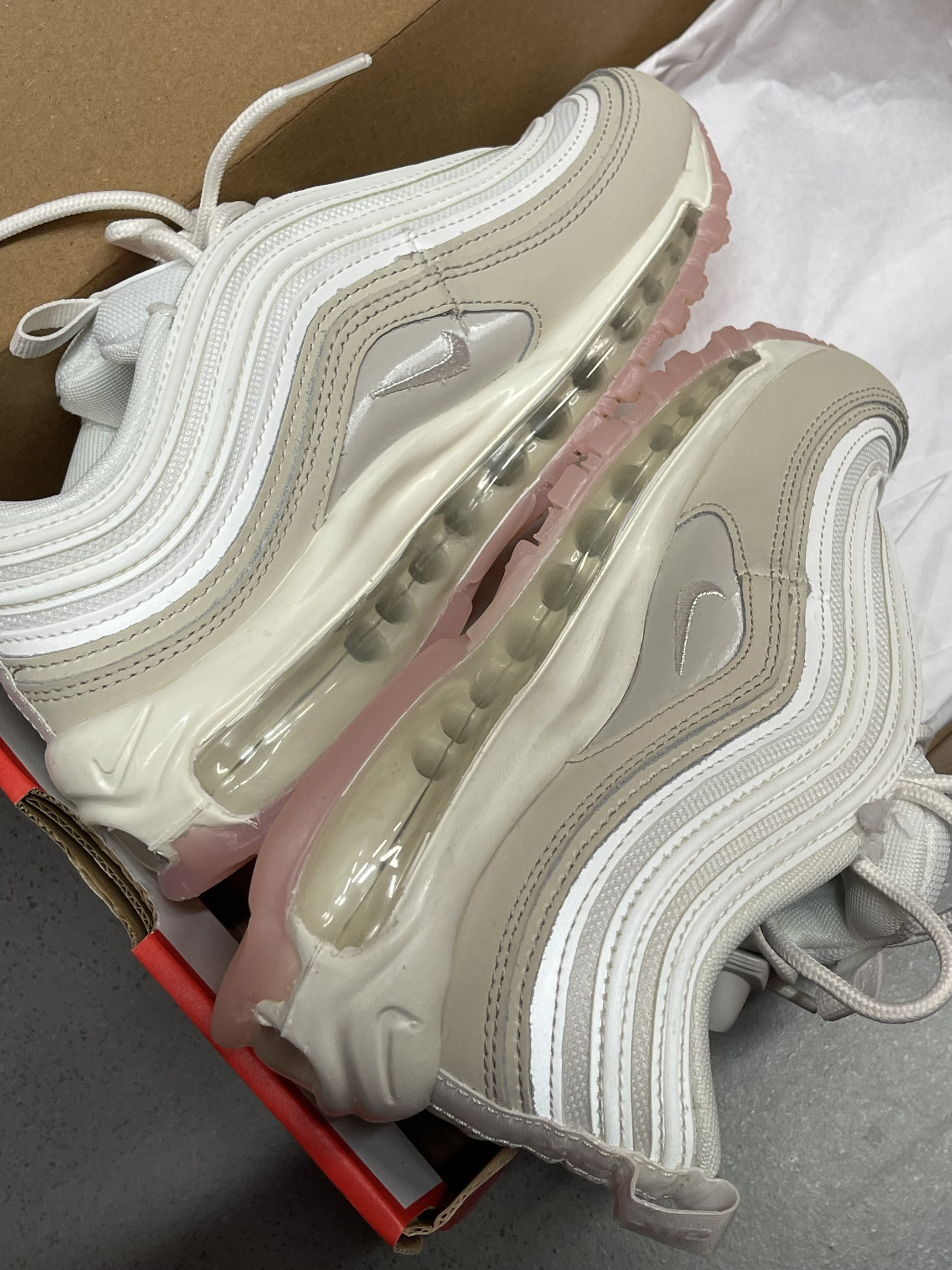 本篇笔记关联了Nike Air Max 97 跑鞋 气垫减震全掌舒适透气防滑耐磨百搭复古织物合成革运动时尚 白色/浅卡其/粉色等商品,为用户提供真实的使用体验和购买参考。