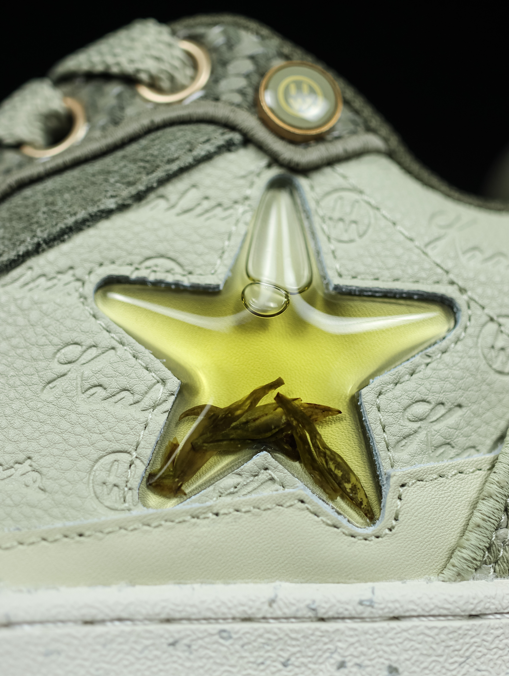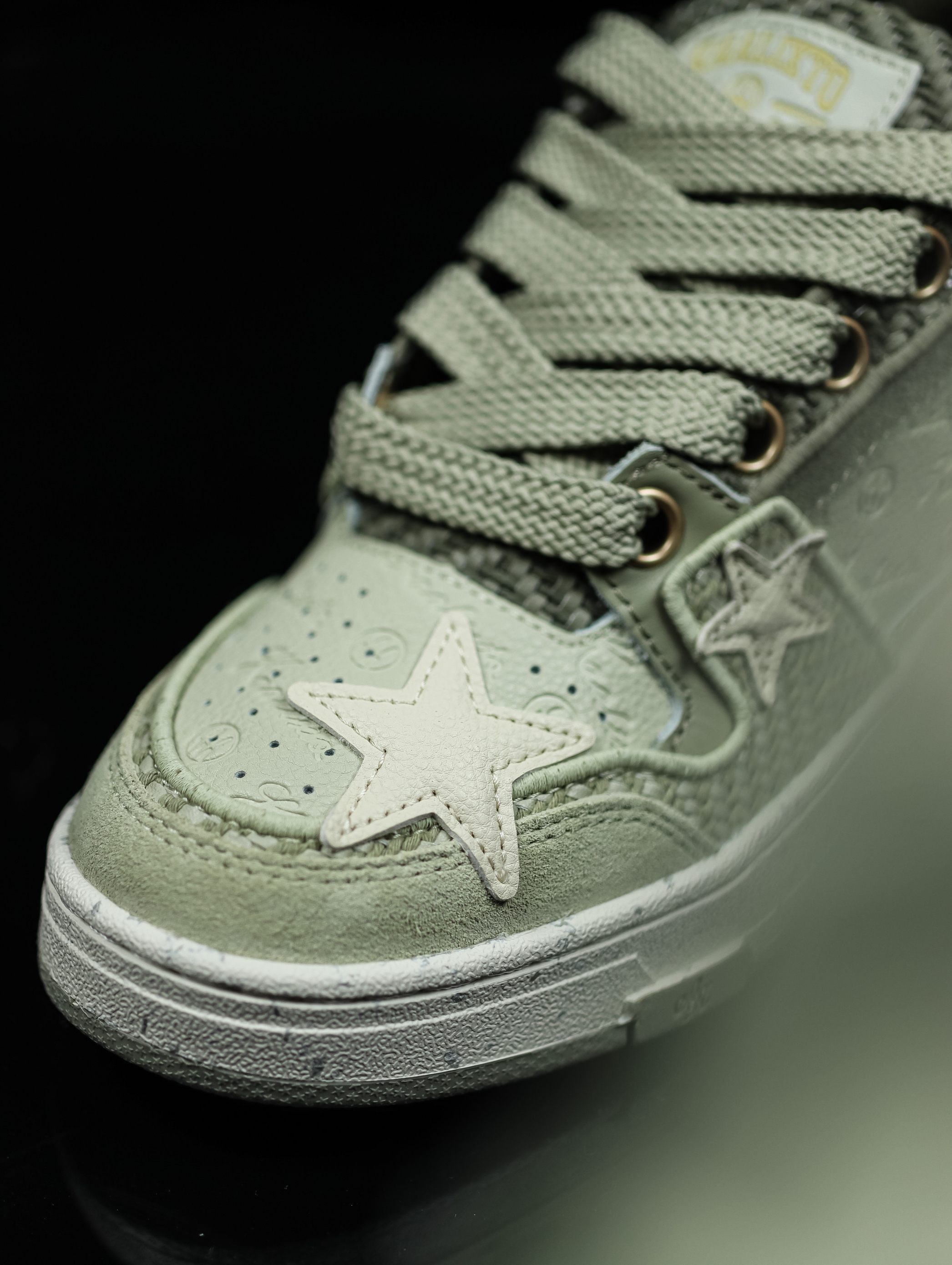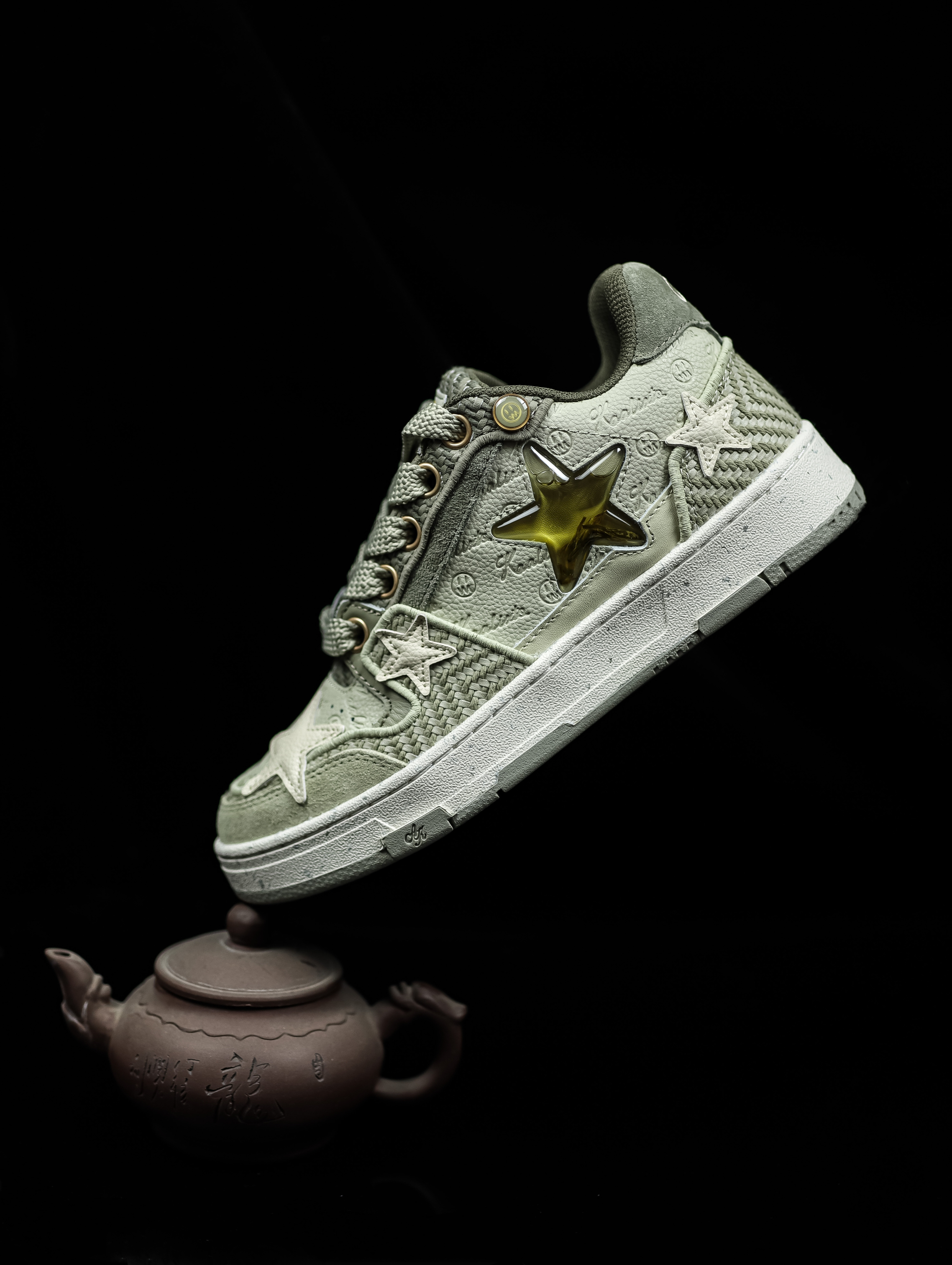 鞋款名称:BEASTER X KAALIXTO 联名款 板鞋 龙井茶 配色 细节介绍:这次BEASTER与KAALIXTO 联名可以说是诚意满满了,鞋子的整体设计元素以龙井茶为设计元素,浅绿色的配色宛如茶叶的外观,鞋子侧边的纹路宛如采茶叶的篮子,鞋子最亮眼的设计就是侧边星星图案里面注入的龙井茶,鞋盒也融入了传统元素,加上加粗的鞋带设计,给人一种独特的视觉效果。 穿搭分享:浅绿色的配色搭配衣服个...