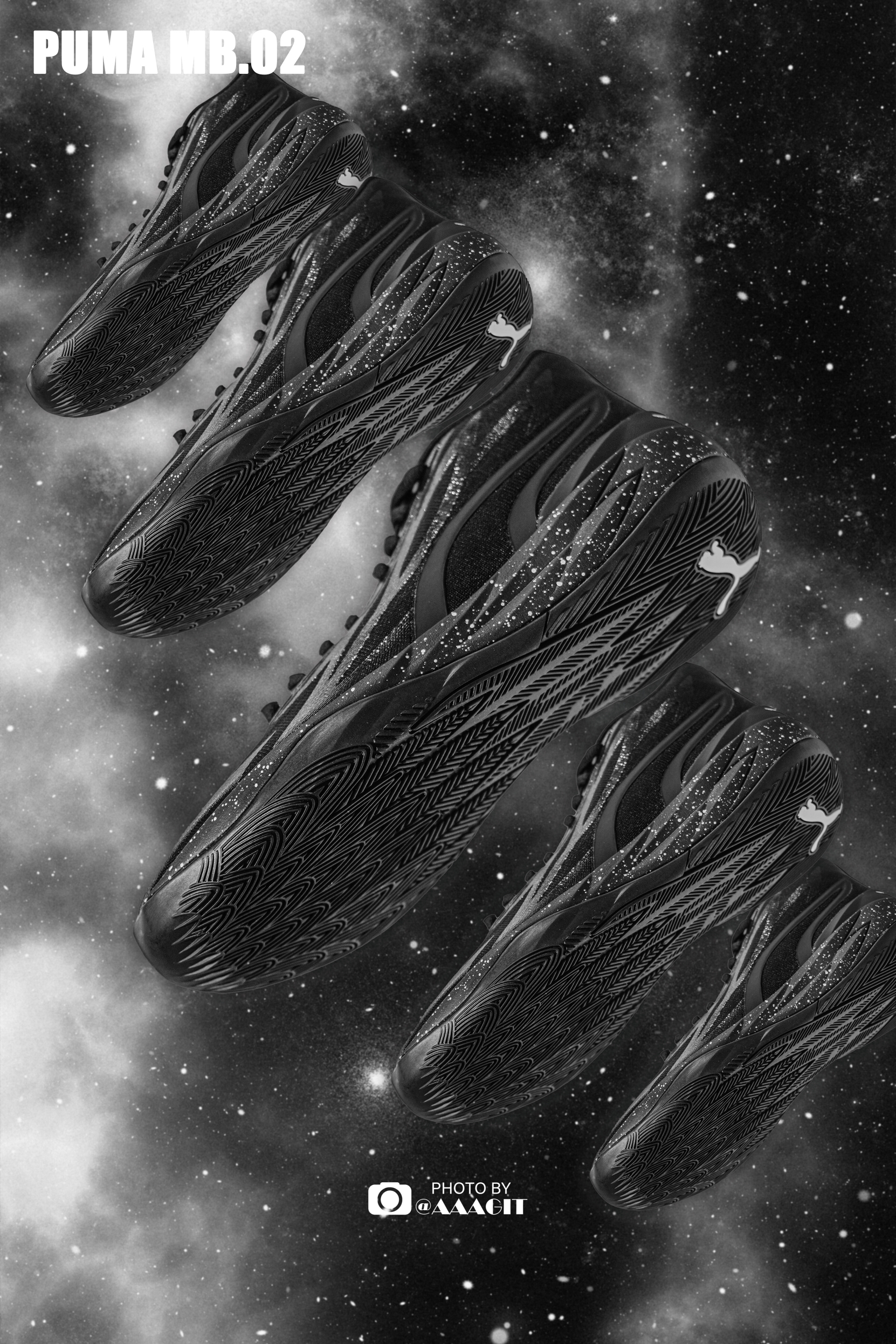 👟PUMA MB.02 “Black” 作为实战篮球鞋中特殊的存在,MB 系列可以说是小众且强大!也陆陆续续推出了不少的配色,这次的全黑相信也满足了不少朋友了! 为什么这么说呢?其实大家可以发现三球本人的风格就偏向于花里胡哨,所以之前的大多数配色都是以各种颜色混搭位置,而极致的黑色,这次还是首次出现在 MB.02 上了!加上白色泼墨的点缀,力量感太强了!
